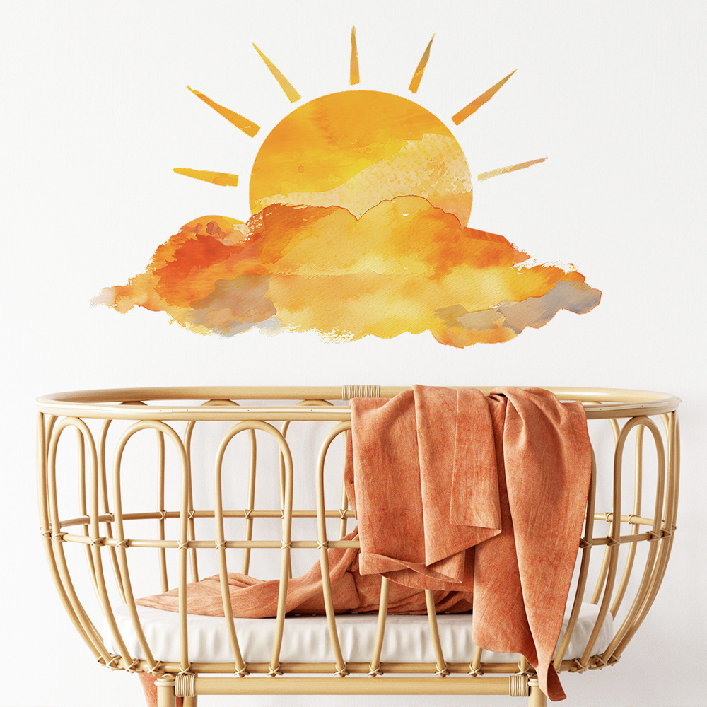 Fun-L028 만화 그린 태양 구름 침실 거실 벽 미화 장식 벽 스티커 도매스토어 가기