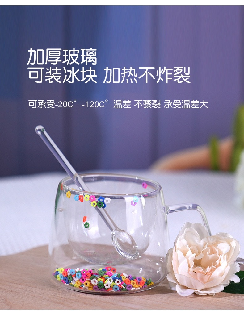 진짜 꽃이 들어간 이중 유리컵, 해외 직구 가능, 고급스러운 인기 선물용 커피컵, 단열 고붕규산 유리컵스토어 가기