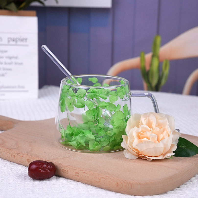 진짜 꽃이 들어간 이중 유리컵, 해외 직구 가능, 고급스러운 인기 선물용 커피컵, 단열 고붕규산 유리컵