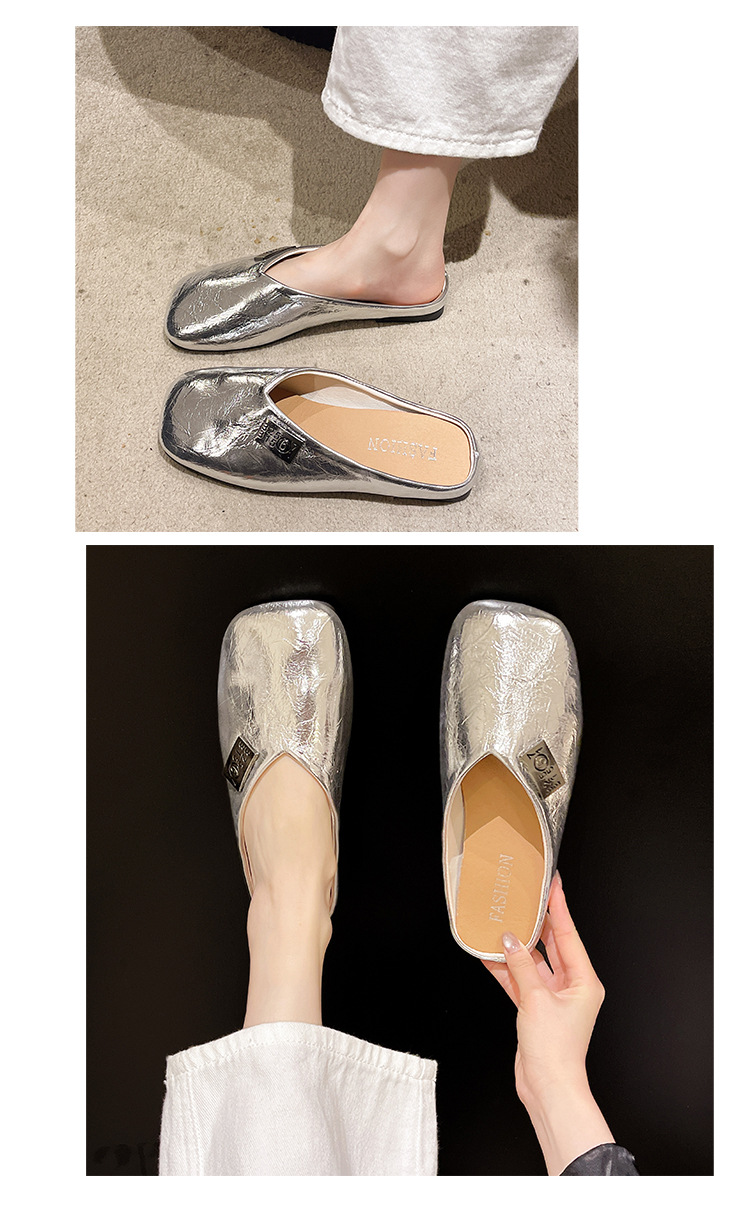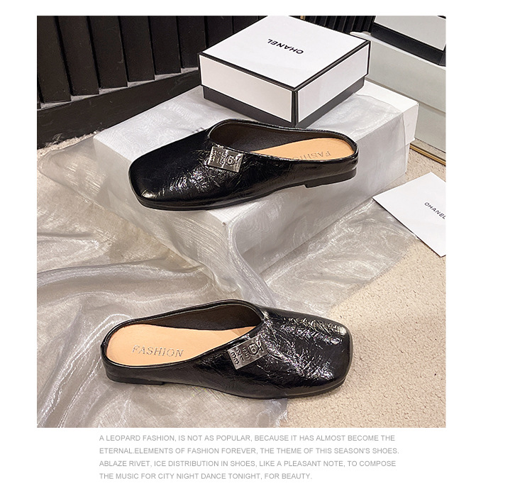 여성의 봄과 여름 복고풍 얕은 입 패션 플랫 캐주얼 샌들과 슬리퍼 2024 새로운 스퀘어 헤드스토어 가기