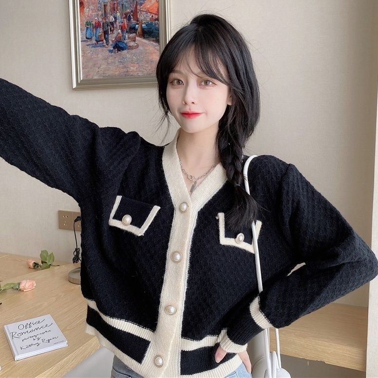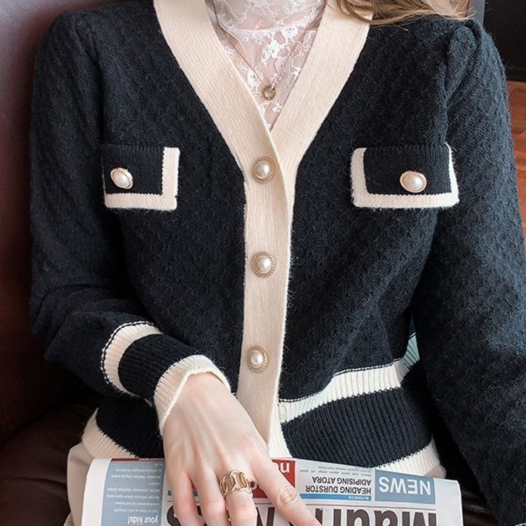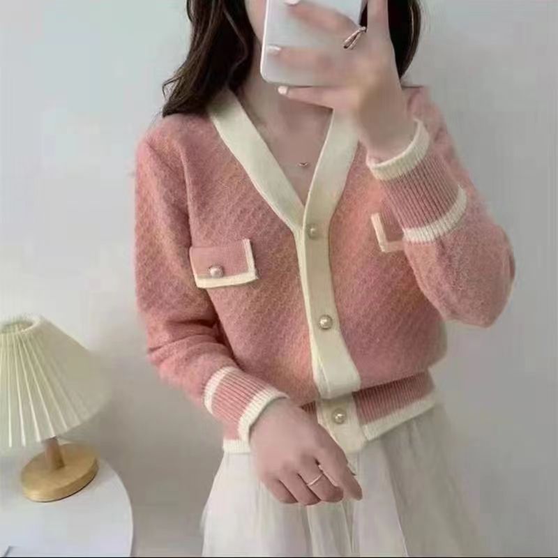2024 봄과 가을 새로운 코트 봄과 가을 패션 여성의 짧은 작은 향기로운 스타일 올 매치 유럽 니트 카디건스토어 가기