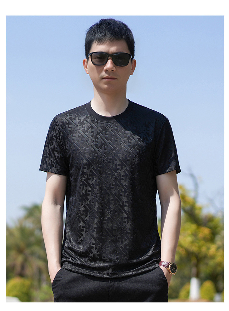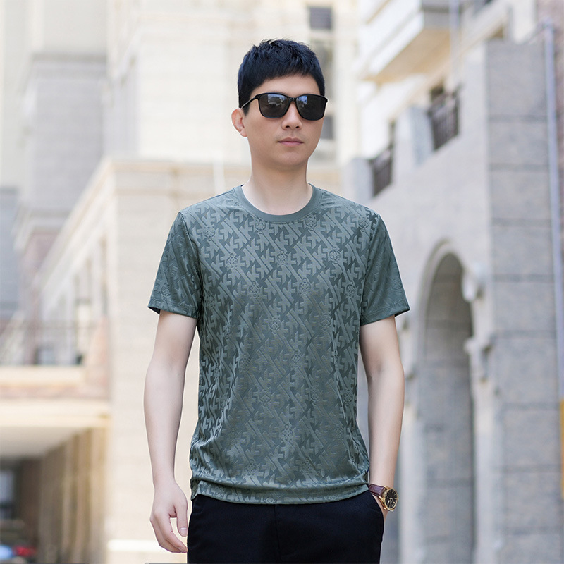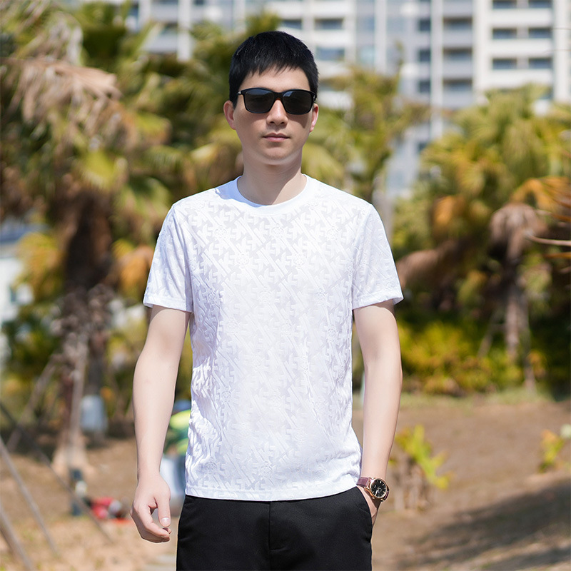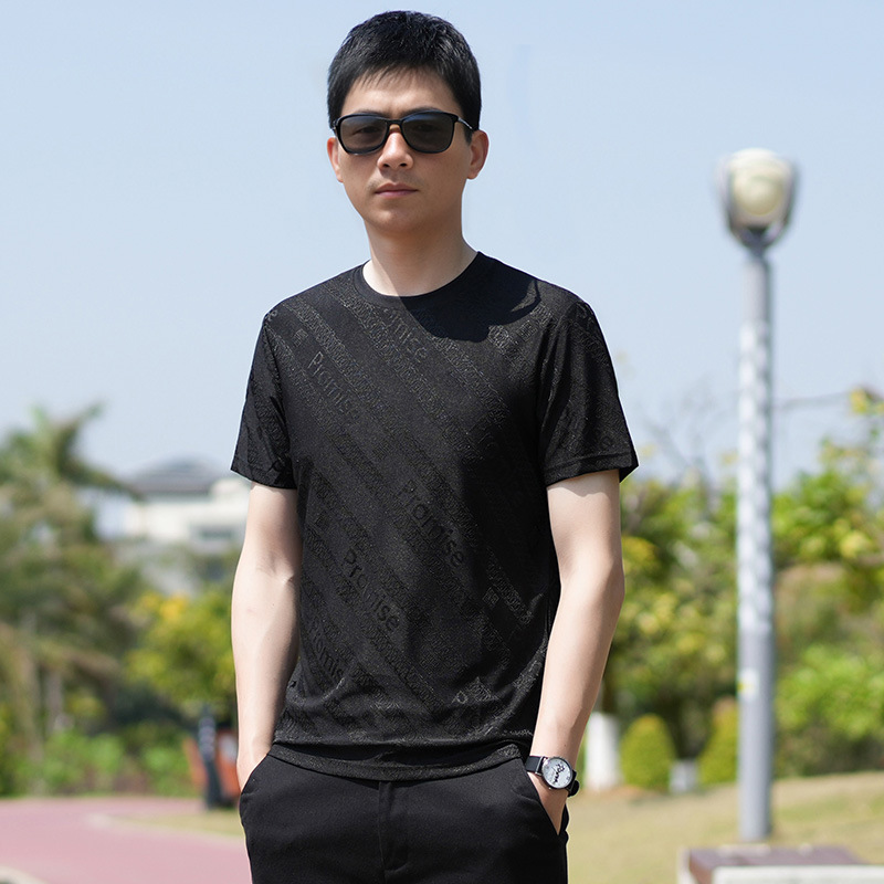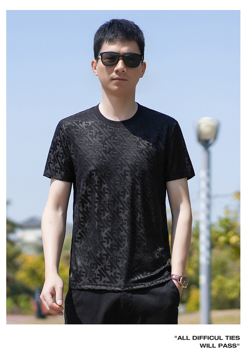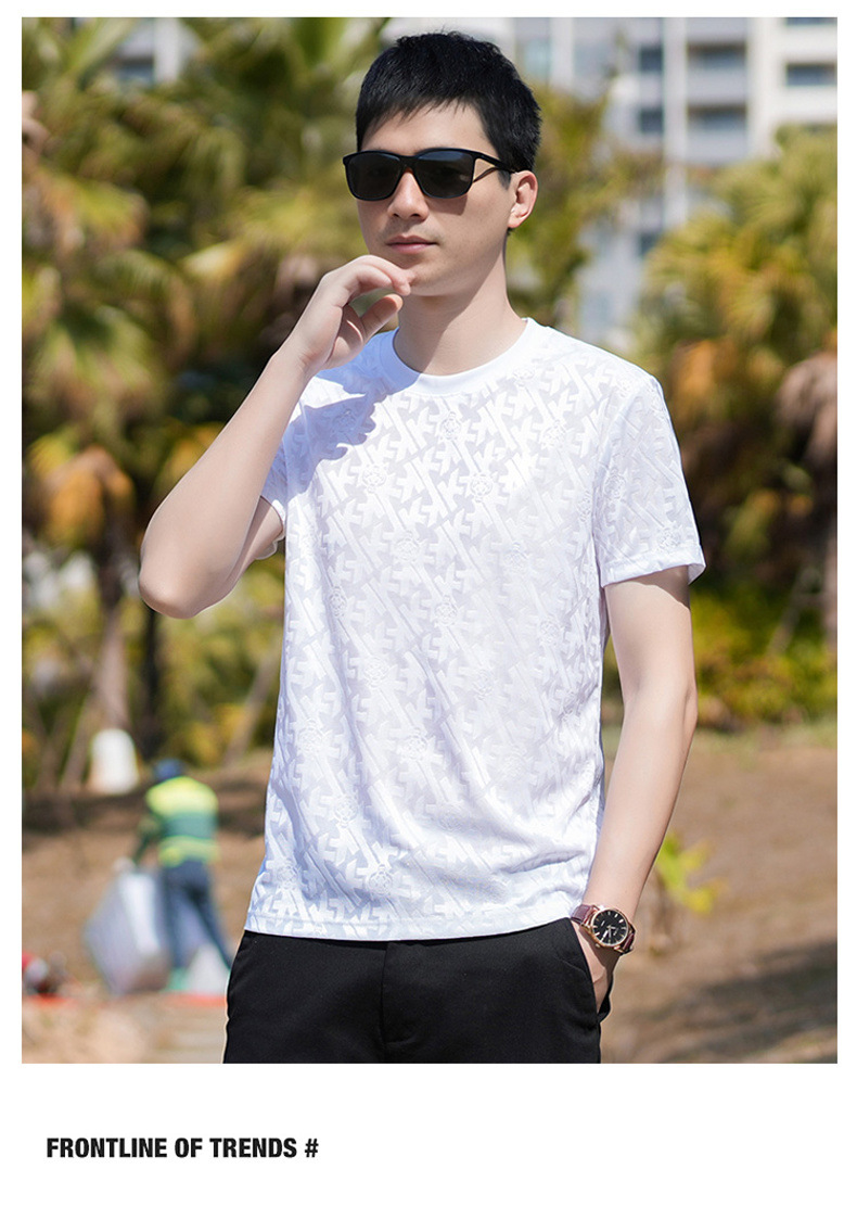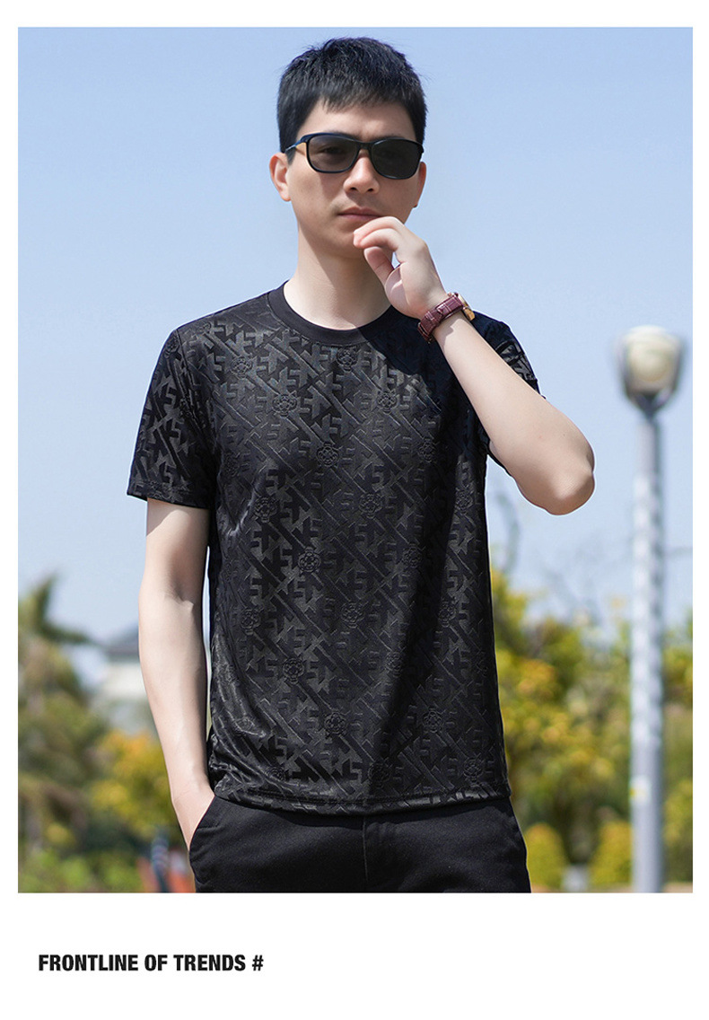 티셔츠 남성 티셔츠 여름 하이 엔드 새로운 패션 브랜드 남성 아이스 실크 빠른 건조 반팔 남성 의류 자카드 남성 티셔츠 패션스토어 가기