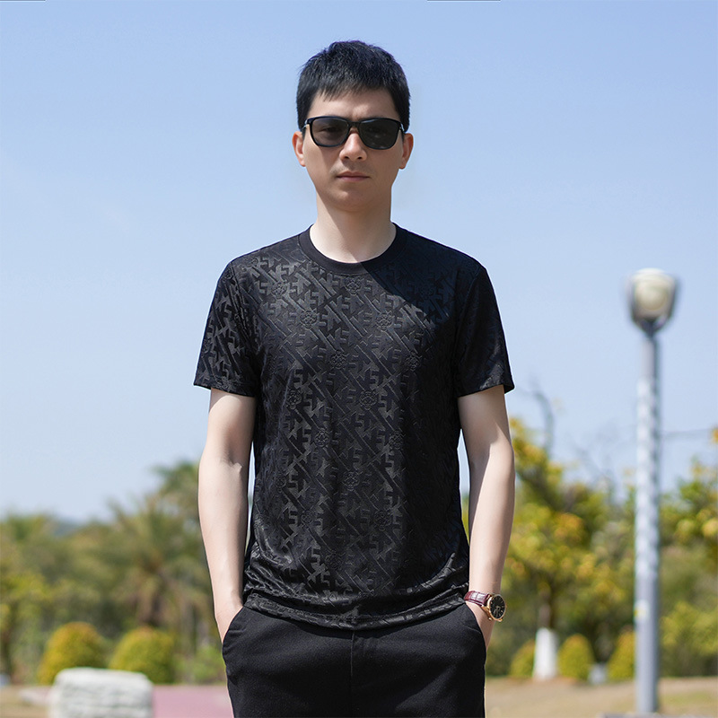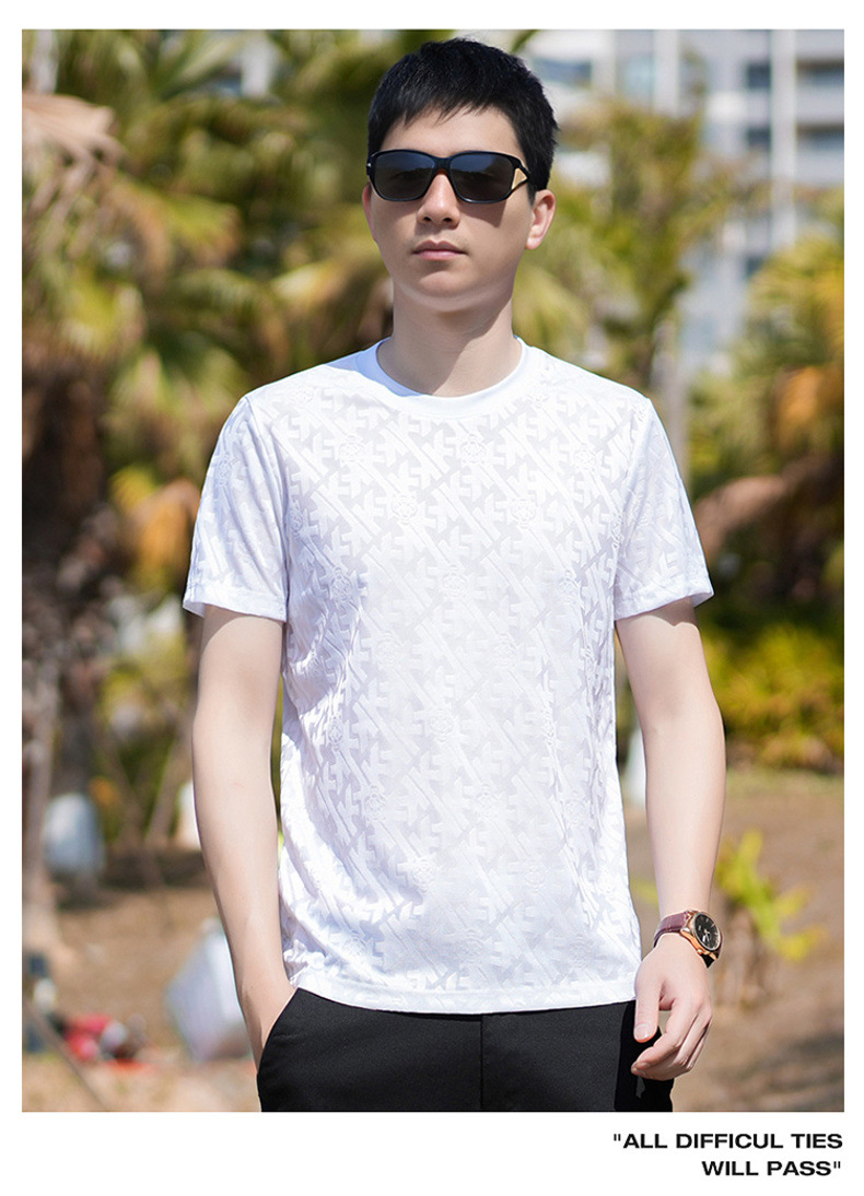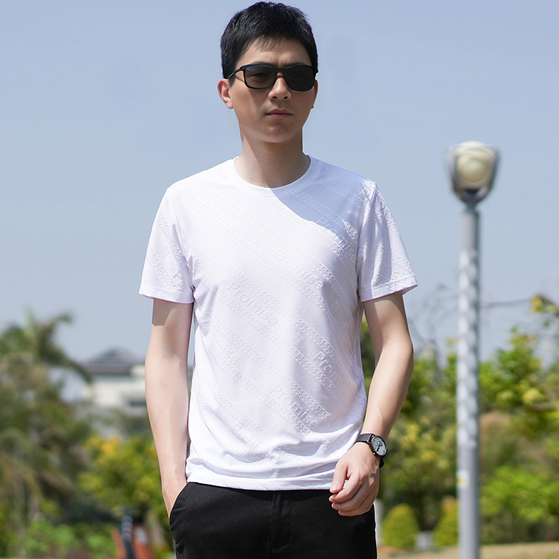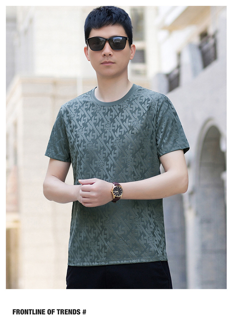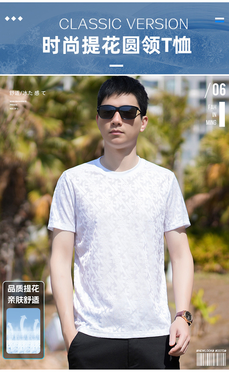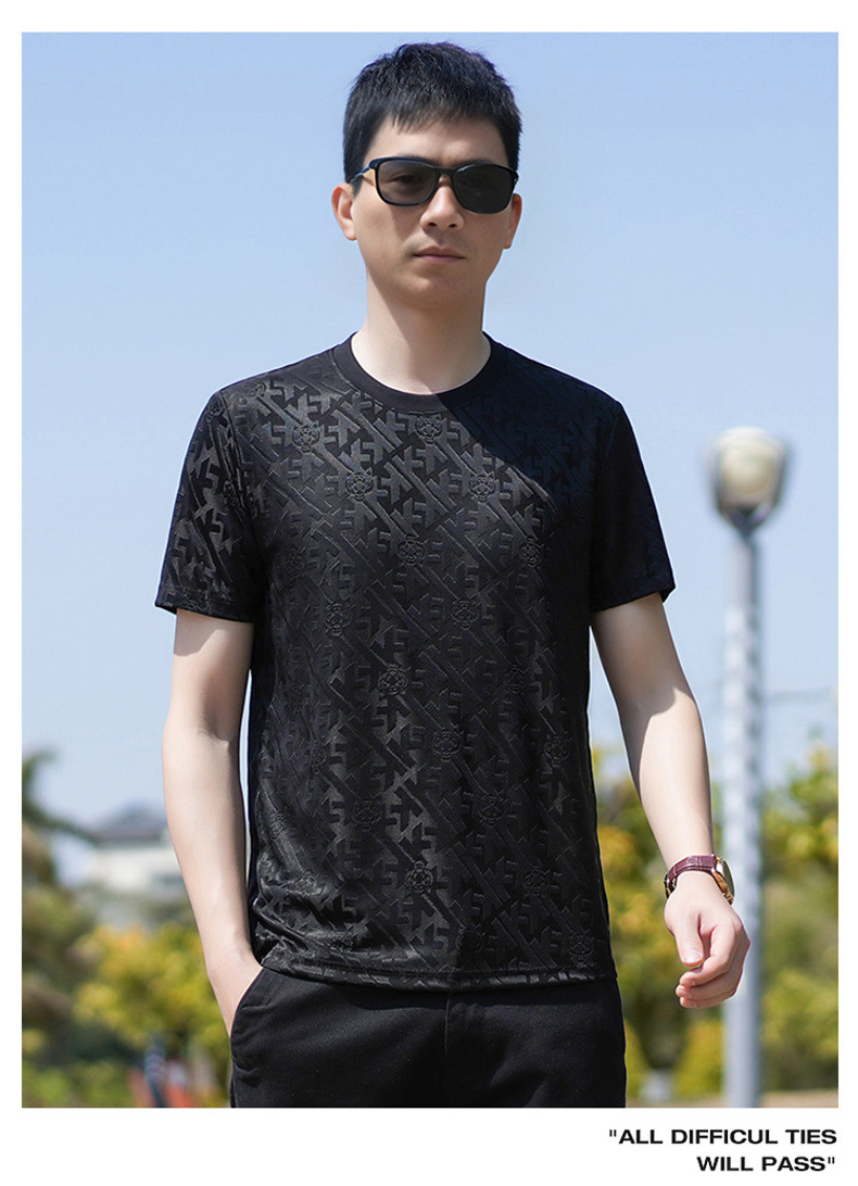 티셔츠 남성 티셔츠 여름 하이 엔드 새로운 패션 브랜드 남성 아이스 실크 빠른 건조 반팔 남성 의류 자카드 남성 티셔츠 패션스토어 가기