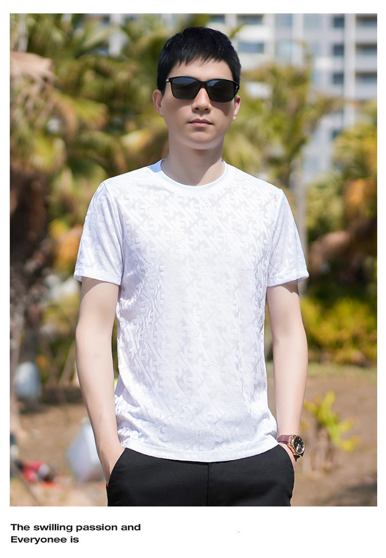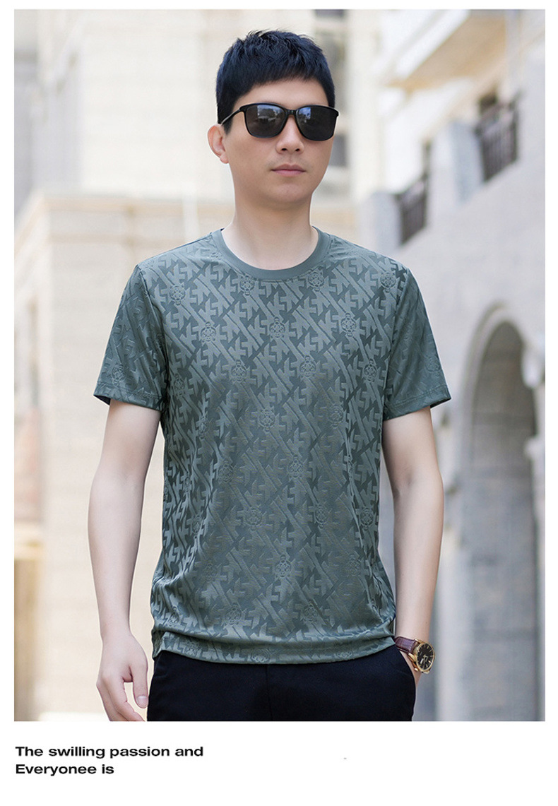 티셔츠 남성 티셔츠 여름 하이 엔드 새로운 패션 브랜드 남성 아이스 실크 빠른 건조 반팔 남성 의류 자카드 남성 티셔츠 패션