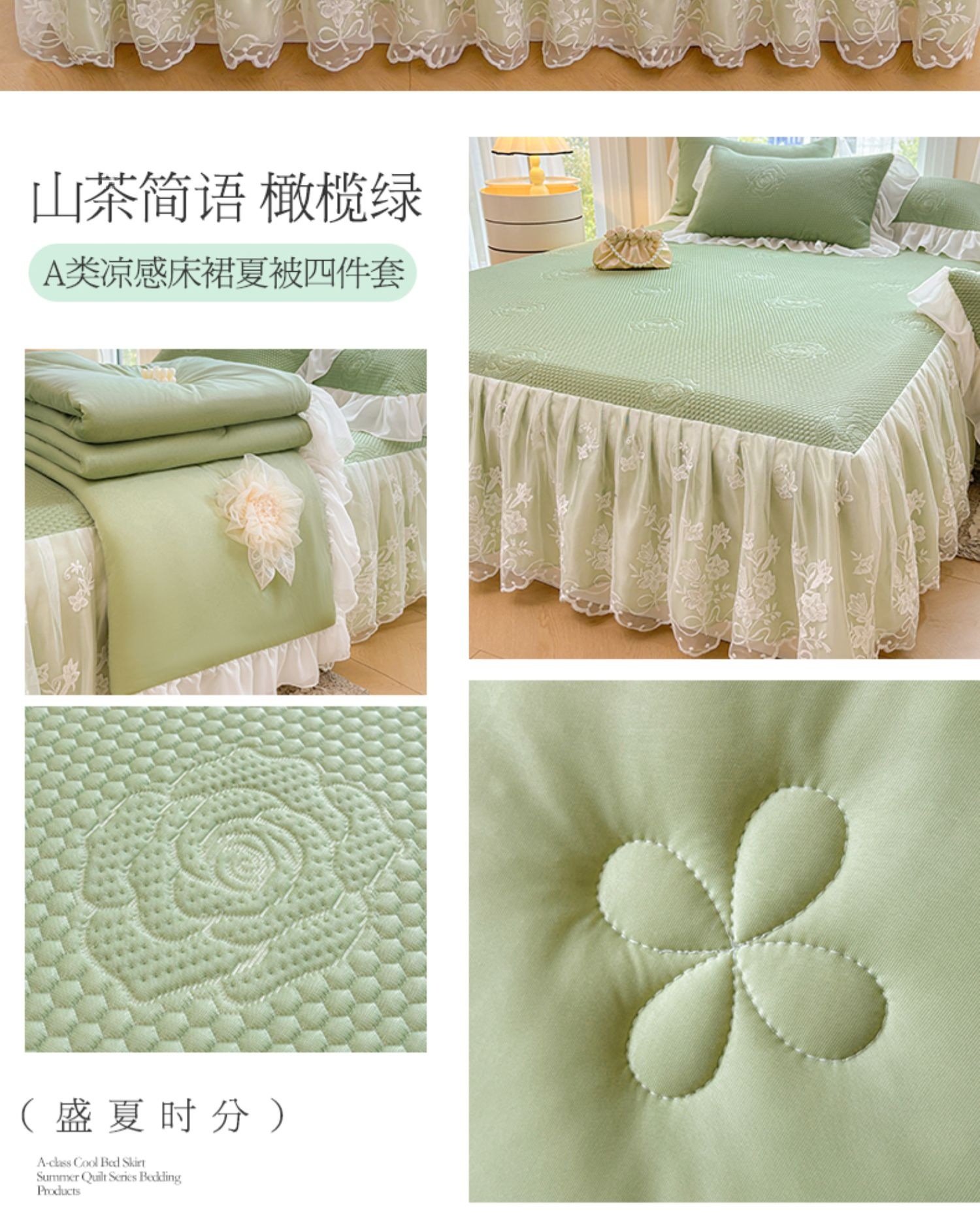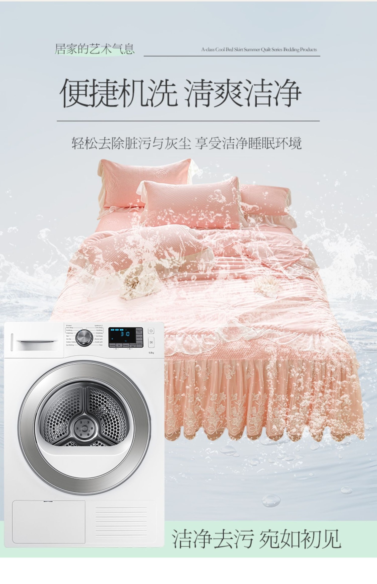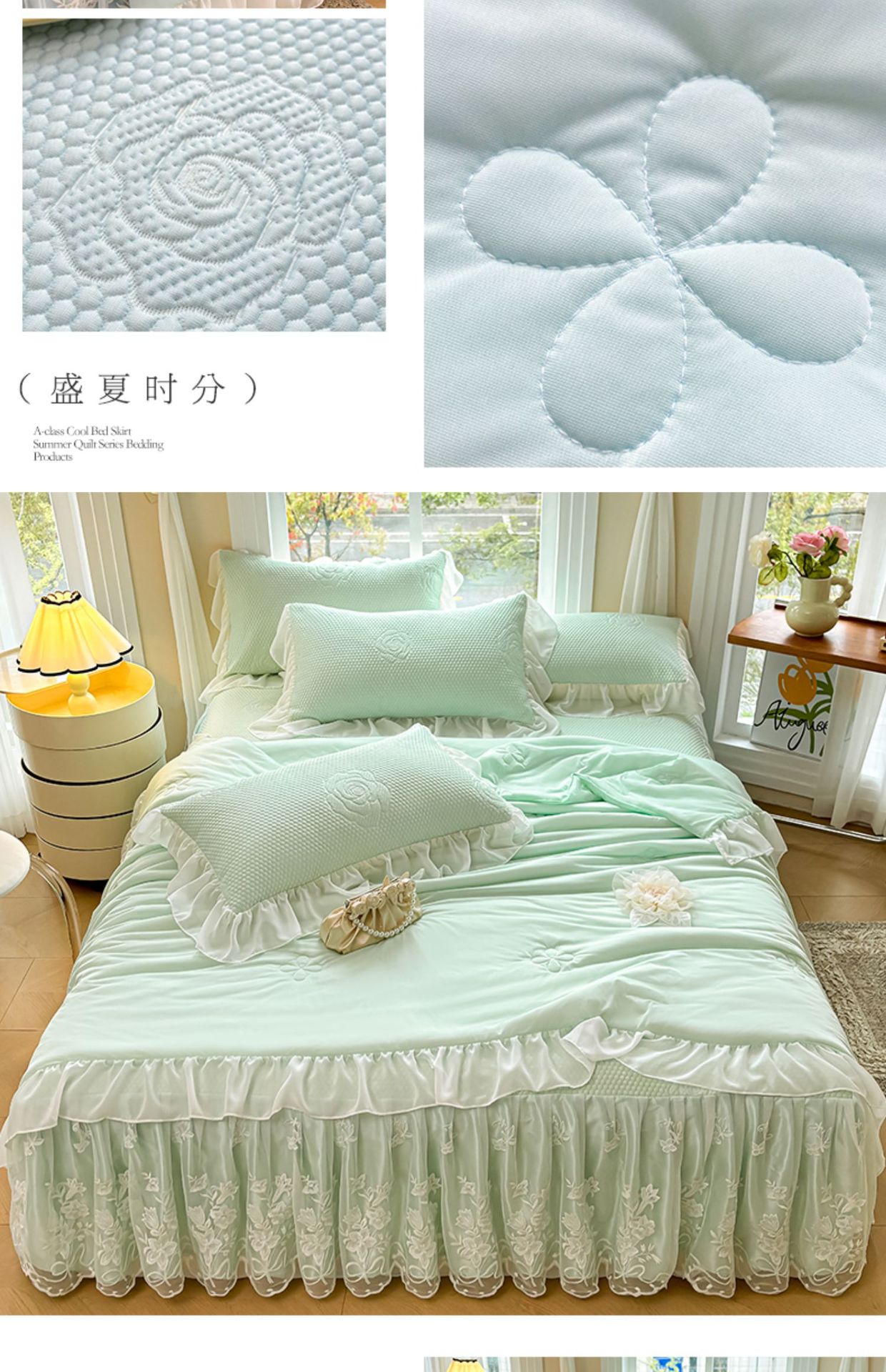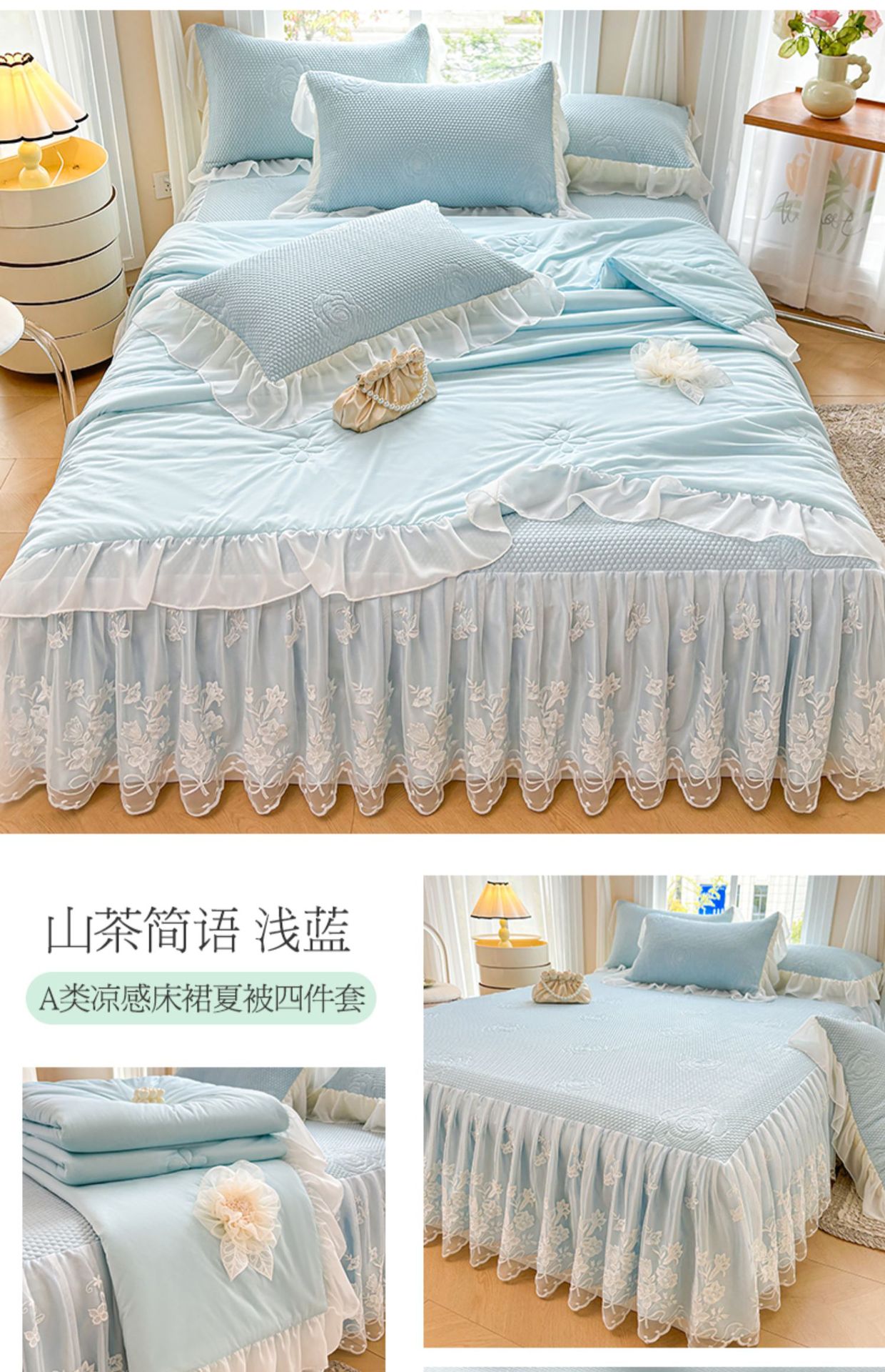 여름 쿨 실크 여름 쿨 퀼트 4 피스 침대 스커트 공주 스타일 기계 세탁기 아이스 실크 여름 퀼트 얇은 에어컨 신제품스토어 가기