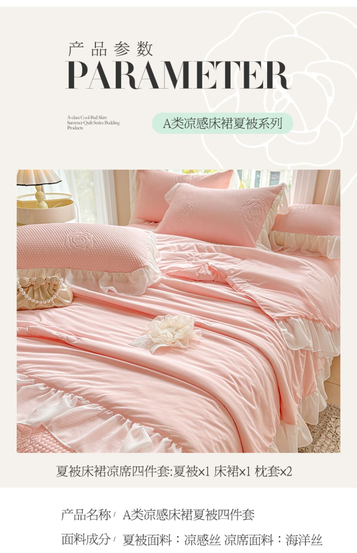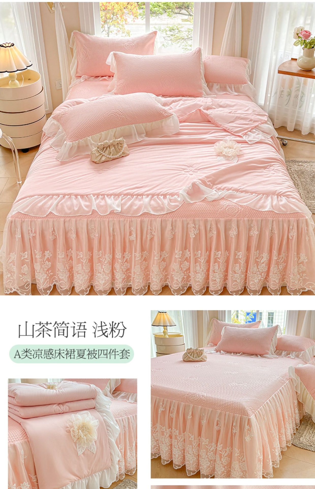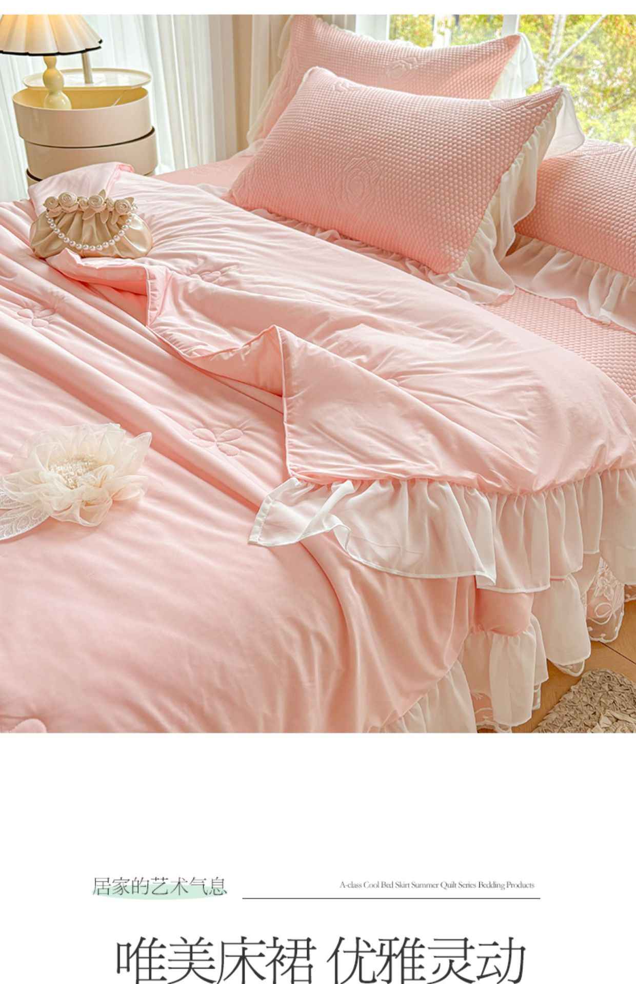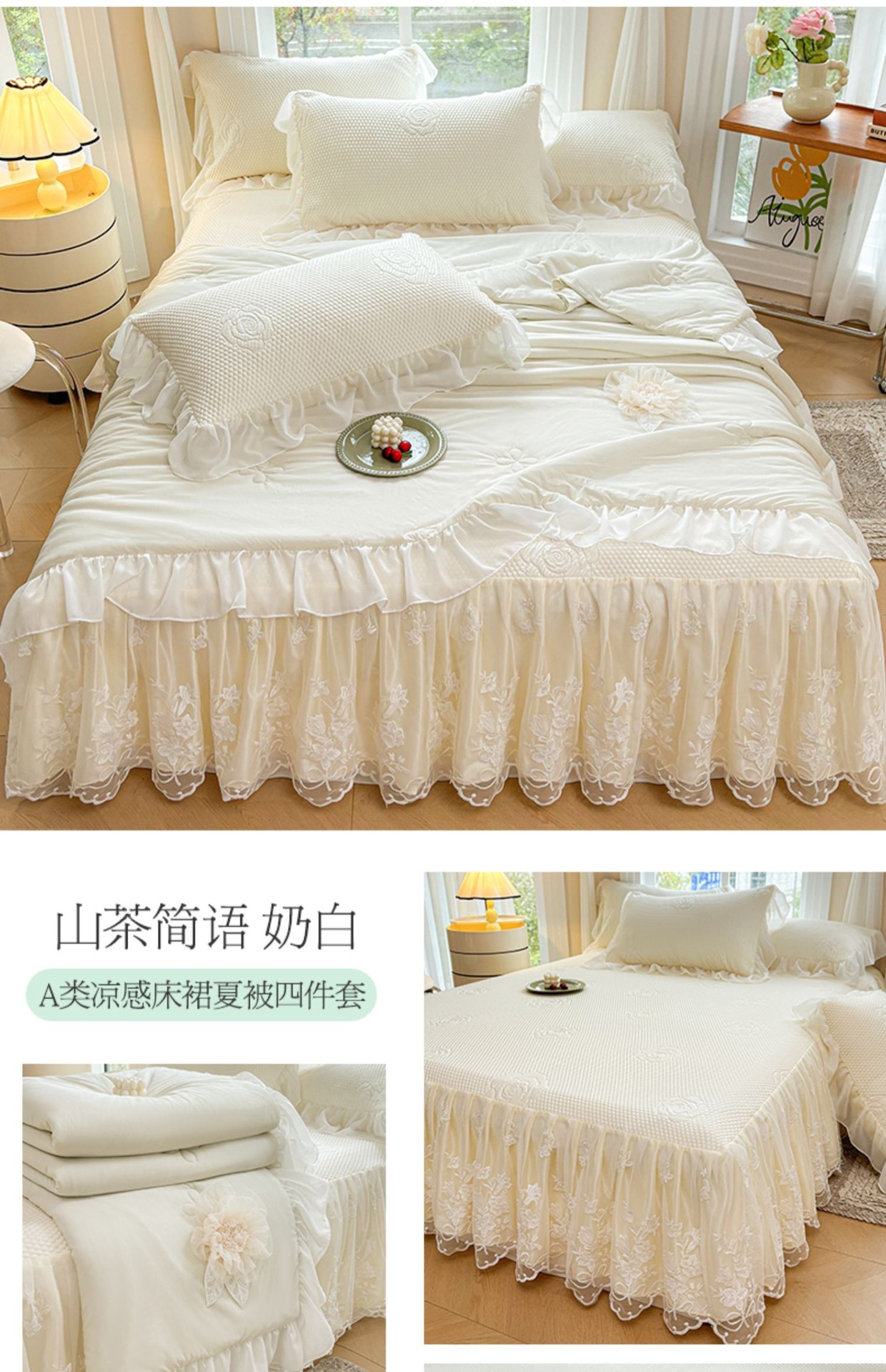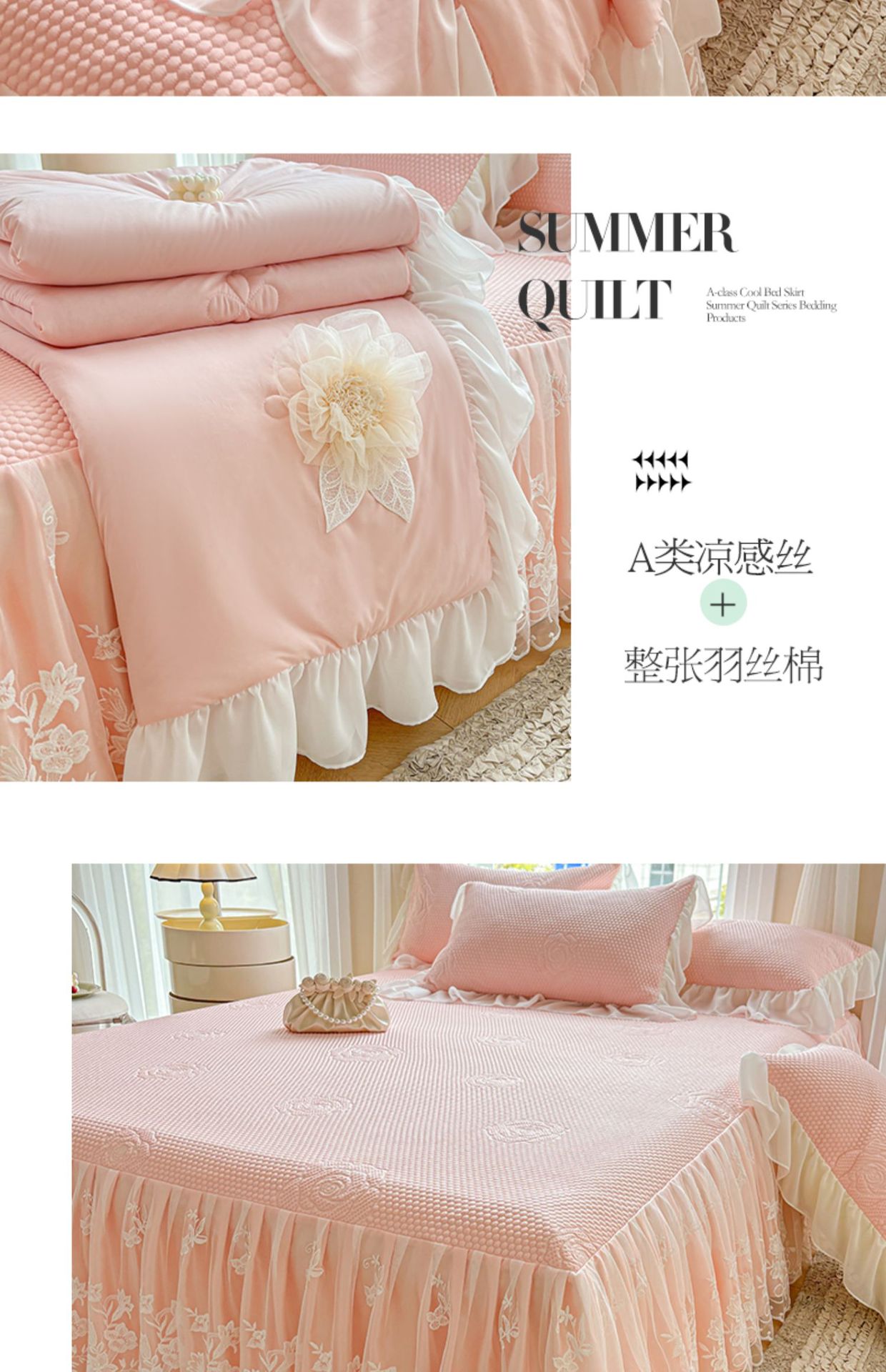 여름 쿨 실크 여름 쿨 퀼트 4 피스 침대 스커트 공주 스타일 기계 세탁기 아이스 실크 여름 퀼트 얇은 에어컨 신제품스토어 가기