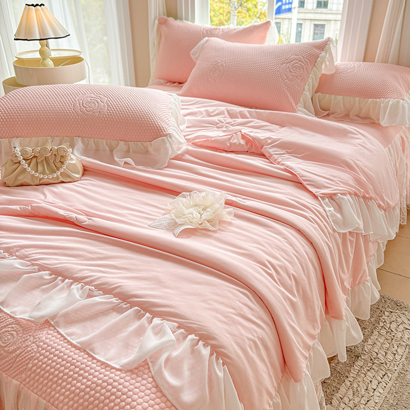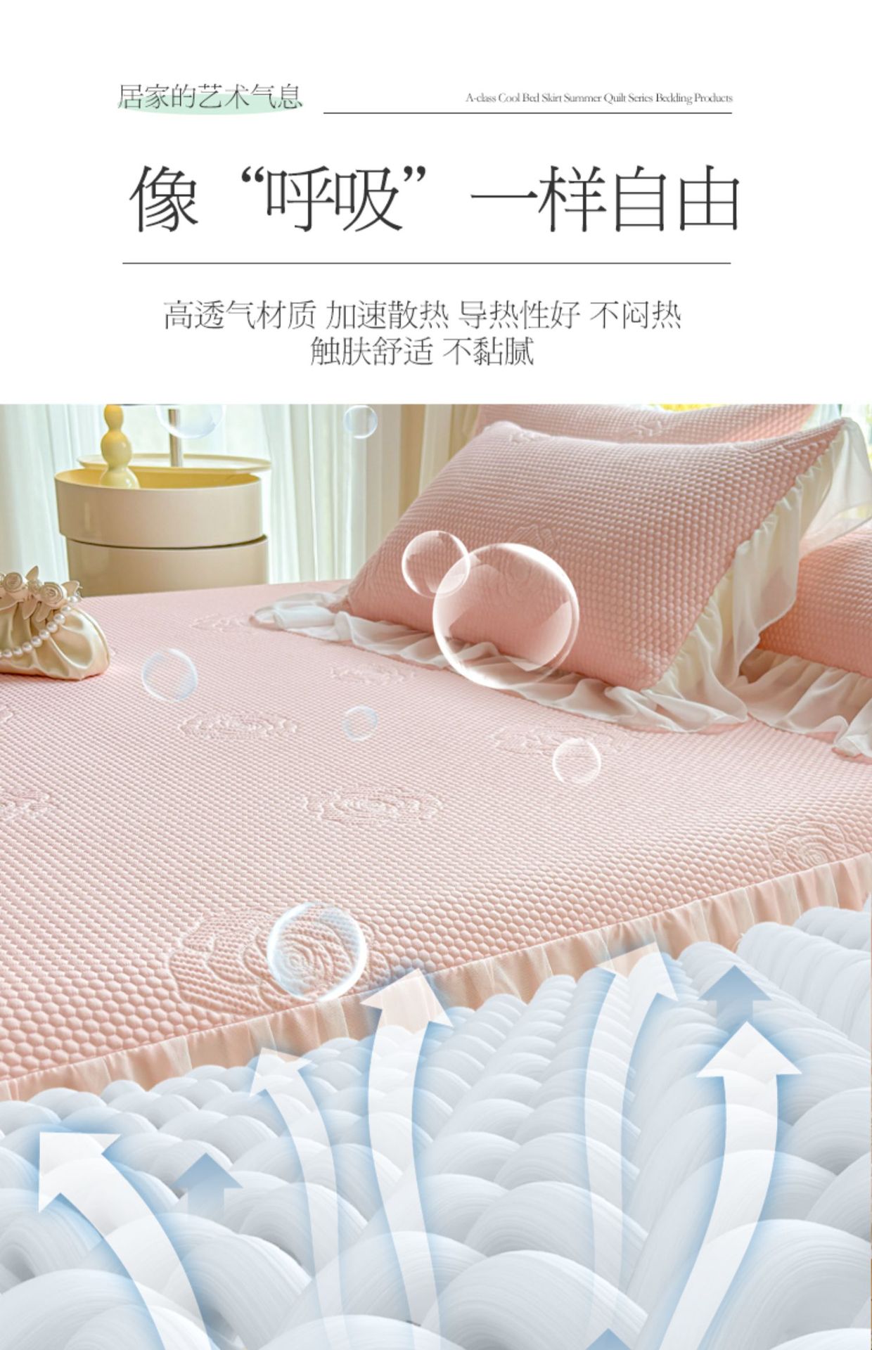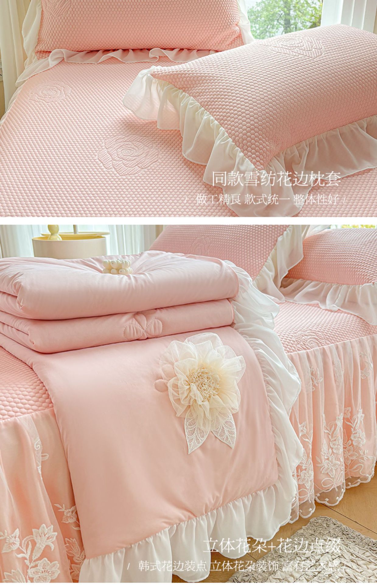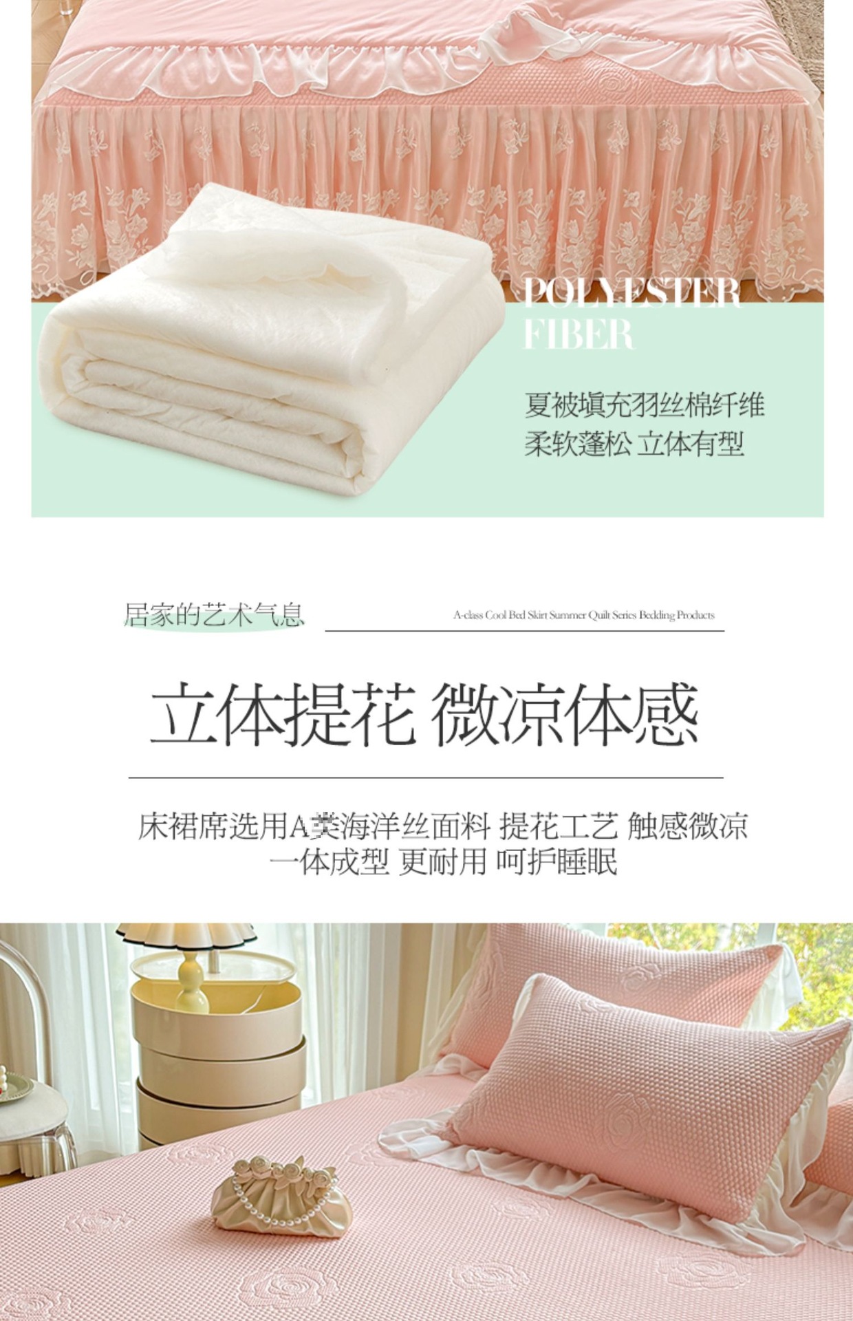 여름 쿨 실크 여름 쿨 퀼트 4 피스 침대 스커트 공주 스타일 기계 세탁기 아이스 실크 여름 퀼트 얇은 에어컨 신제품스토어 가기
