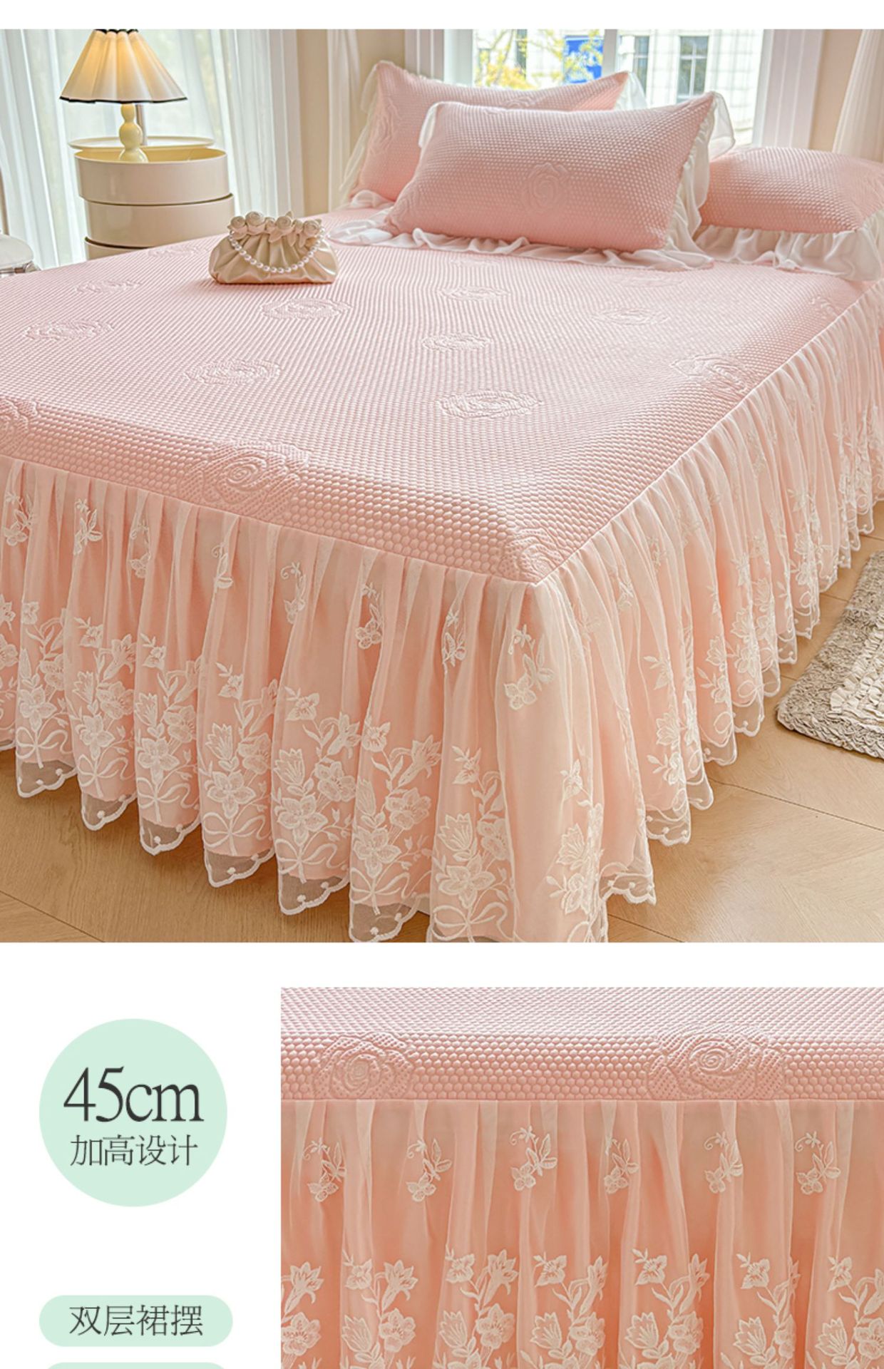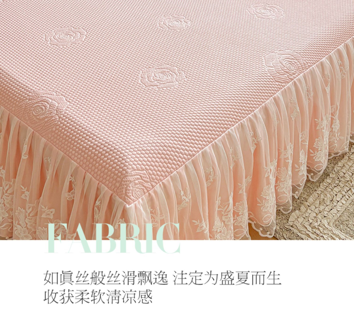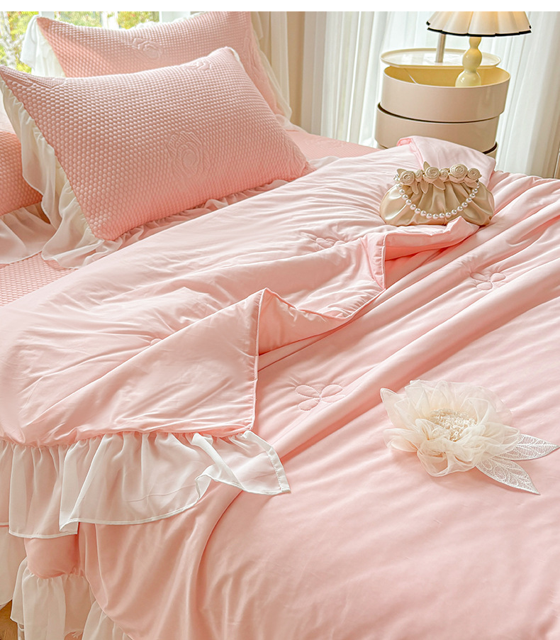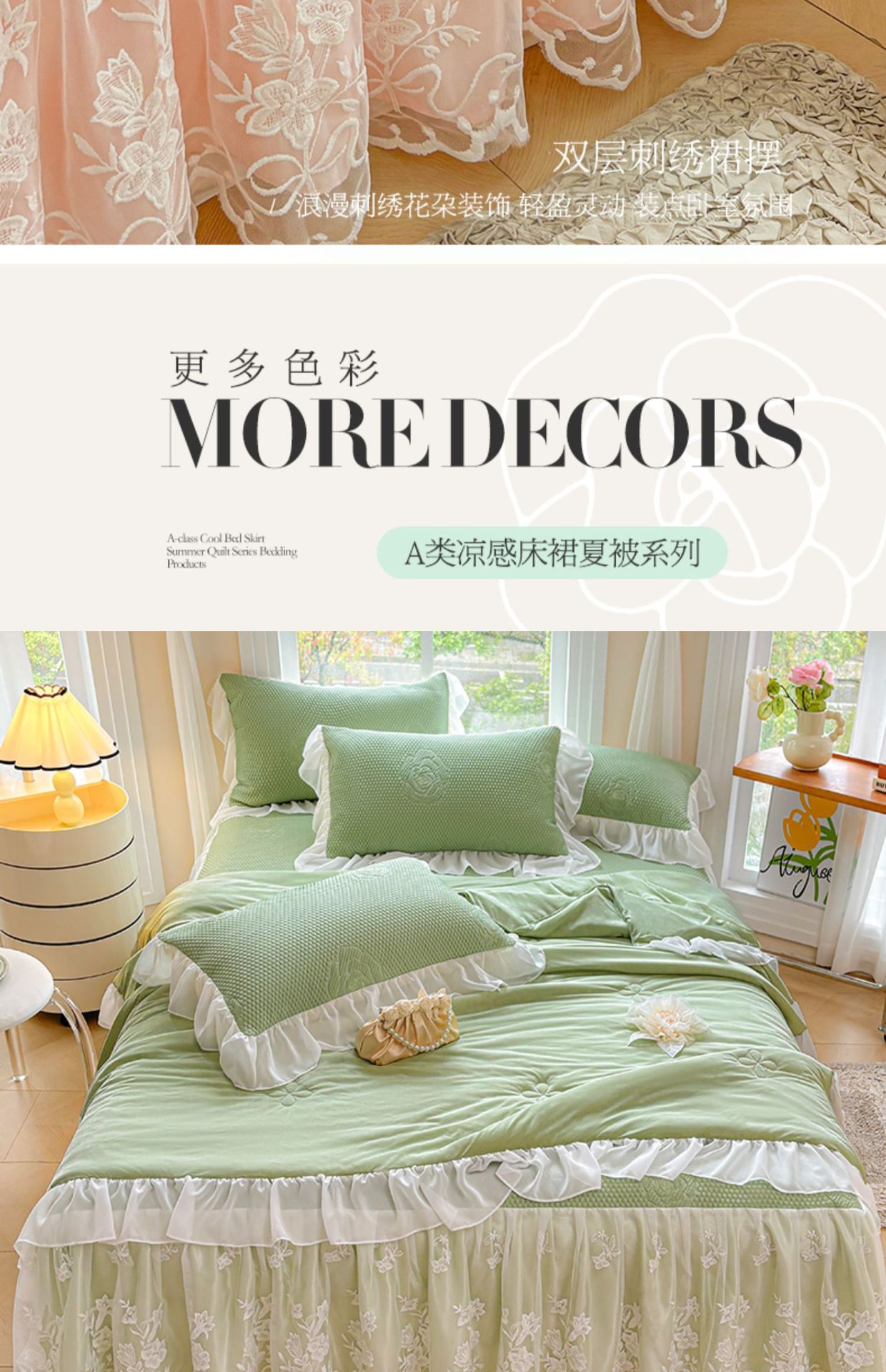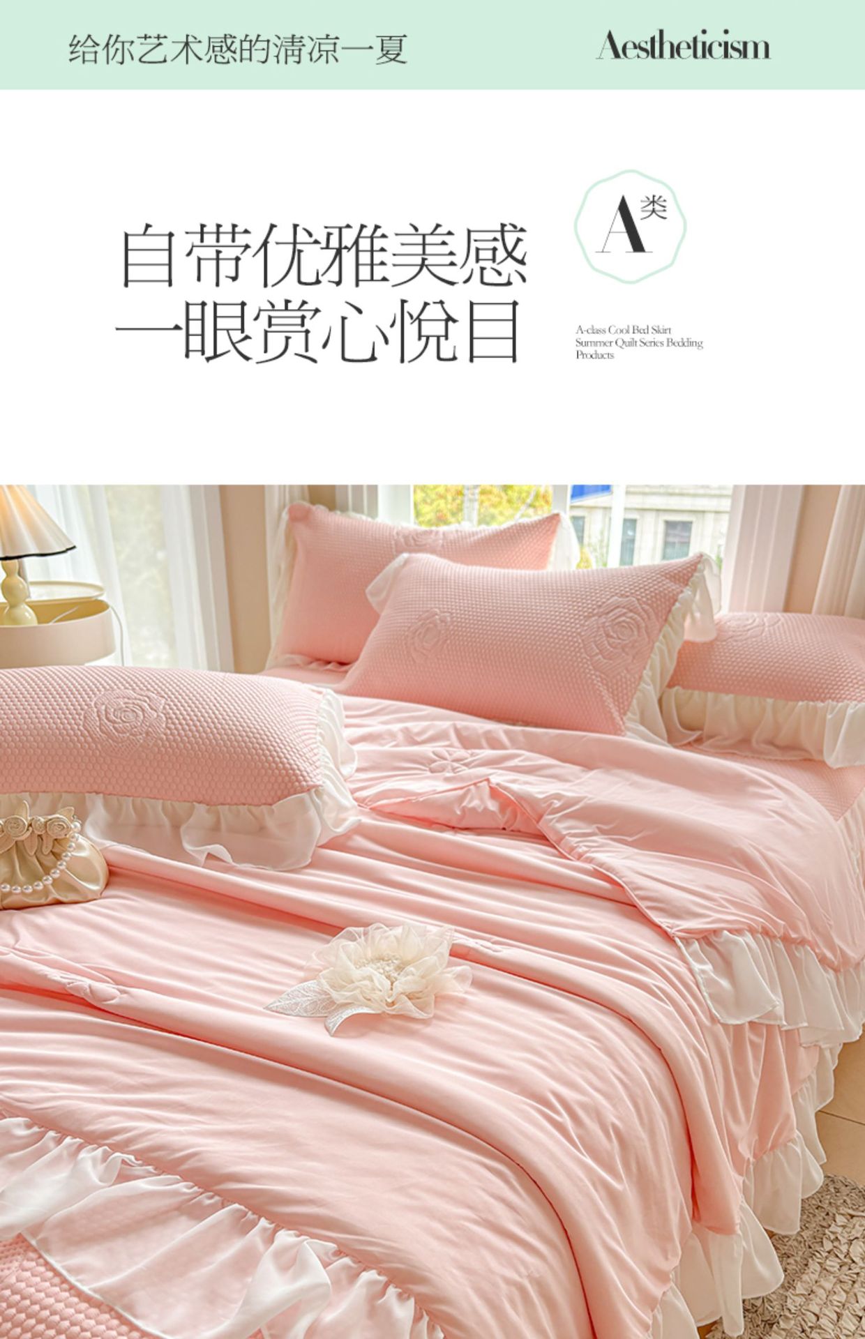 여름 쿨 실크 여름 쿨 퀼트 4 피스 침대 스커트 공주 스타일 기계 세탁기 아이스 실크 여름 퀼트 얇은 에어컨 신제품스토어 가기
