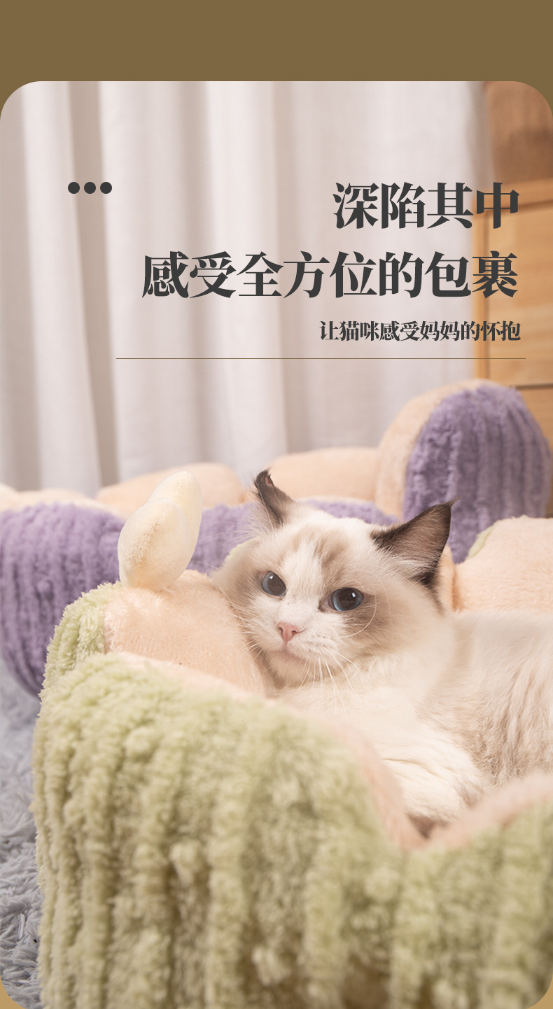 고양이 둥지 선인장 큰 공간 부드러운 따뜻한 수면 꽃잎 모양 둥지 애완 동물 사육장 개 사육장 매트 공장 도매스토어 가기