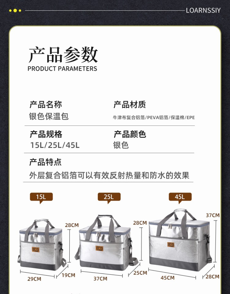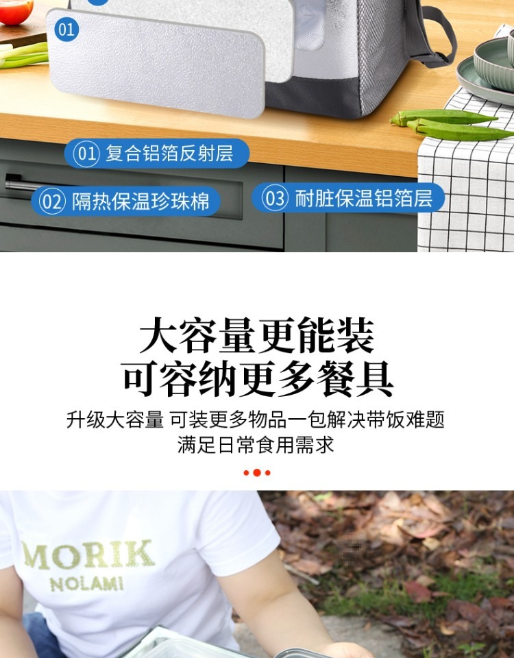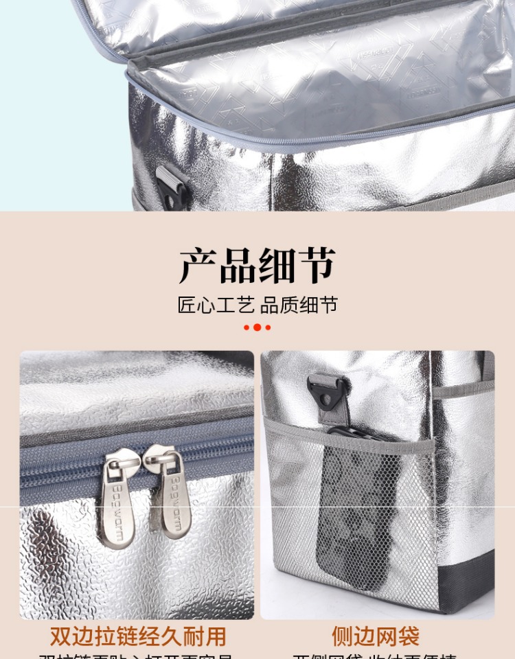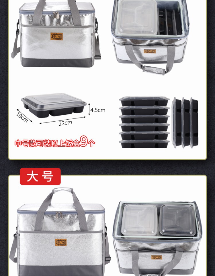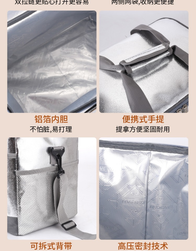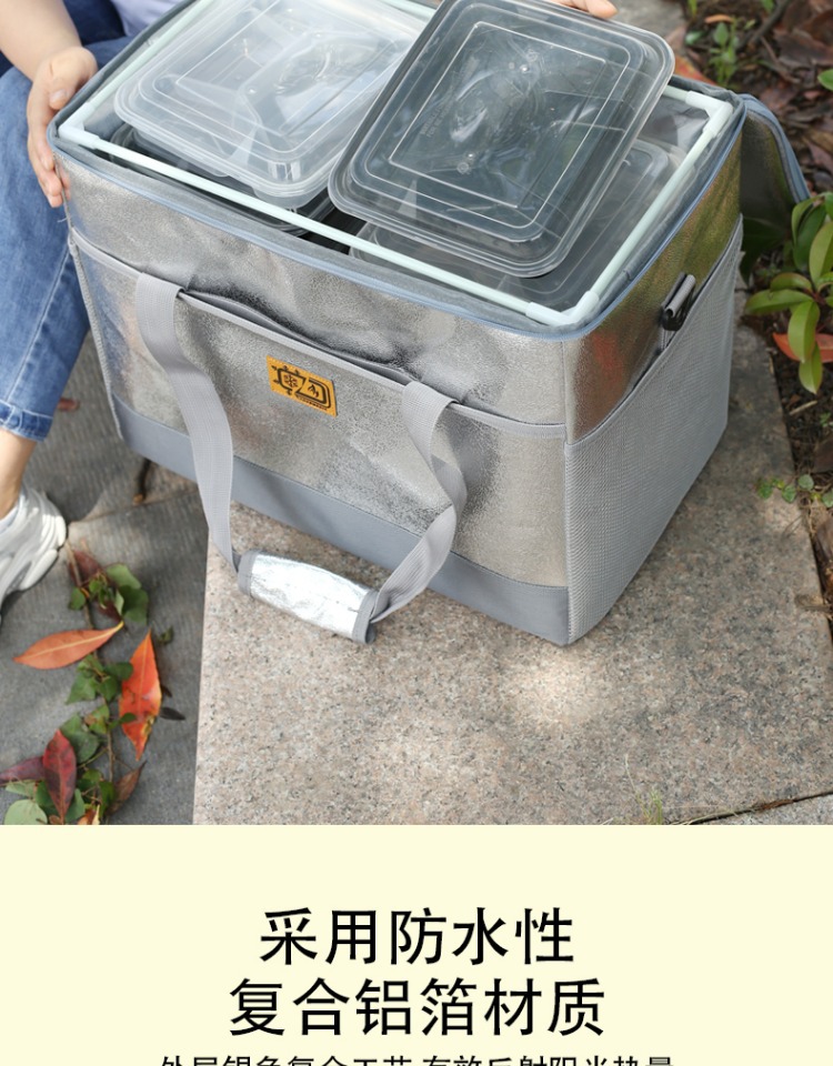 방수 열 보존 가방 대용량 도시락 가방 두꺼운 알루미늄 호일 휴대용 식사 배달 상자 야외 열 보존 가방 차가운 신제품
