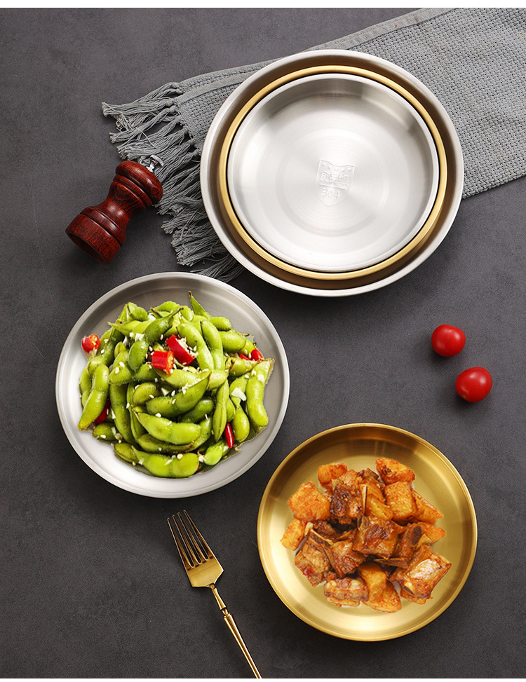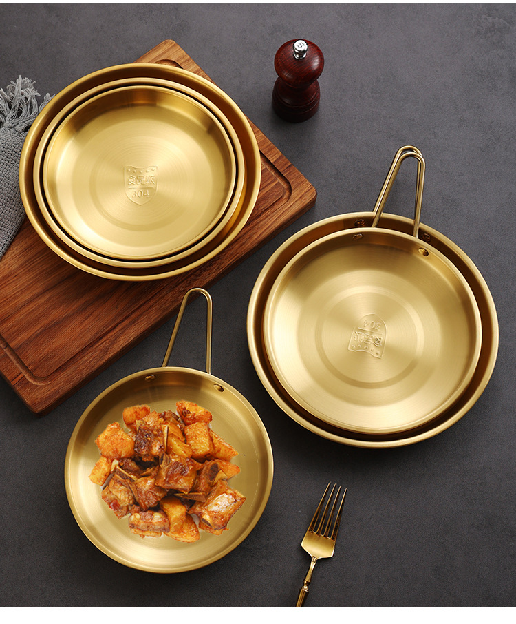 304 스테인레스 스틸 스테이크 핸들 스낵 플레이트 스테이크 황금 디저트 플레이트 상업용 웨스턴 스테이크 플레이트 바베큐 플레이트