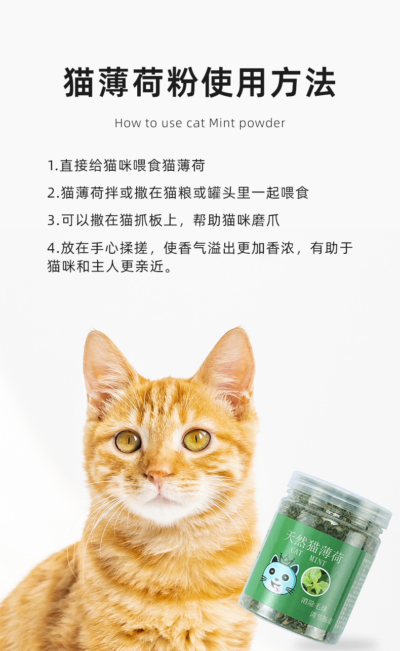 캣닢 순수 캣그라스 파우더는 천연 식용으로 구취 제거, 물 마시기, 먹이 유인, 어금니 청소, 작은 봉지 털 유인에 사용됩니다.스토어 가기