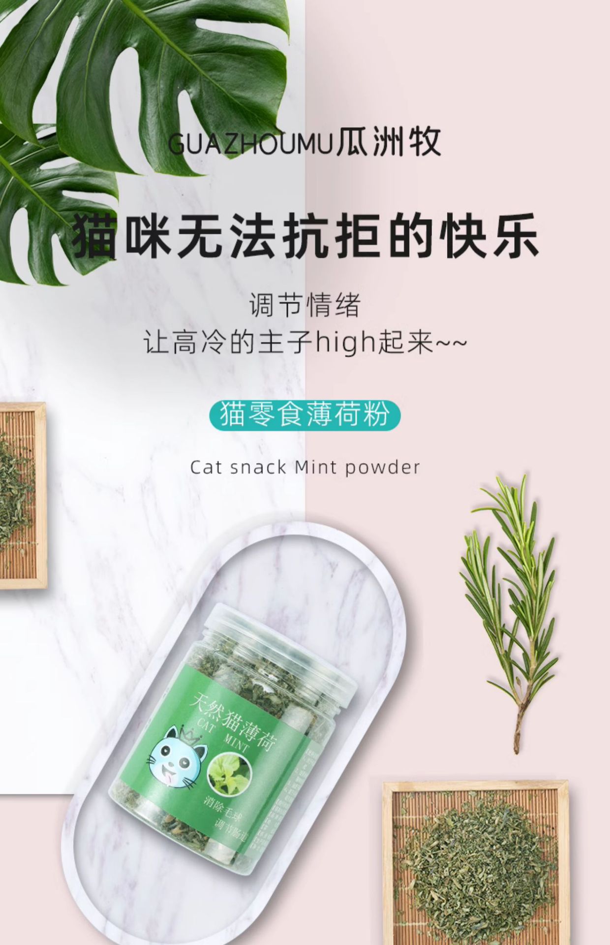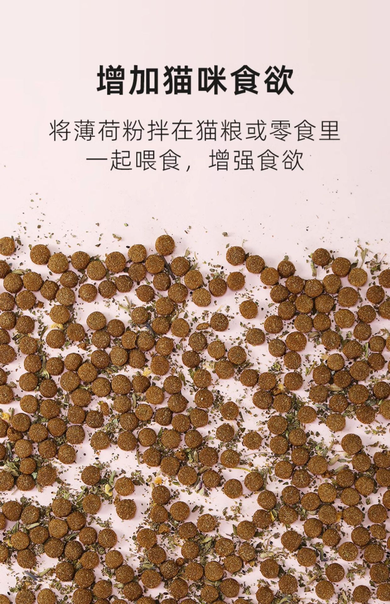캣닢 순수 캣그라스 파우더는 천연 식용으로 구취 제거, 물 마시기, 먹이 유인, 어금니 청소, 작은 봉지 털 유인에 사용됩니다.