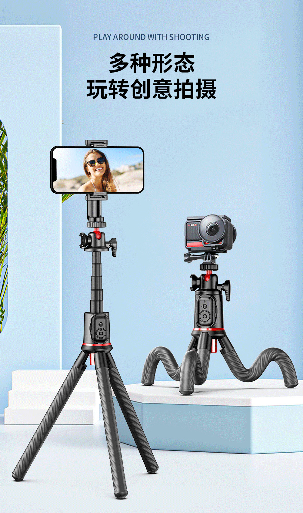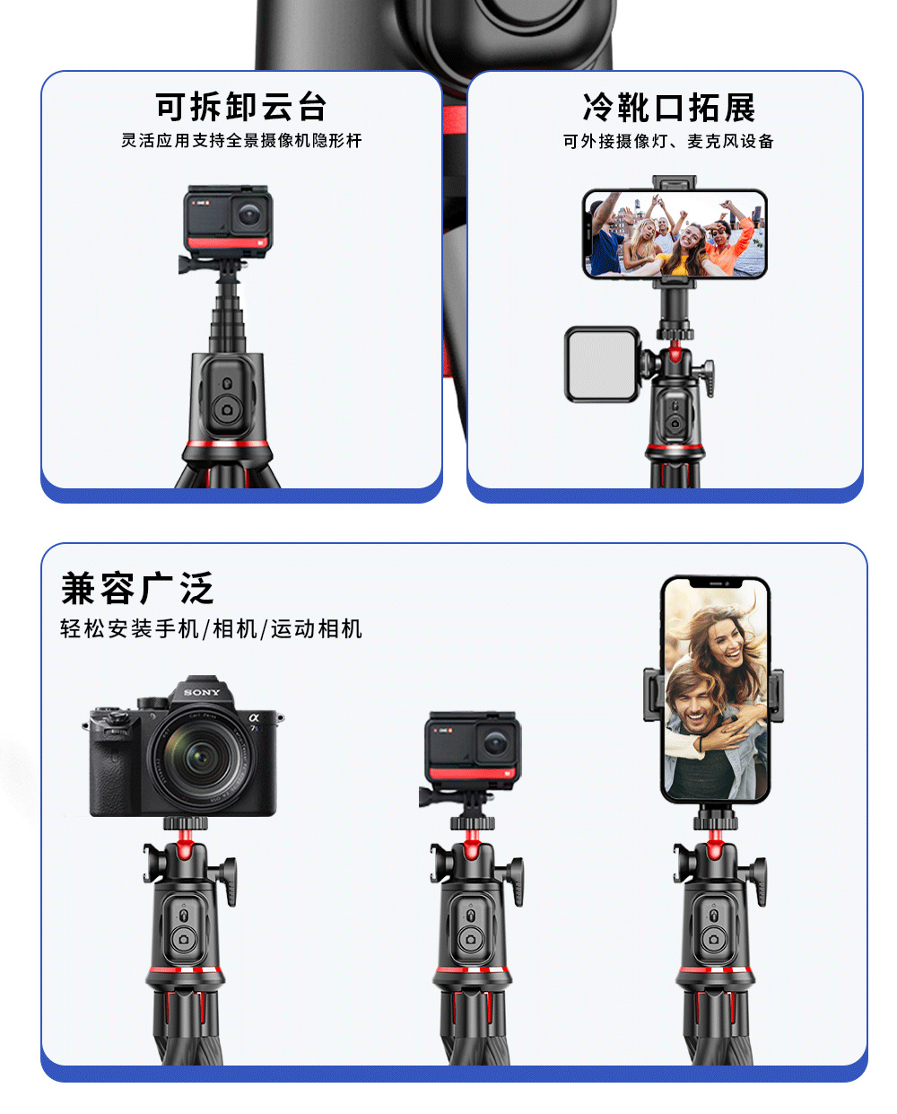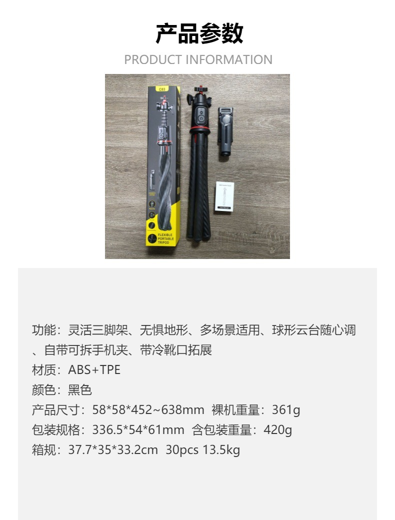 C03 문어형 데스크탑 라이브 방송 스탠드 전기차 휴대폰 거치대 자전거 카메라 거치대 짐벌 블루투스 셀카봉