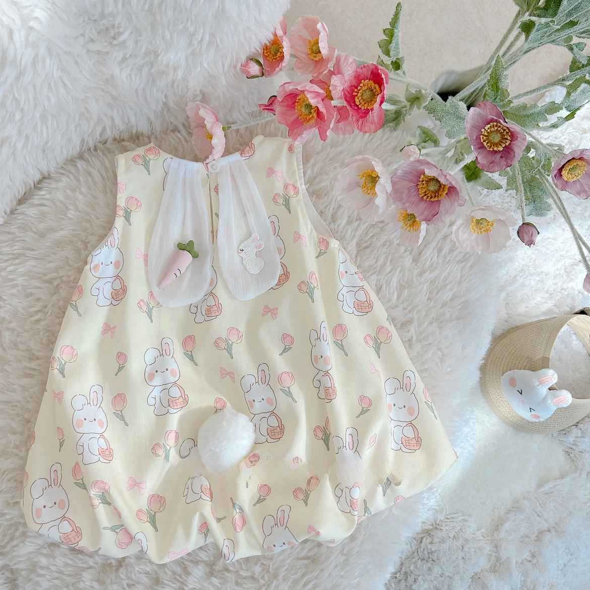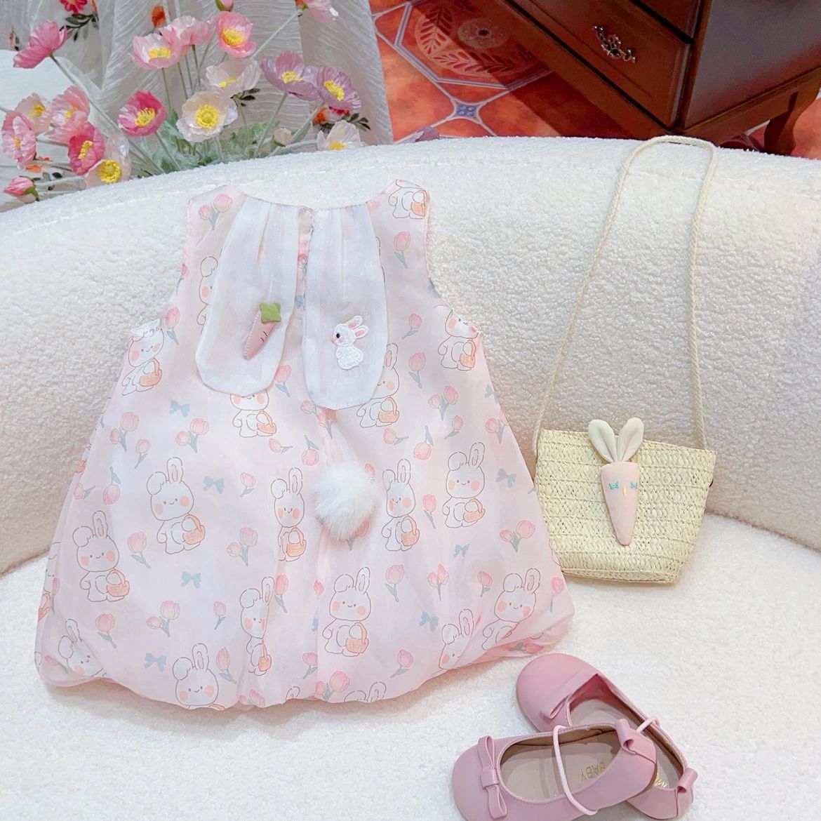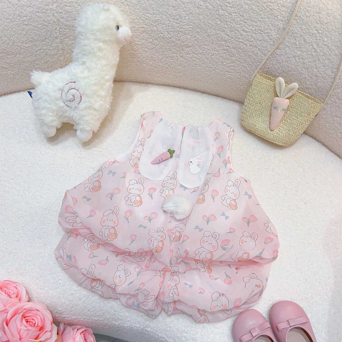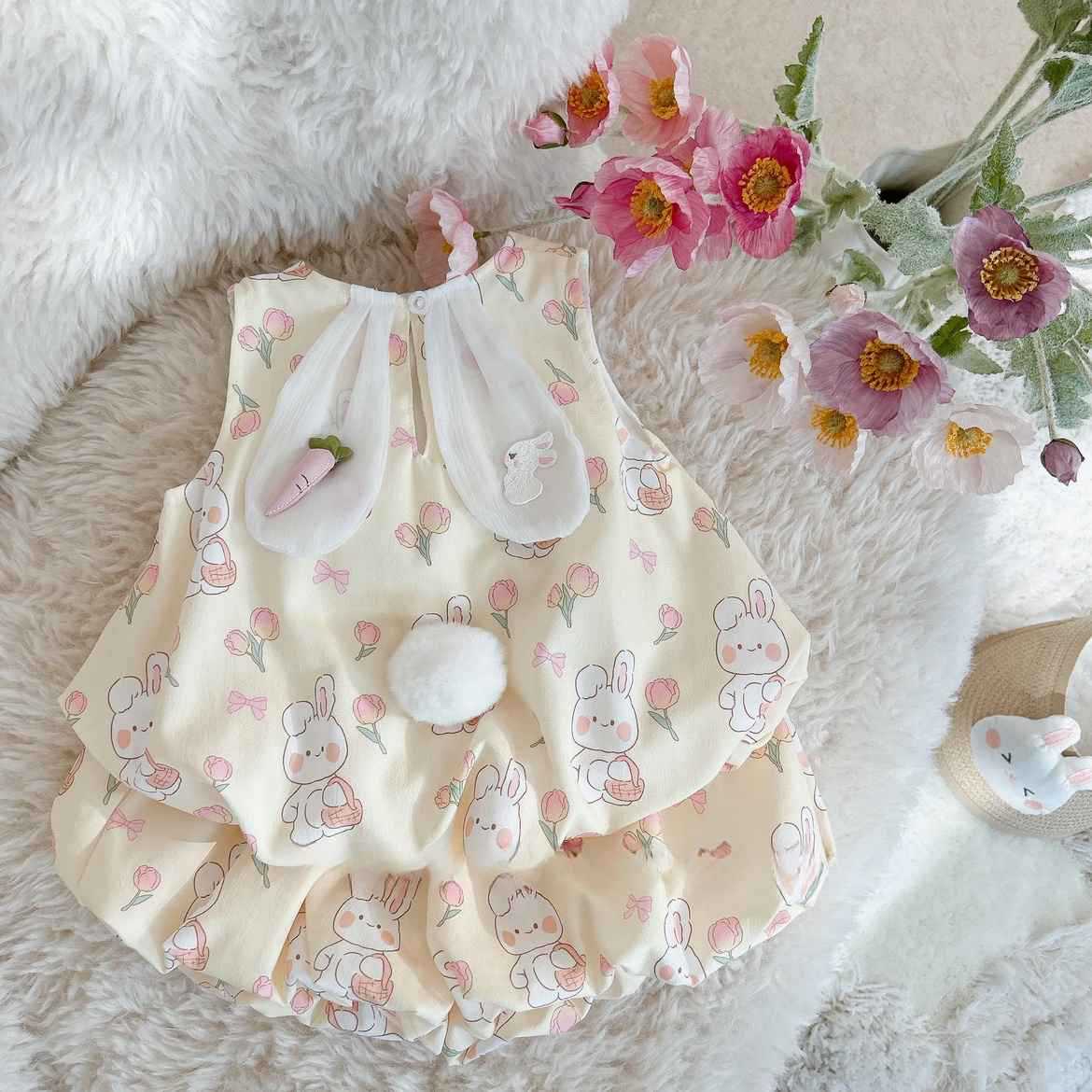 여자 정장 여름 옷 2025 새로운 어린이 유행 조끼 아기 여름 얇은 토끼 귀 투피스 세트