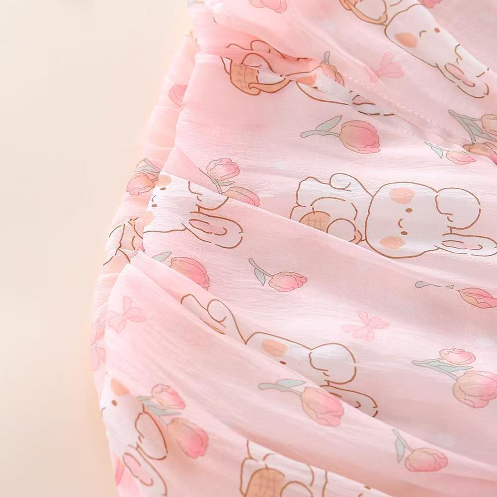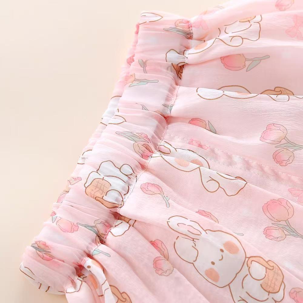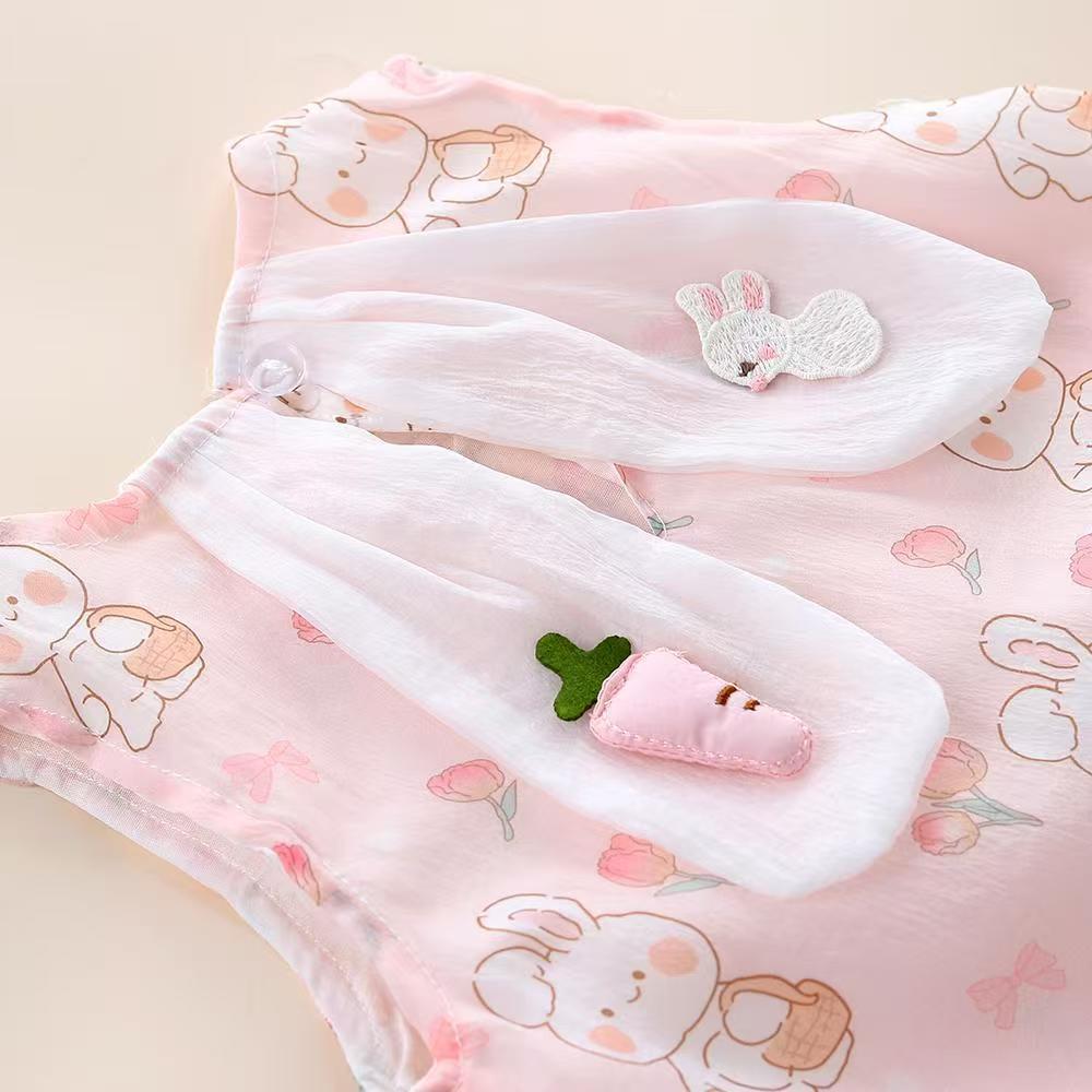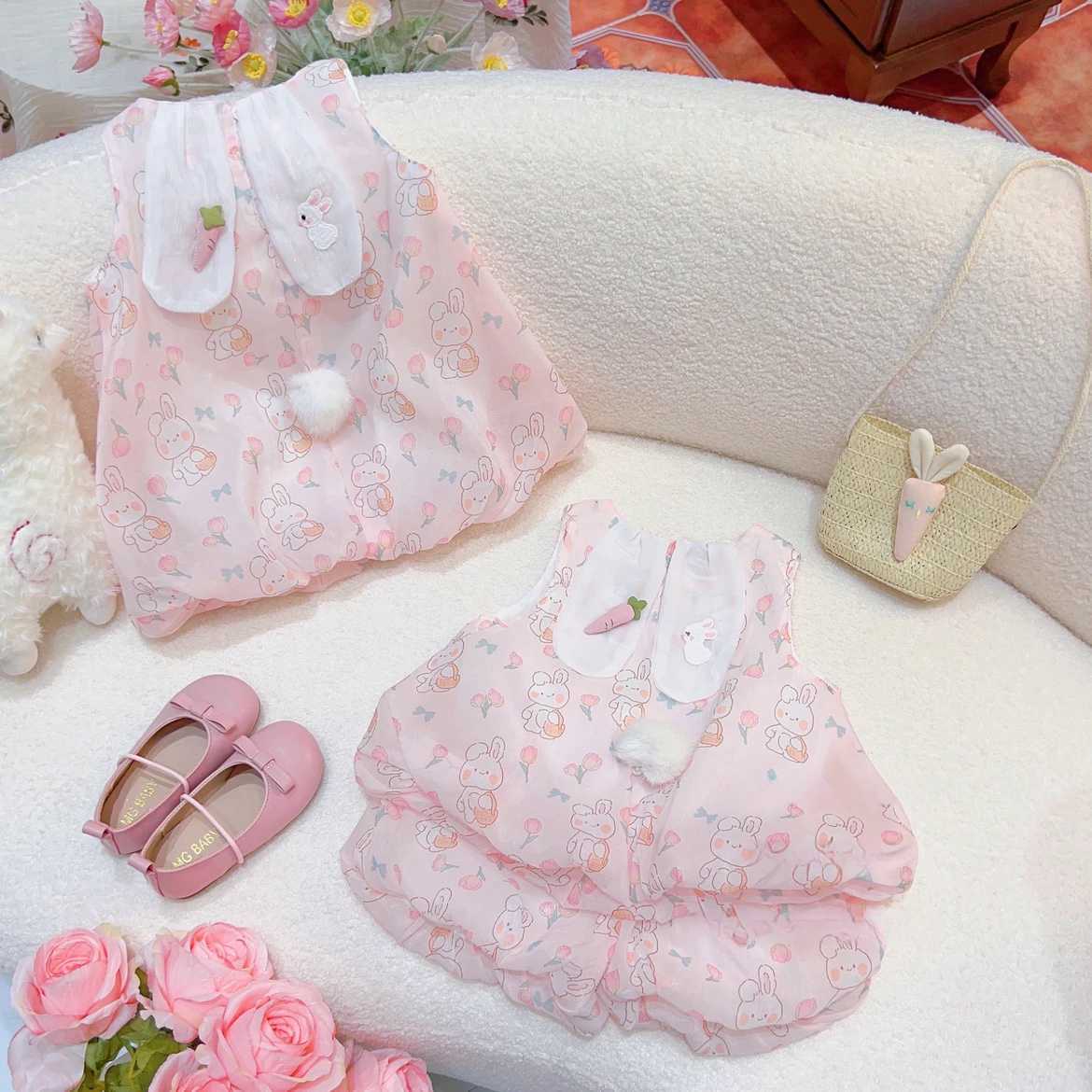 여자 정장 여름 옷 2025 새로운 어린이 유행 조끼 아기 여름 얇은 토끼 귀 투피스 세트