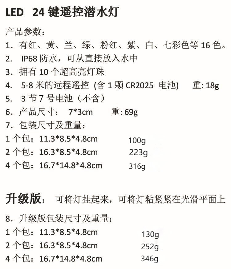 • 조명 8개와 리모컨 1개(비닐봉지에 포장)