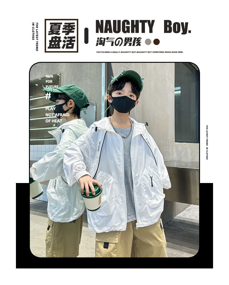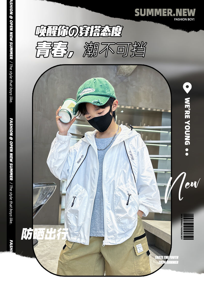 남학생 선 스크린 의류 경량 재킷 2024 새로운 어린이 의류 소년 여름 중 큰 어린이 통기성 선 스크린 의류 트렌디스토어 가기