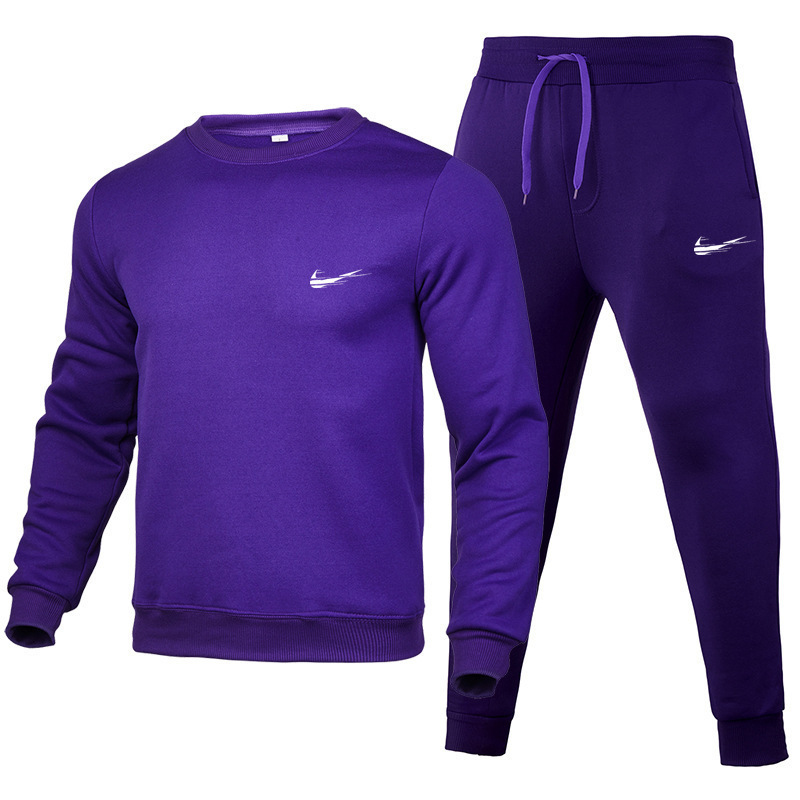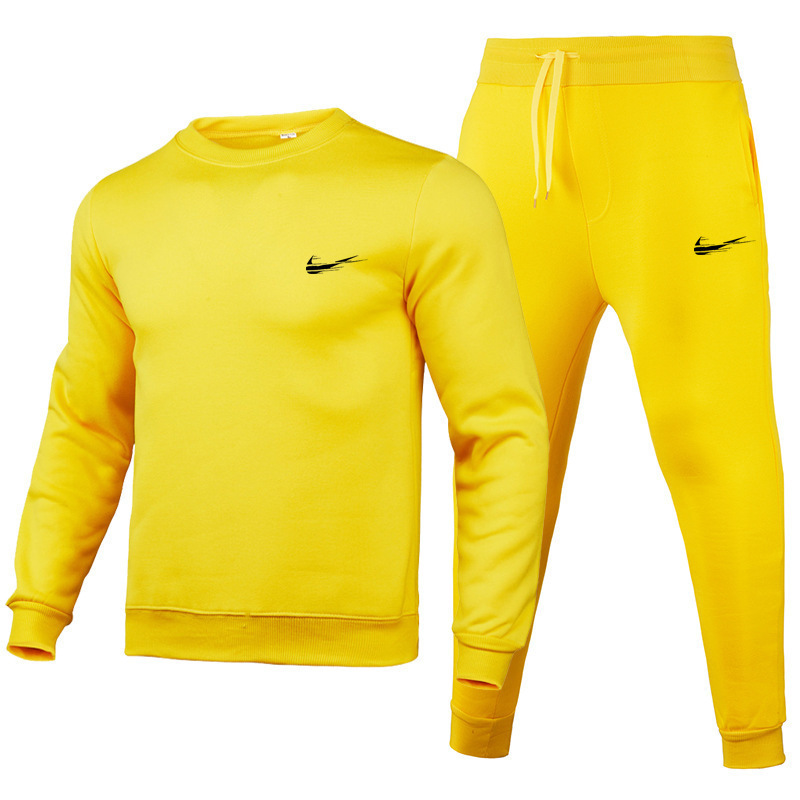 국경 간 새로운 패션 제조 업체 도매 아마존 남성 라운드 넥 스포츠 레저 패션 단색 인쇄 스웨터 세트 남성