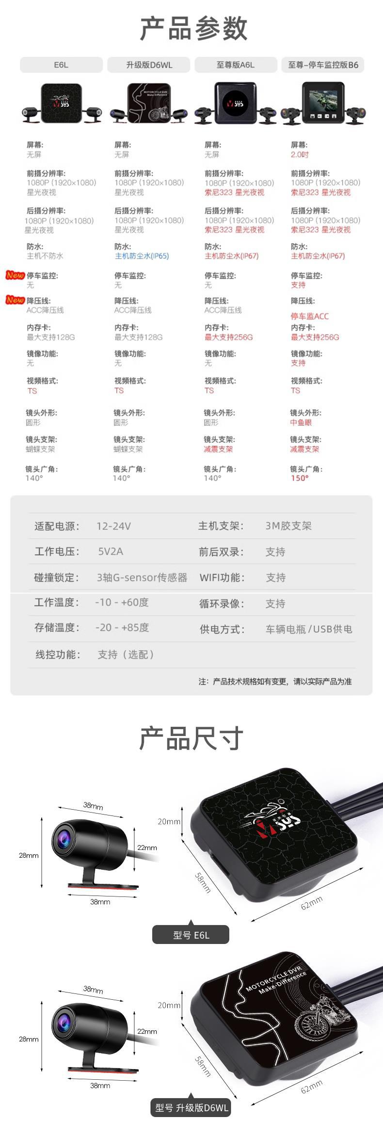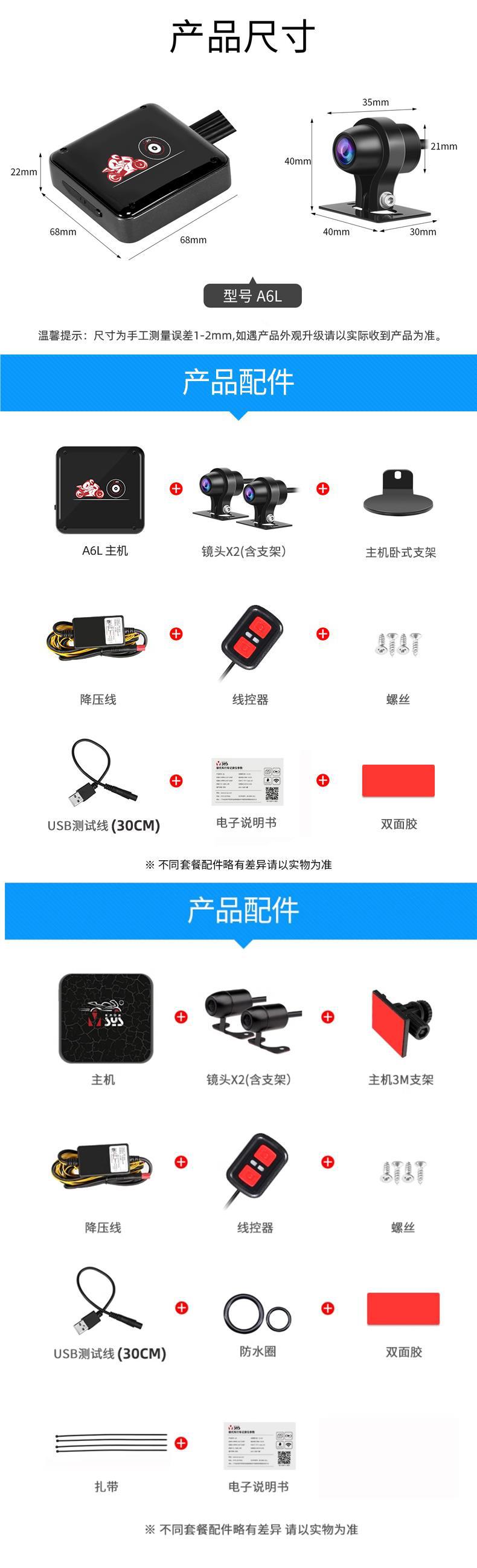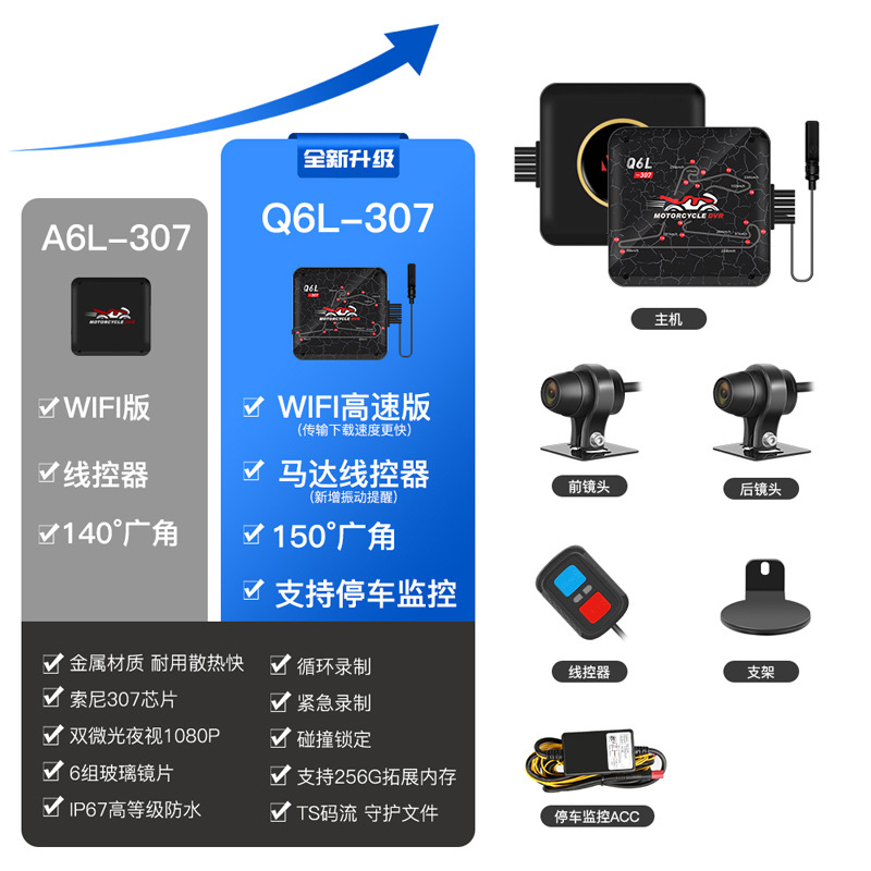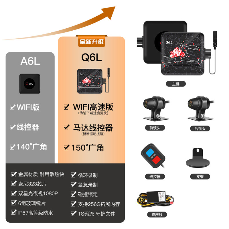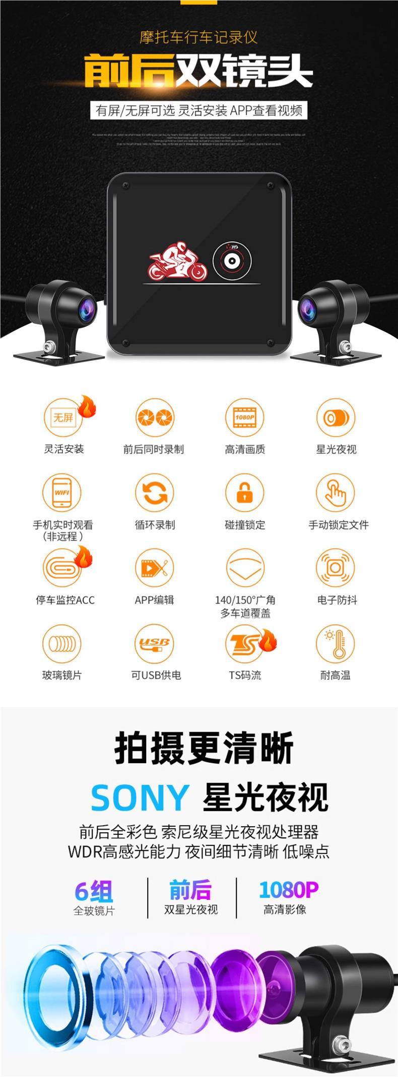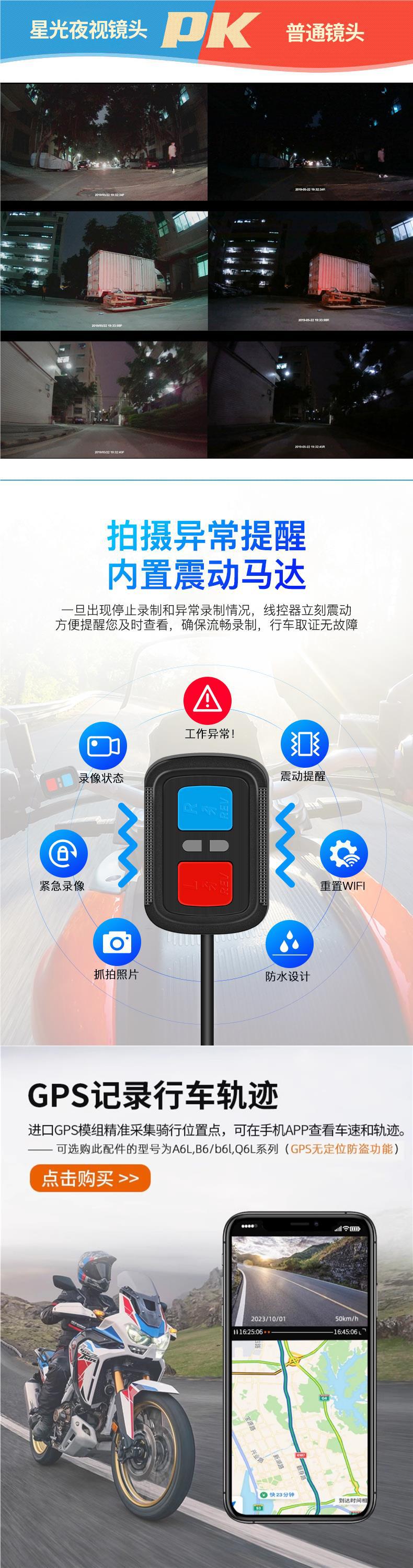 오토바이 주행 레코더 전면 및 후면 듀얼 카메라 나이트 비전 소니 페달 전기 승마 A6L스토어 가기
