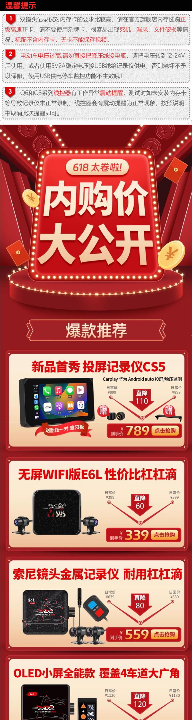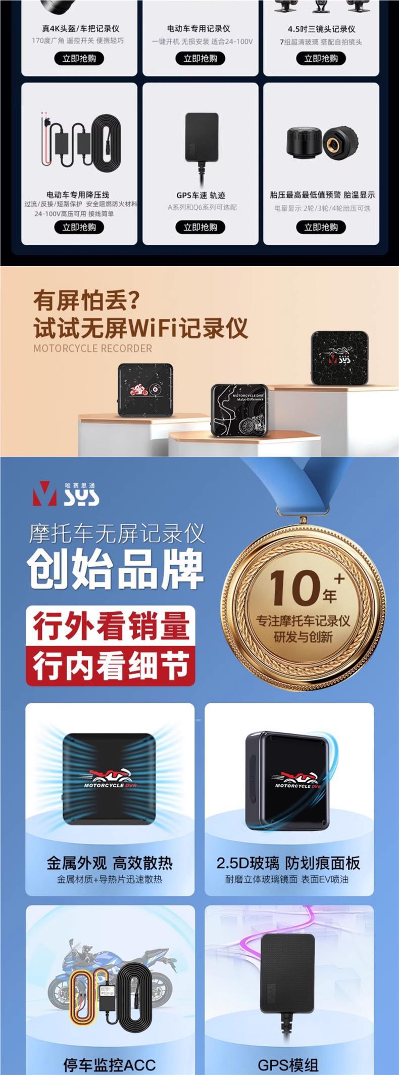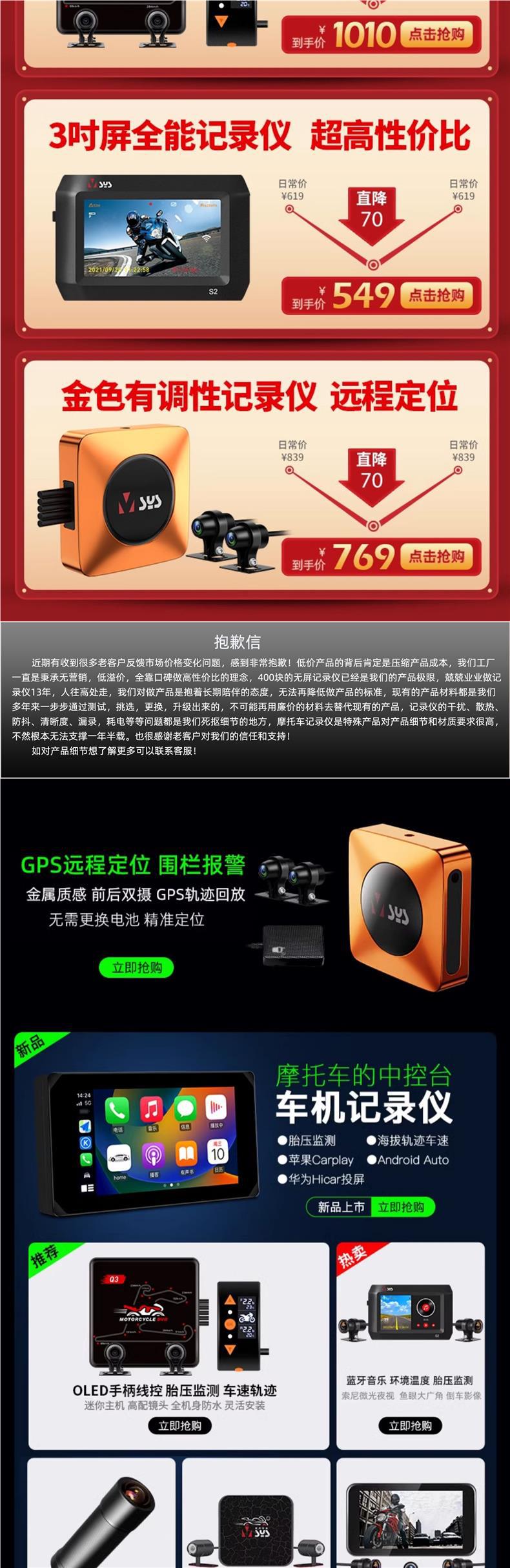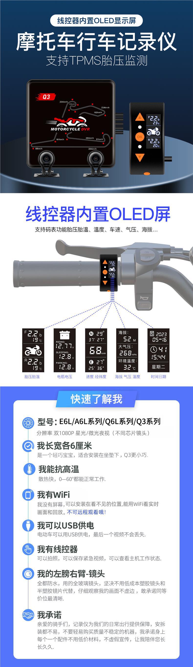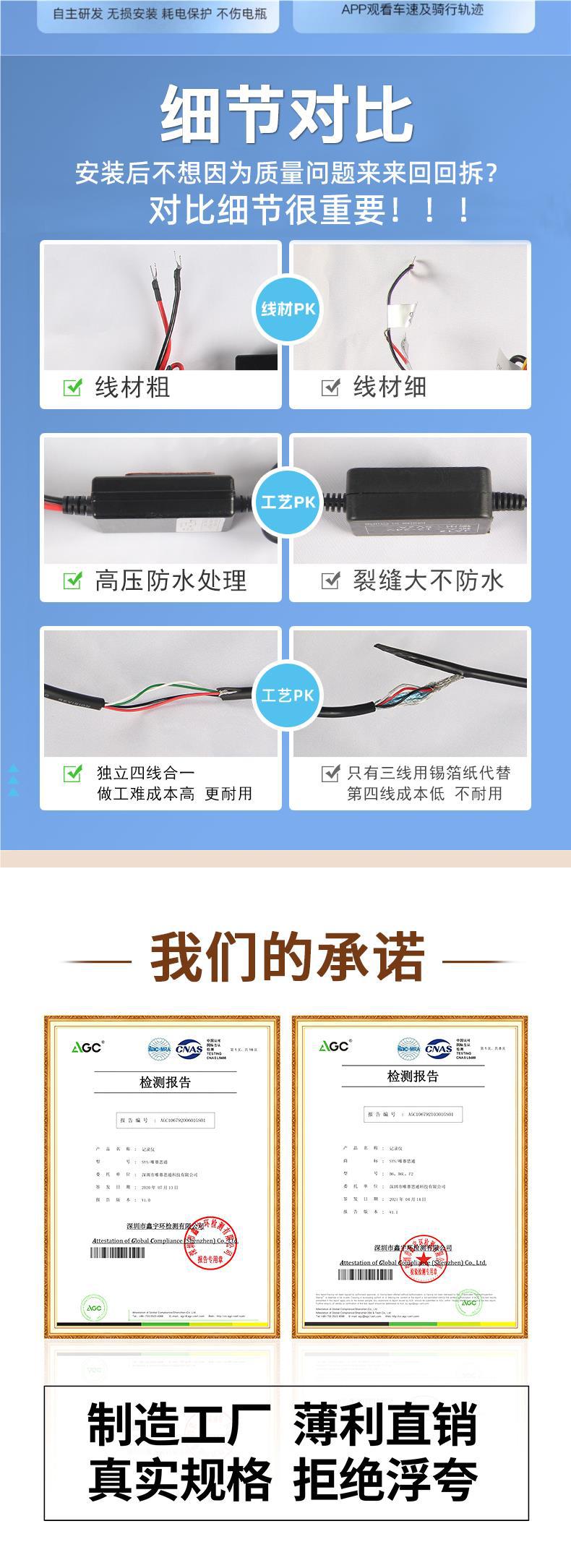 오토바이 주행 레코더 전면 및 후면 듀얼 카메라 나이트 비전 소니 페달 전기 승마 A6L스토어 가기