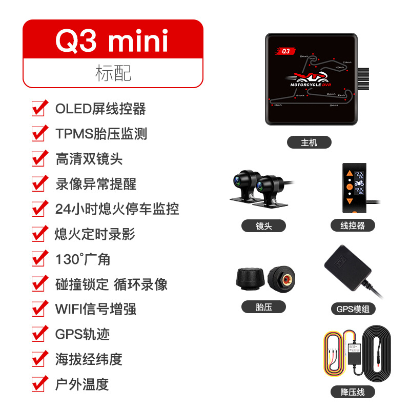 • [3세대 신제품] Q3mini 메탈 호스트 + 64G 카드 스크린 타이어 공기압 차량 속도 GPS 없음