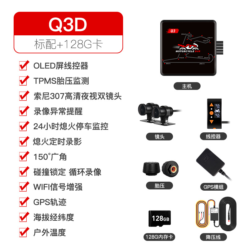 • [3세대 신제품] Q3D-307 메탈 호스트 + 128G 카드 스크린리스 타이어 공기압 속도 GP
