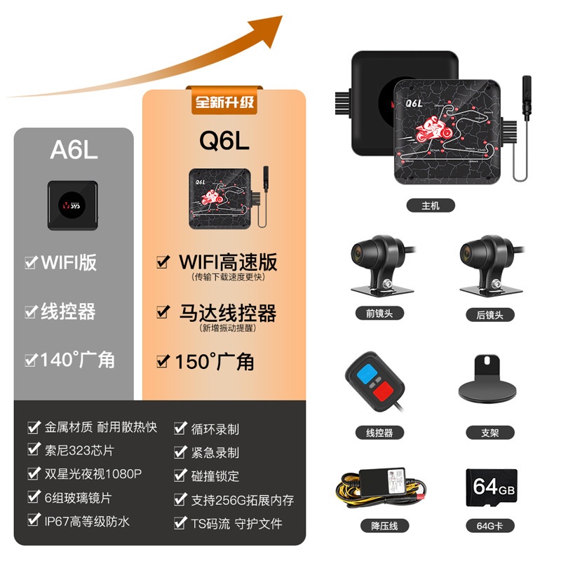• 1세대 A6L 금속 호스트 + 64G 고속 카드(듀얼 Sony 323 1080P 고급 보호)