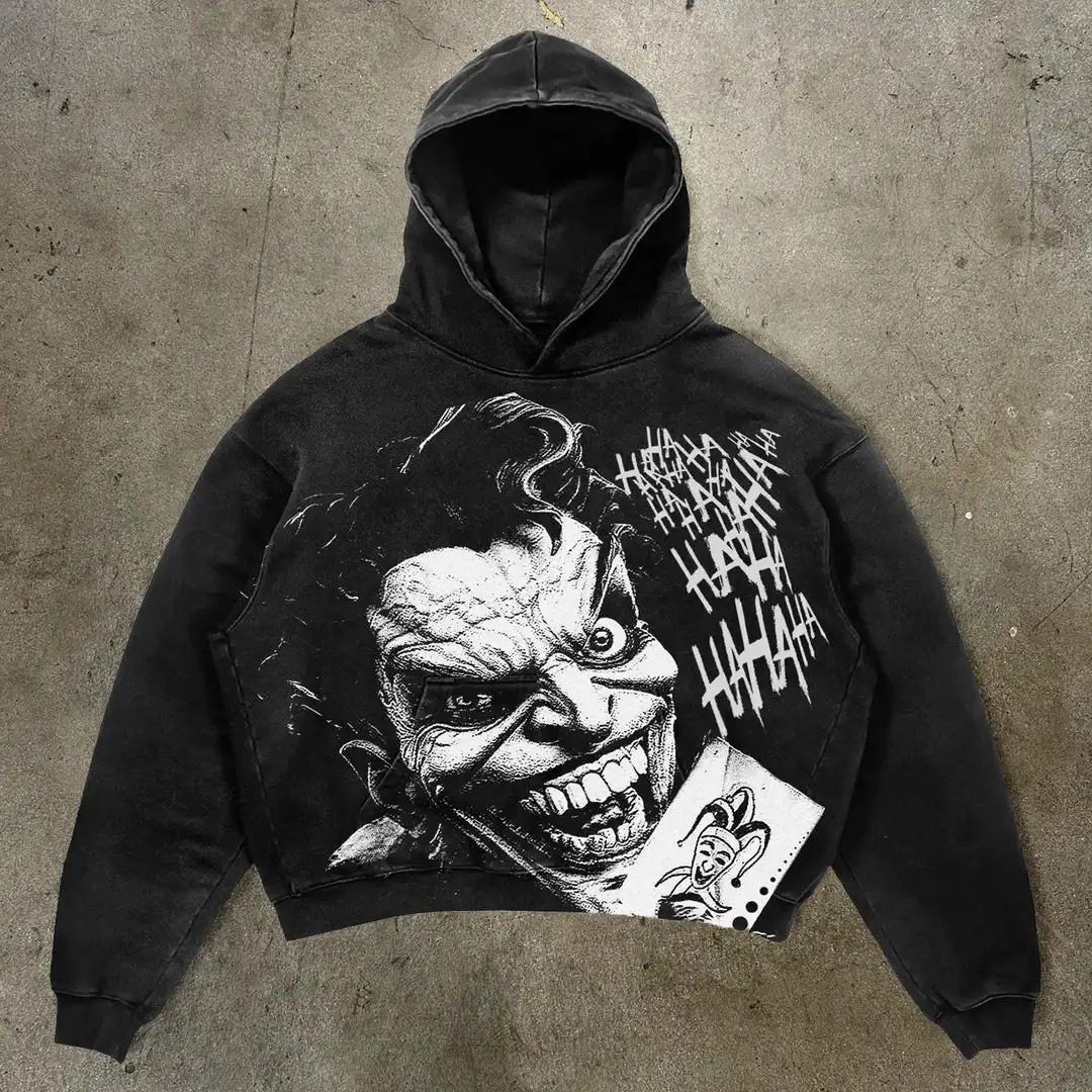 2024 스웨트 셔츠 거리 패션 브랜드 해골 후드 스웨트 3D 디지털 인쇄 캐주얼 루즈 후드 스웨트 셔츠 남성스토어 가기