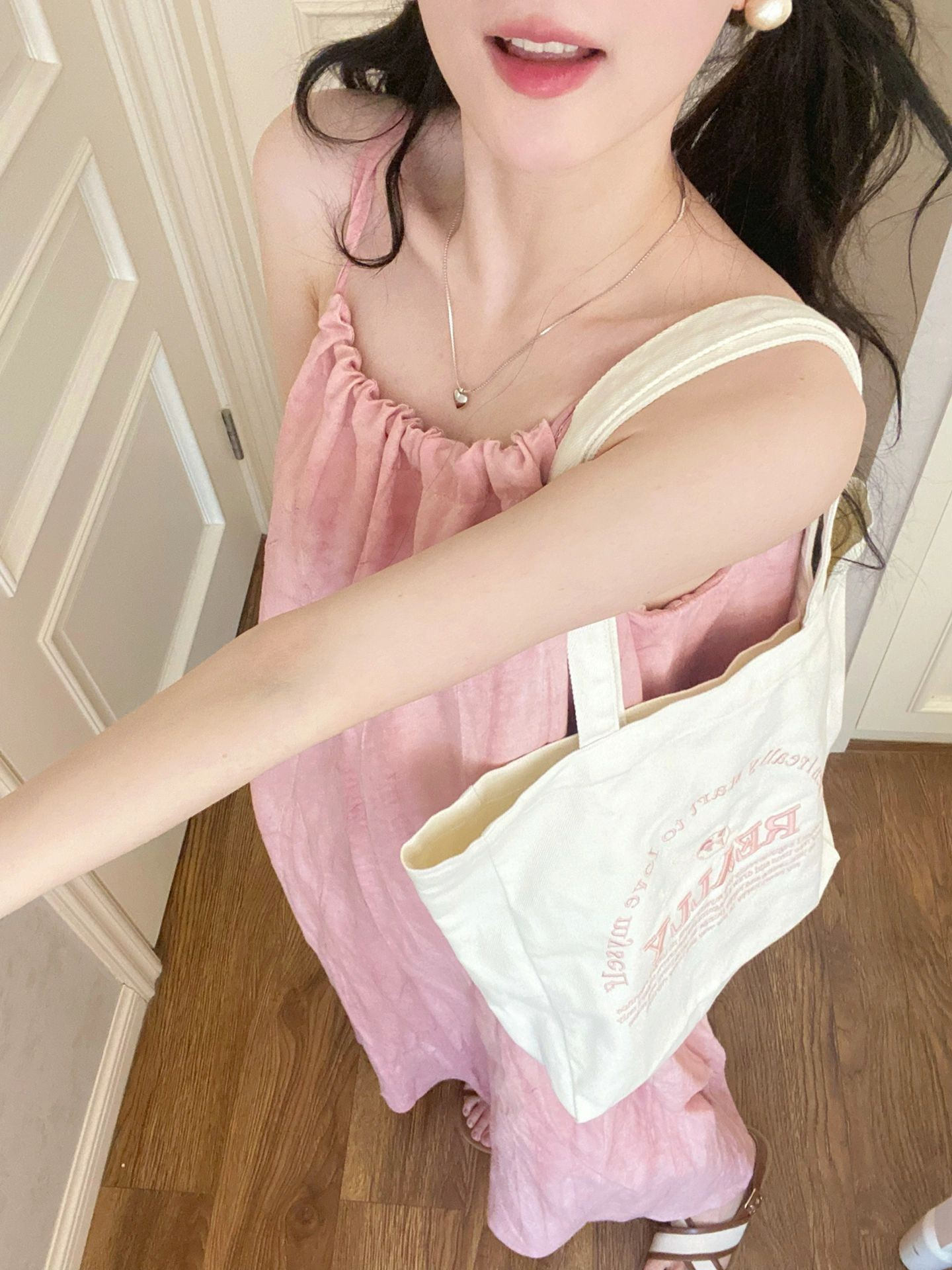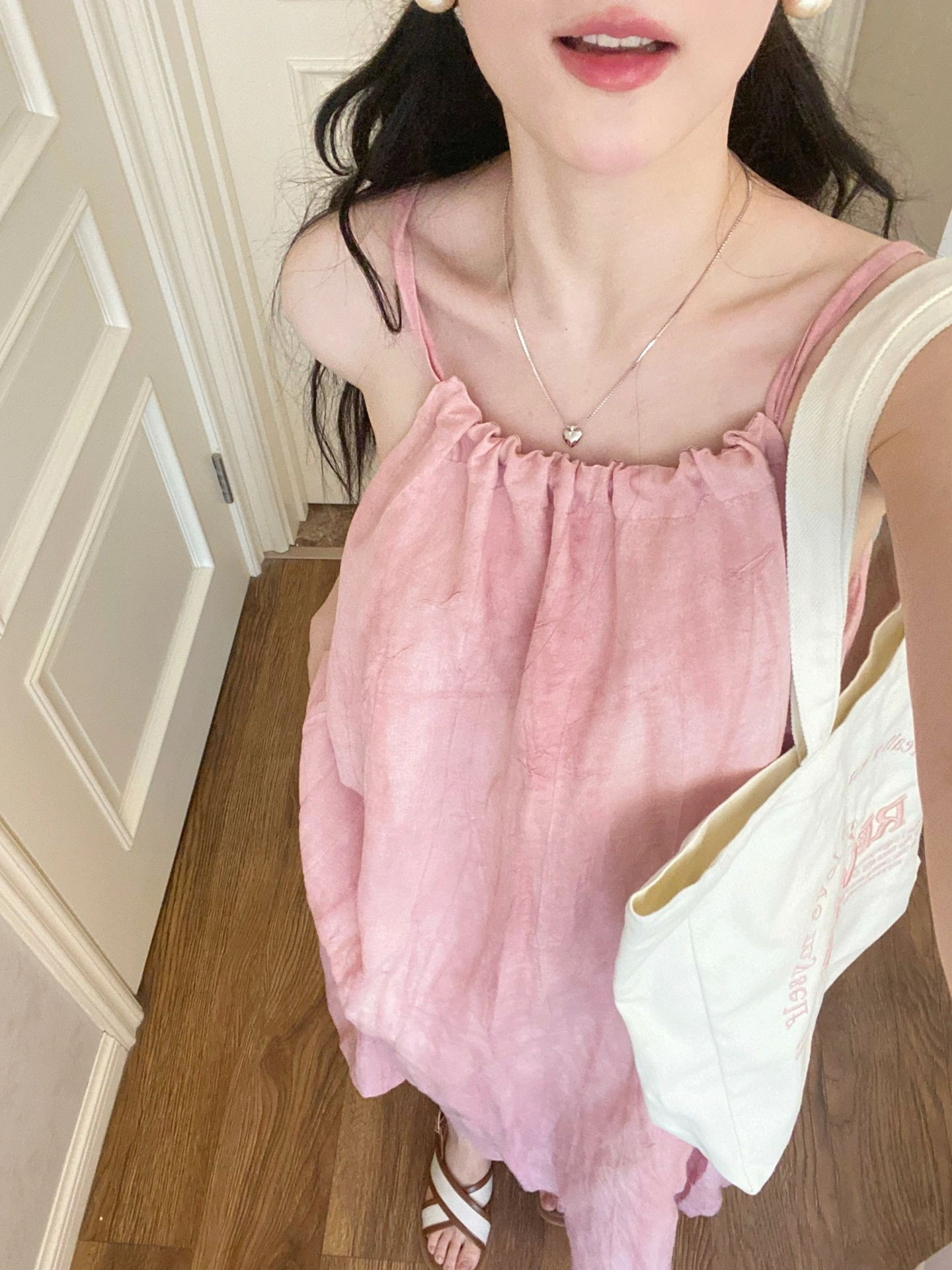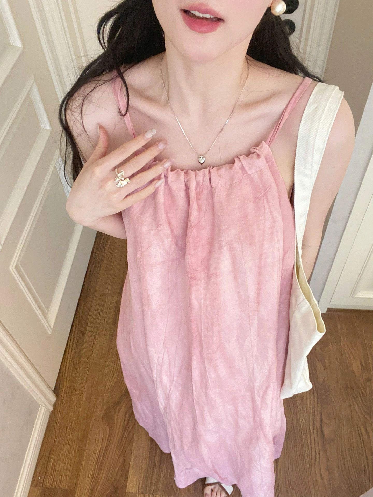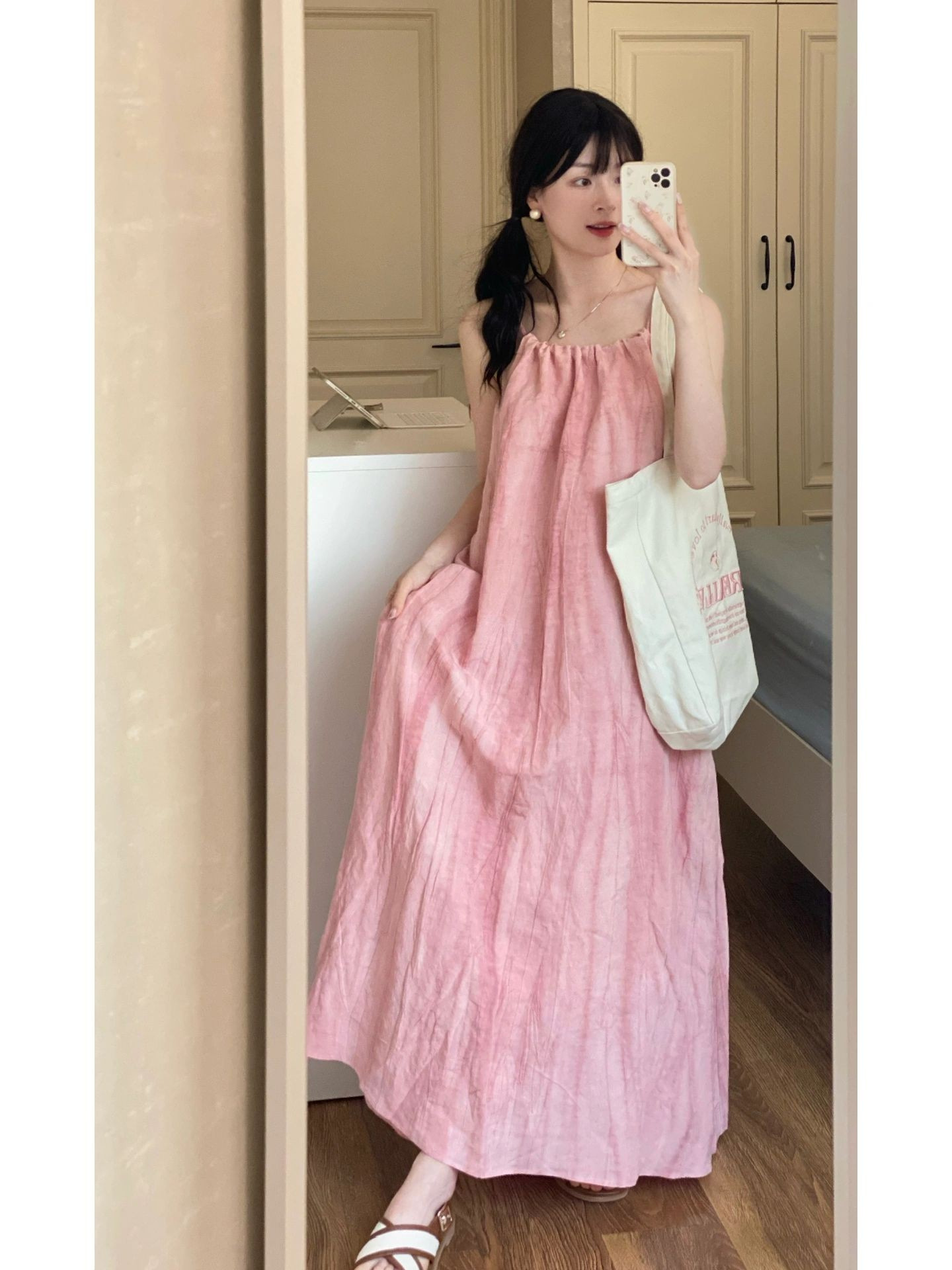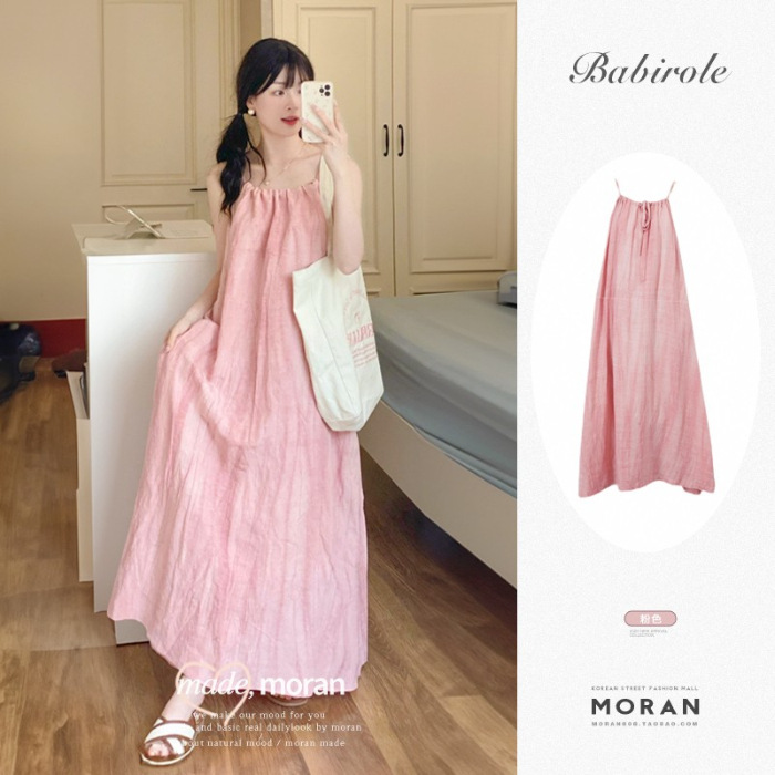 핑크 슬링 롱 원피스 여성의 여름 새로운 해변 휴가 해변 원피스 목 디자인 틈새 원피스스토어 가기