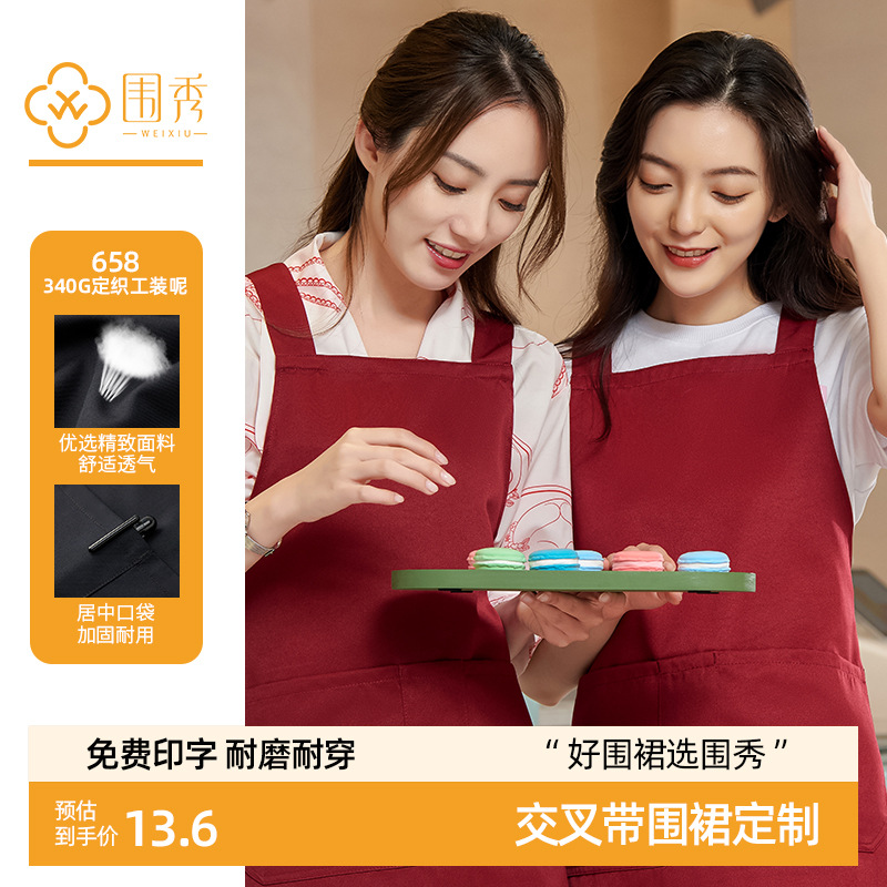 앞치마 맞춤 작업복 방수 여성 유행 가정용 주방 성인 확장 스트랩 내마모성 인쇄 자수 로고스토어 가기