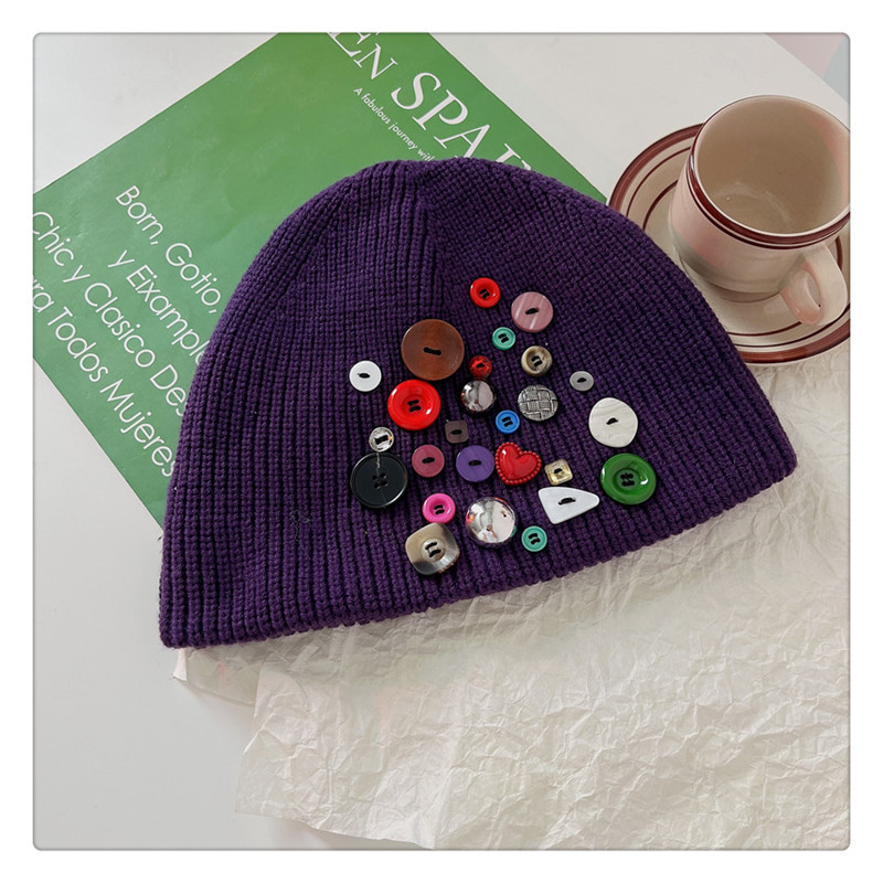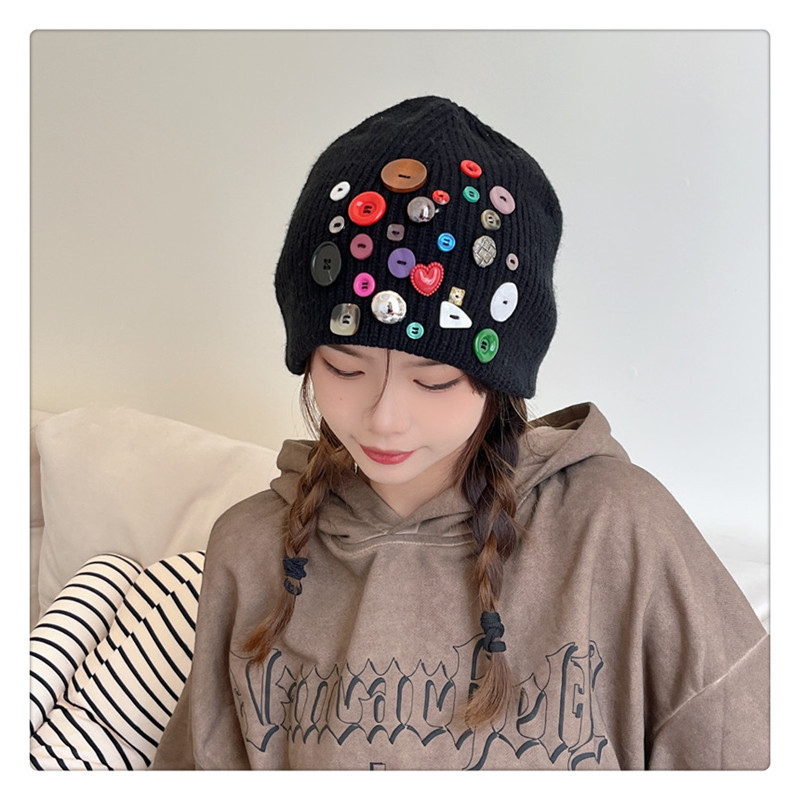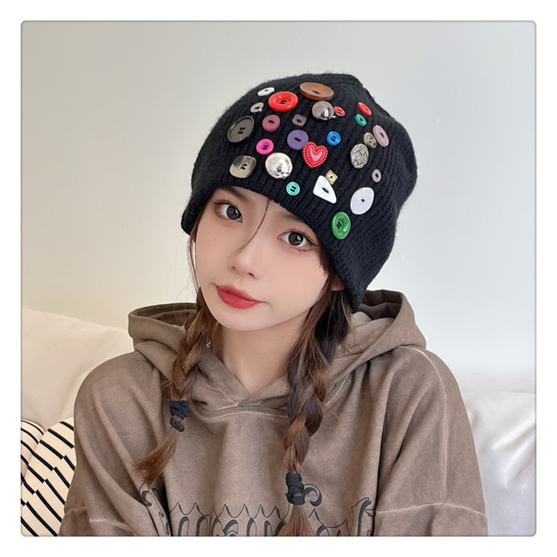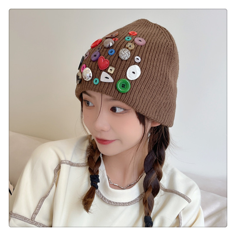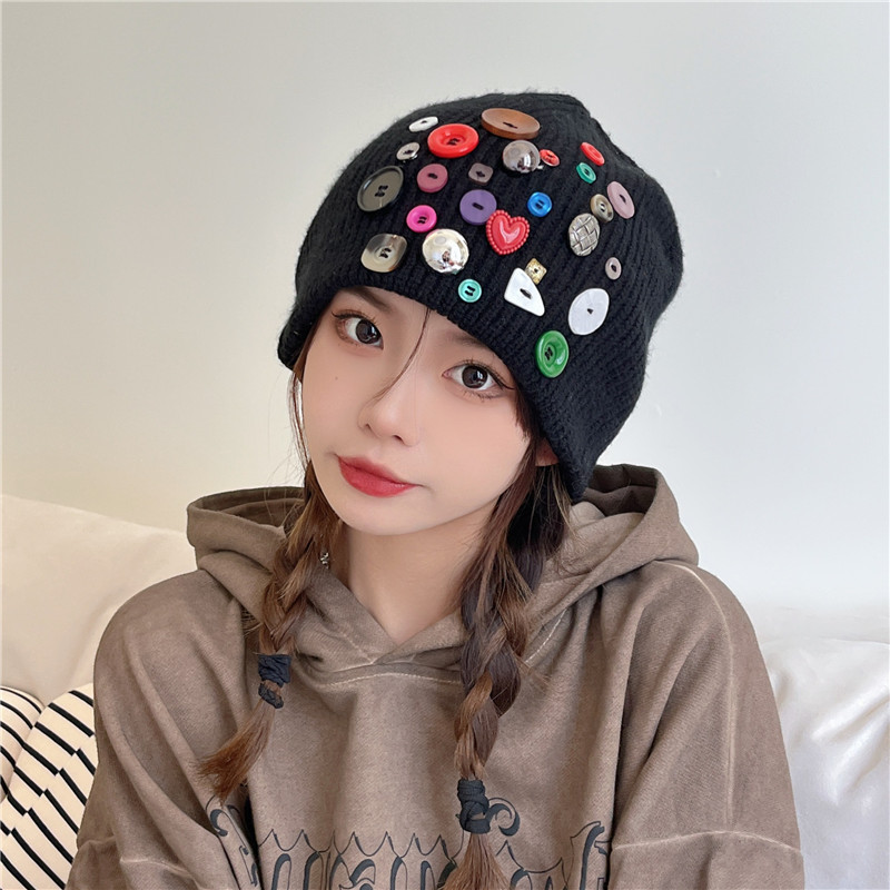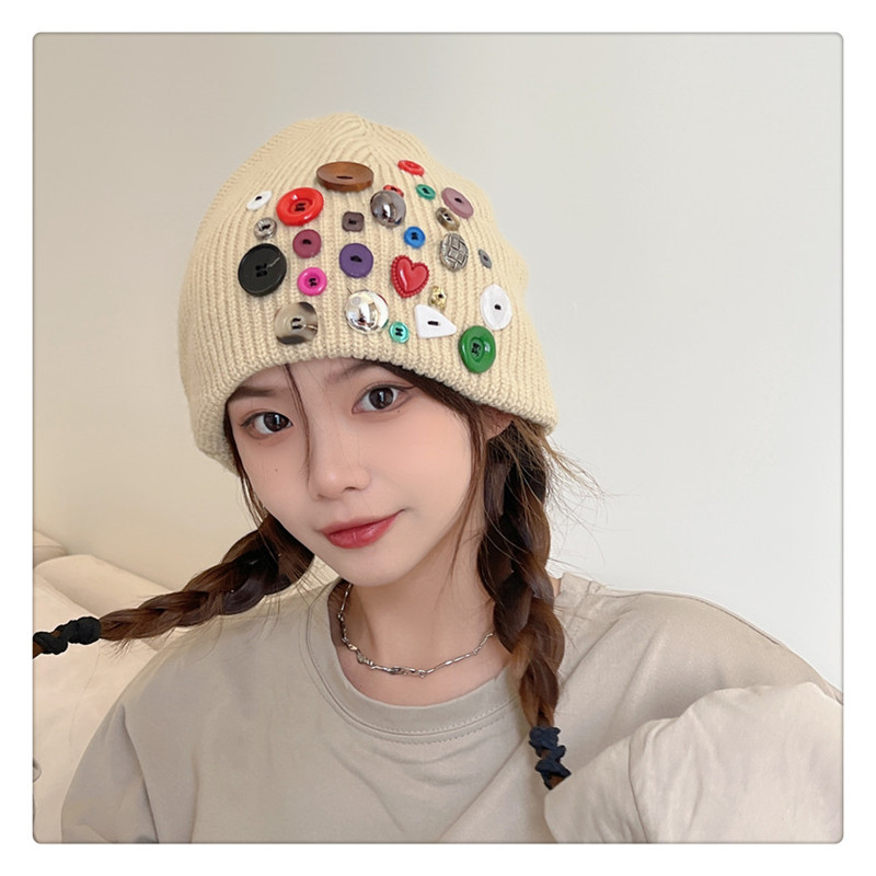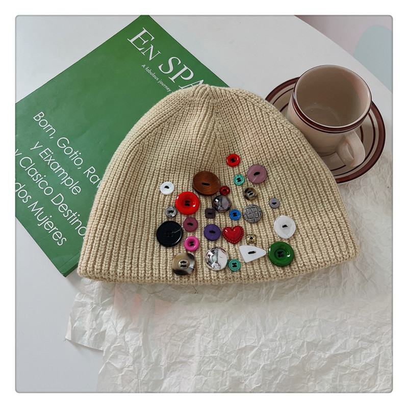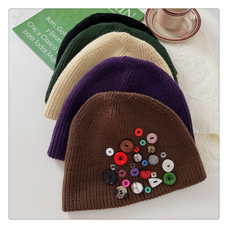 틈새 디자인 다채로운 버튼 울 모자 어린이의 가을 및 겨울 맞춤형 힙 모자 얼굴 작은 니트 모자 차가운 모자스토어 가기