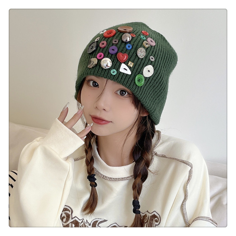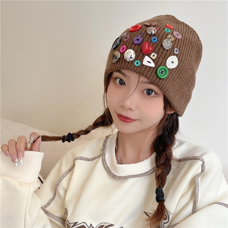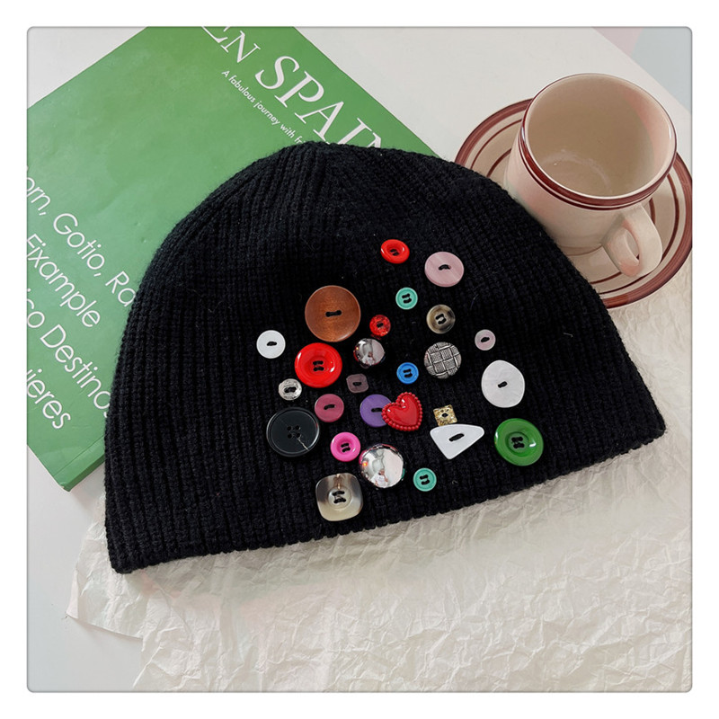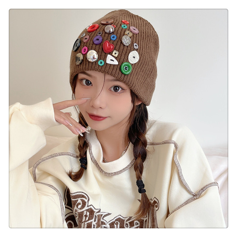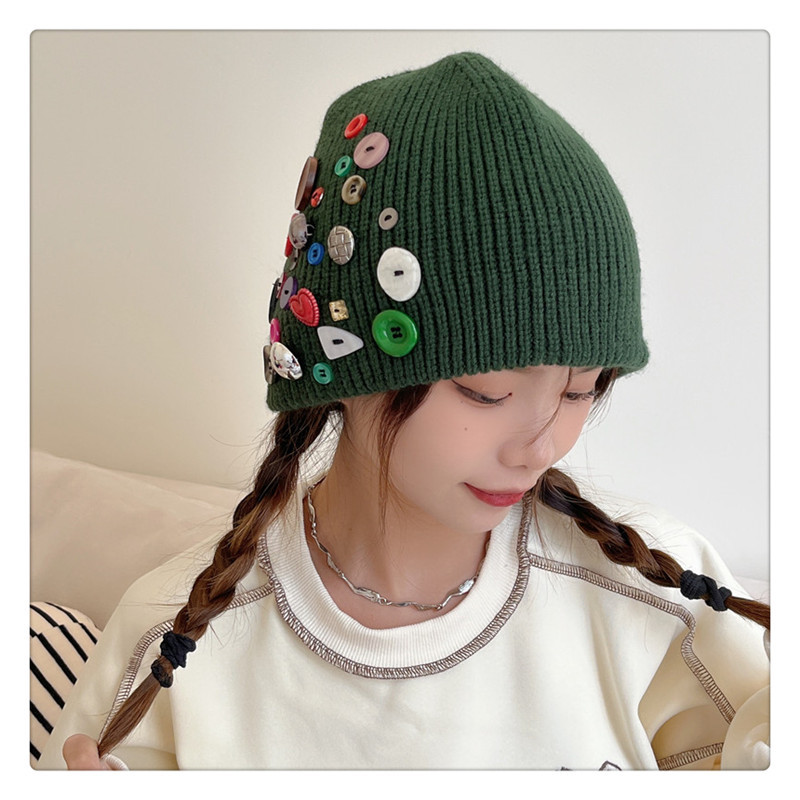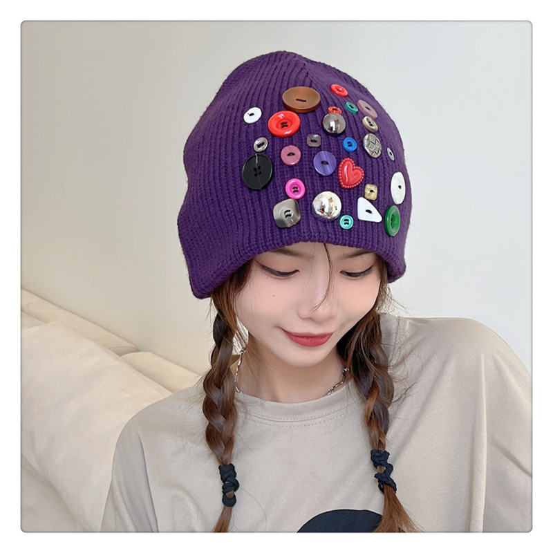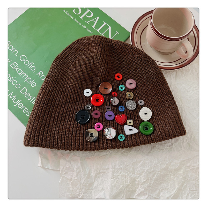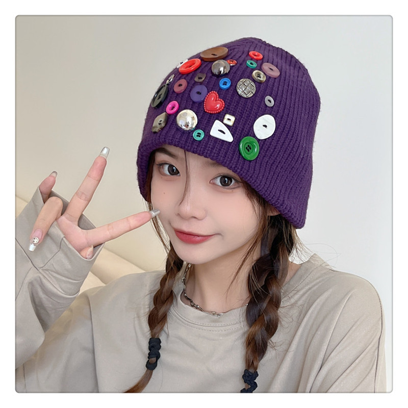 틈새 디자인 다채로운 버튼 울 모자 어린이의 가을 및 겨울 맞춤형 힙 모자 얼굴 작은 니트 모자 차가운 모자스토어 가기
