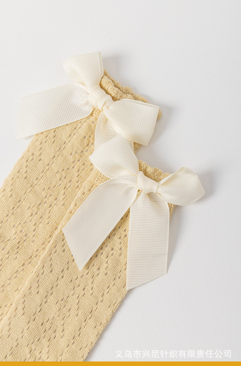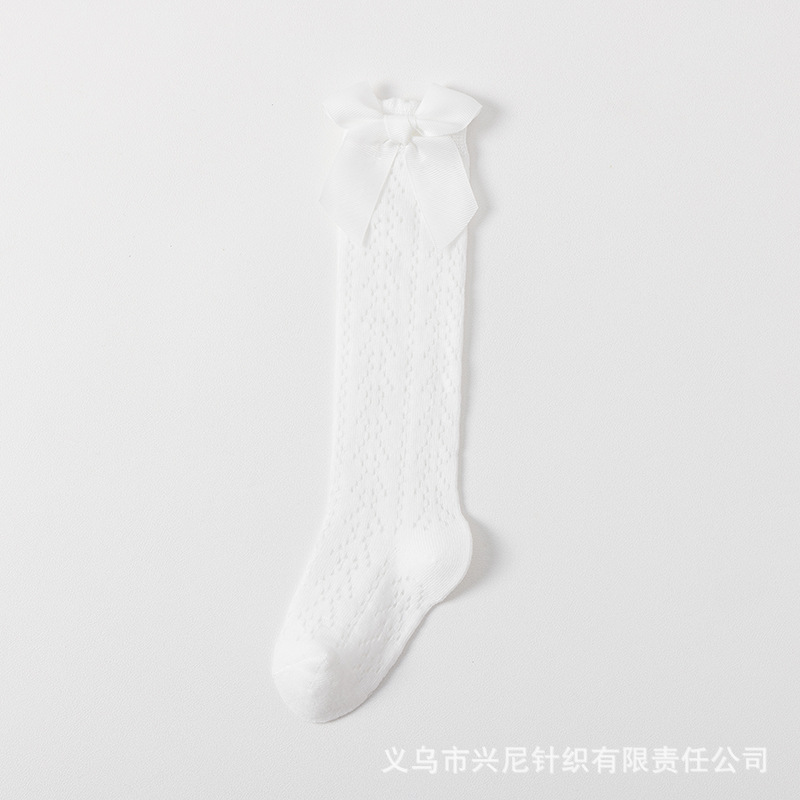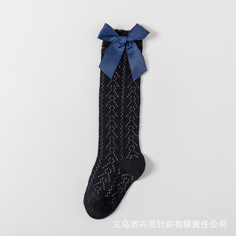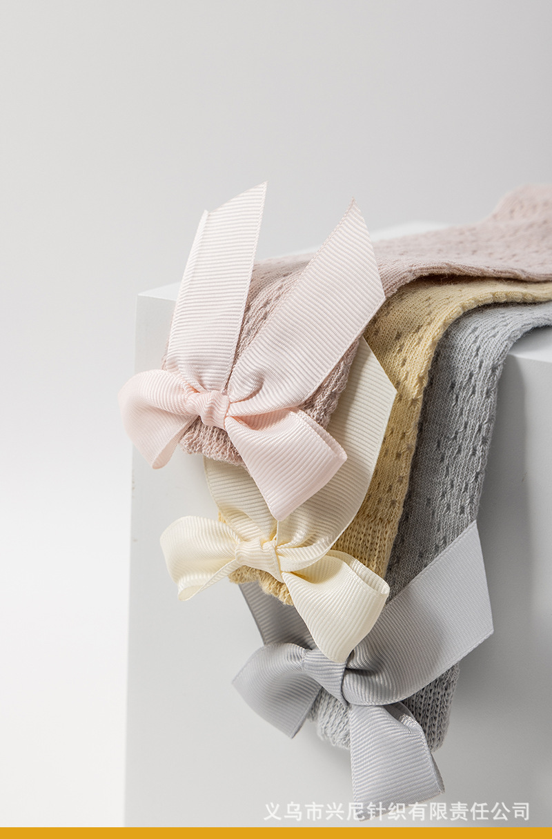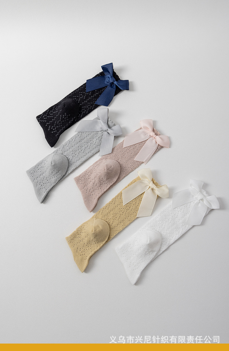 24 스페인 스타일 어린이 양말 얇은 메쉬 이동 중간 튜브 양말 소녀 큰 활 공주 아기 양말