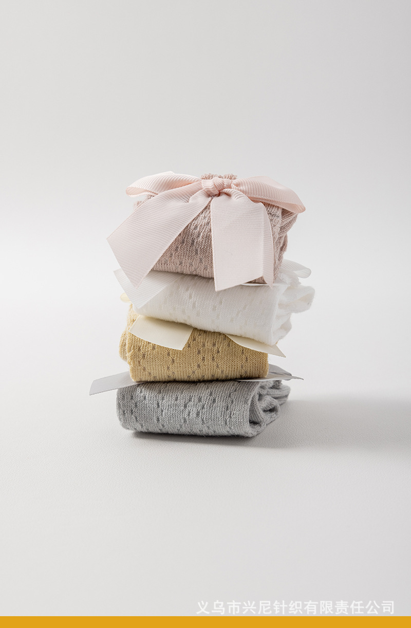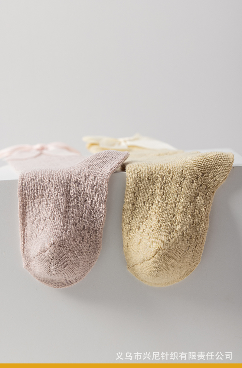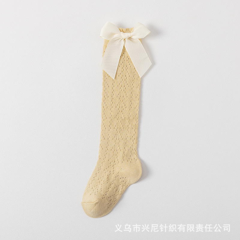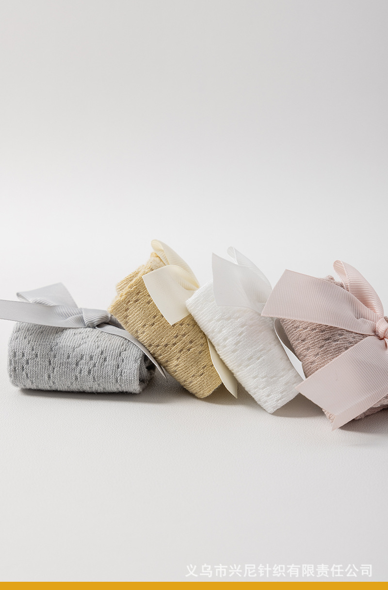 24 스페인 스타일 어린이 양말 얇은 메쉬 이동 중간 튜브 양말 소녀 큰 활 공주 아기 양말