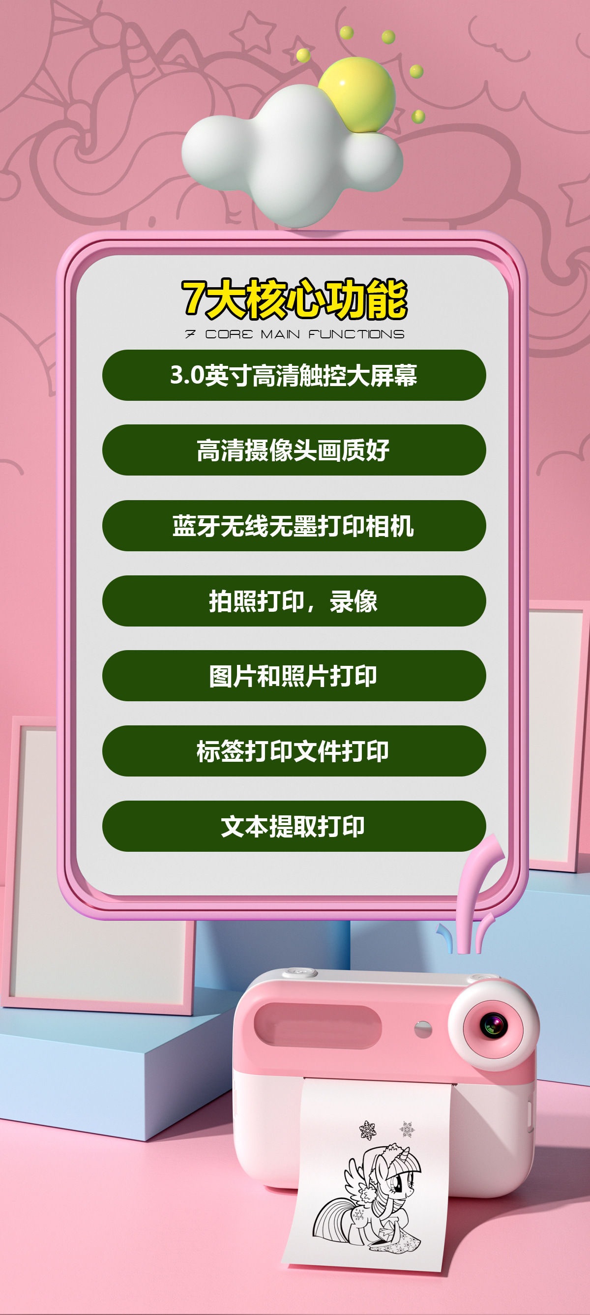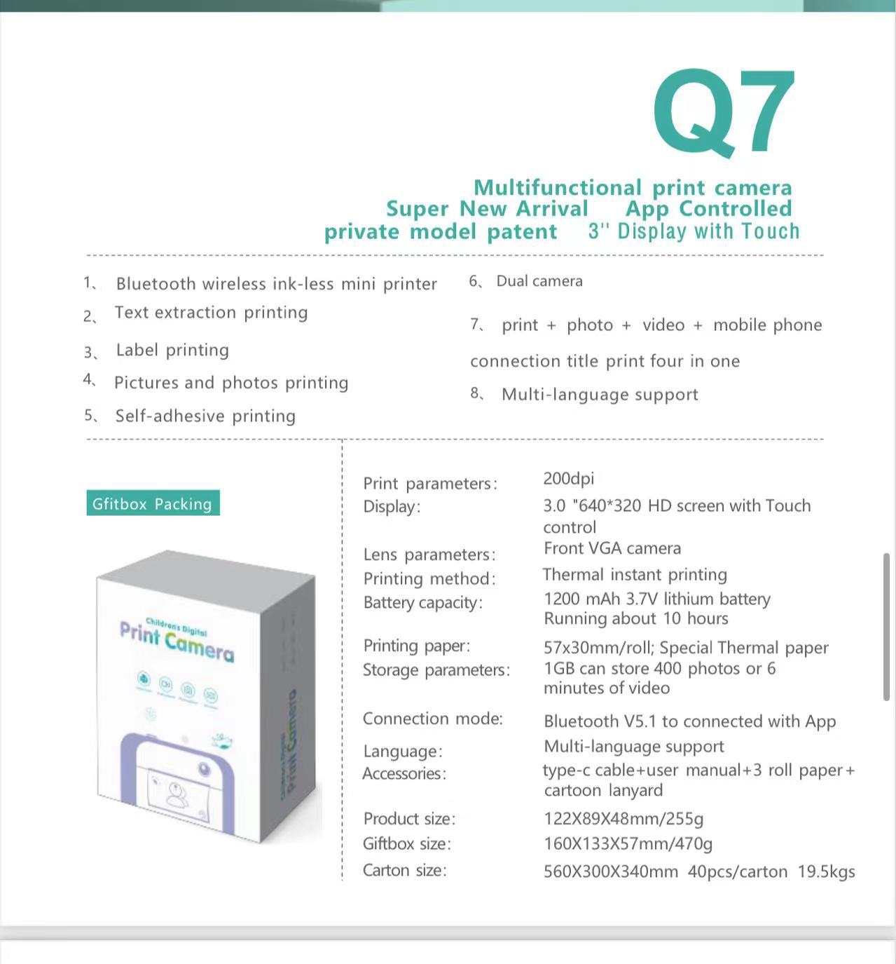 Q7 터치 스크린 인쇄 카메라 HD 대형 스크린 3.0 인치 어린이 디지털 카메라 귀여운 미니 폰더