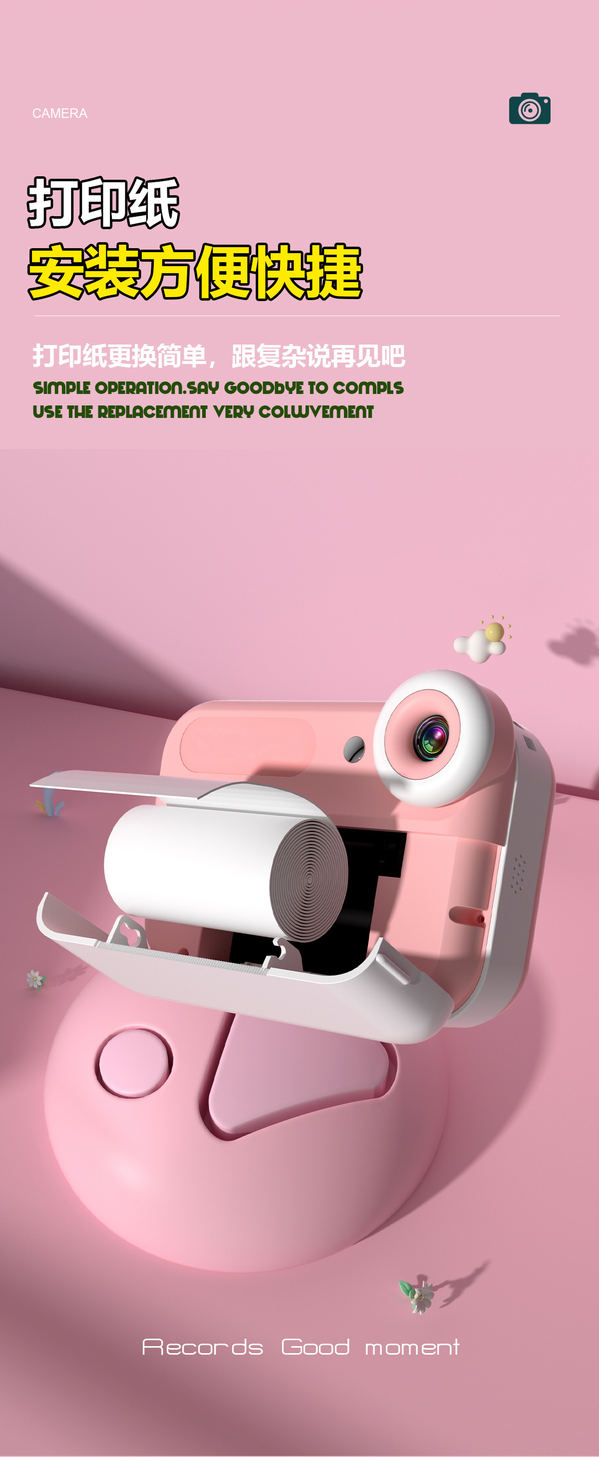 • 핑크 카메라 프린트 롤 종이 * 3 끈 [메모리 없음]