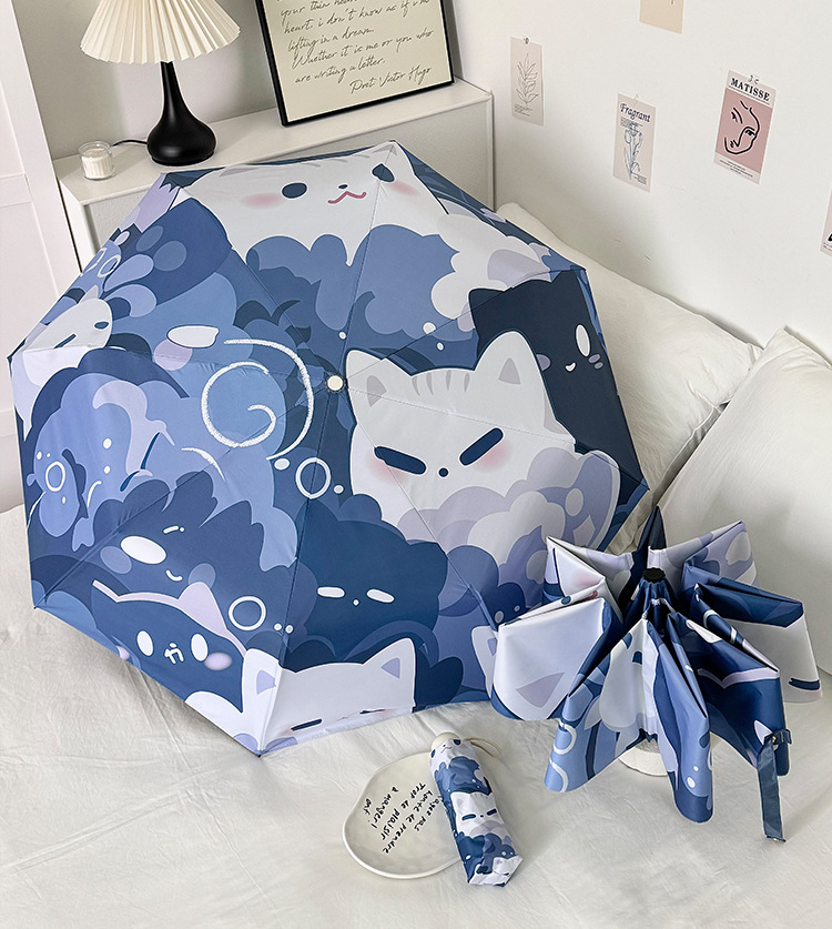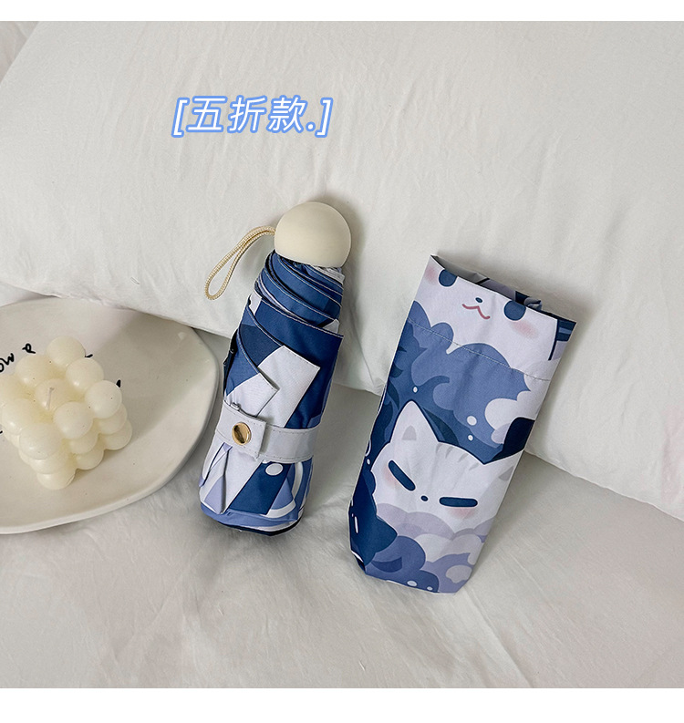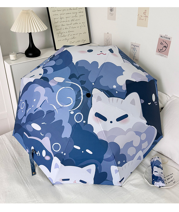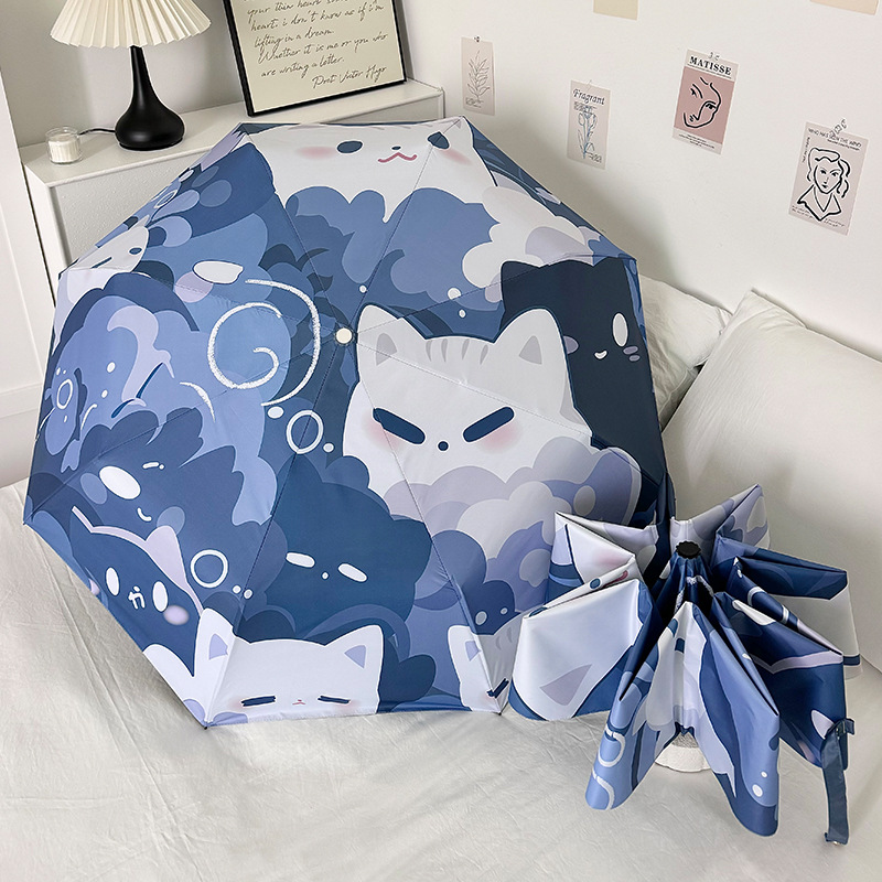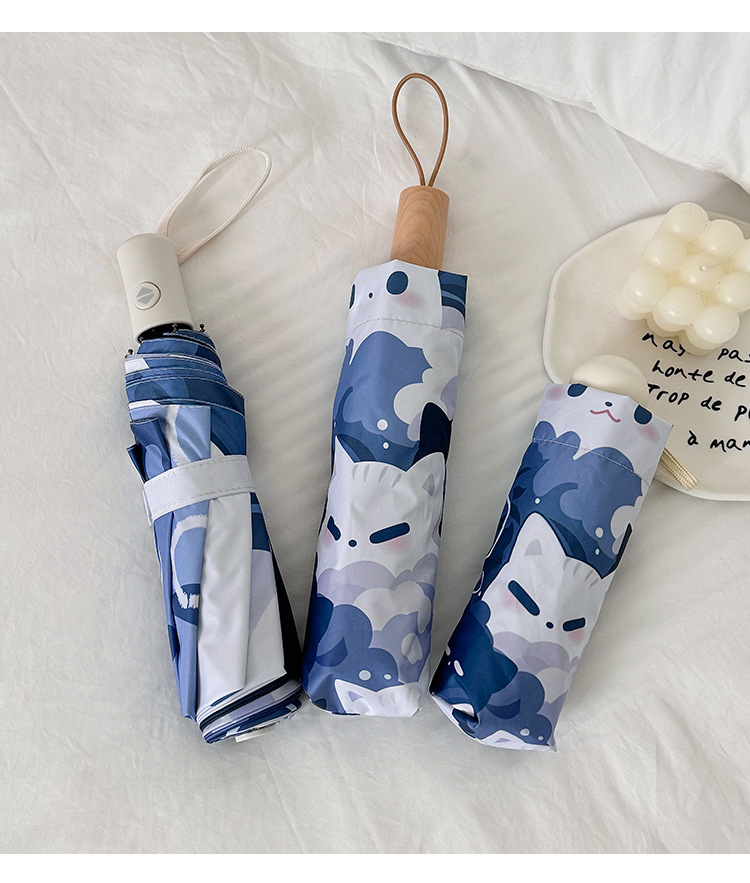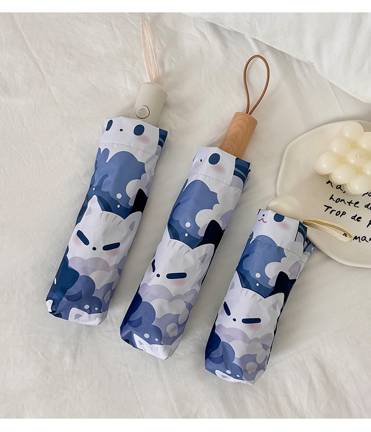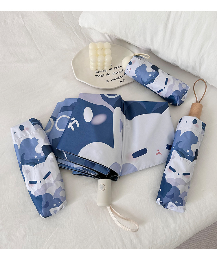 귀여운 고양이 만화 접히는 우산 휴대용 5 배 선 스크린 UV 보호 완전 자동 확장 이중 목적 우산