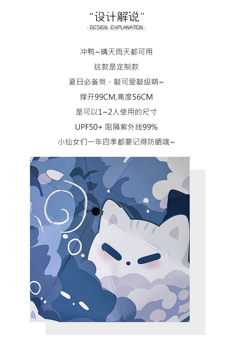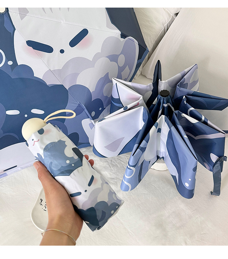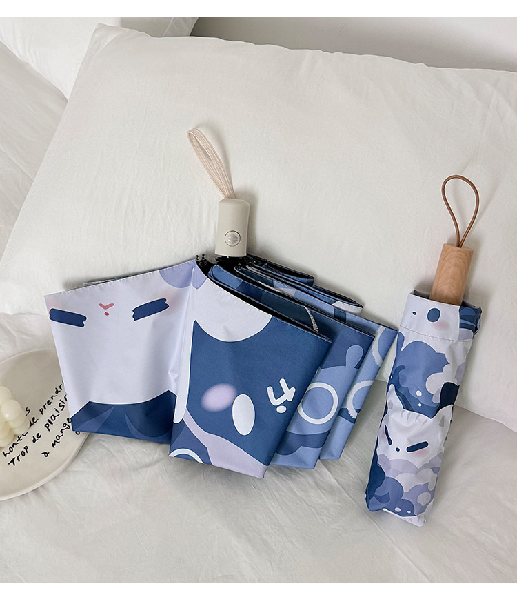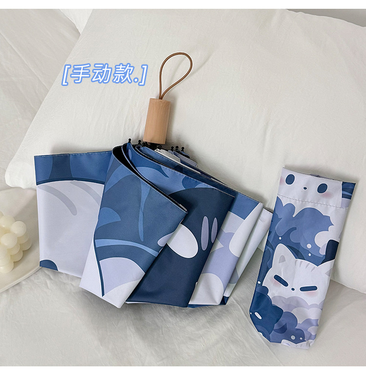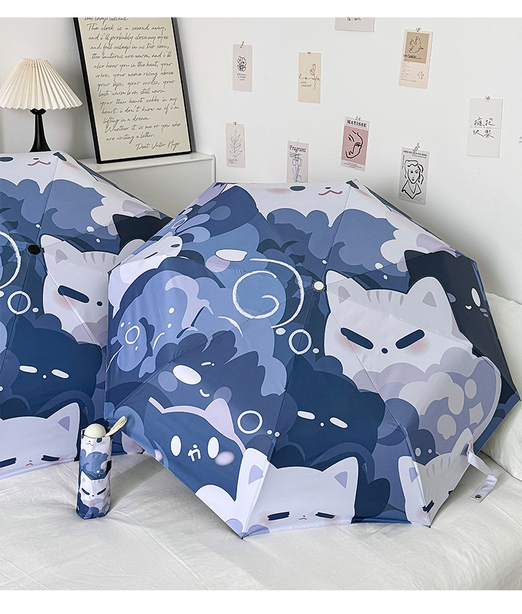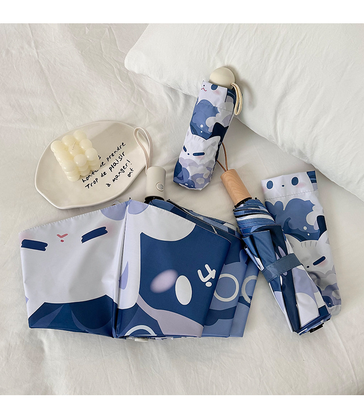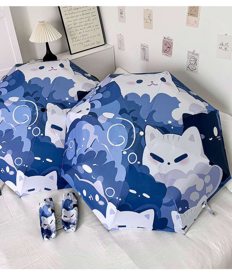 귀여운 고양이 만화 접히는 우산 휴대용 5 배 선 스크린 UV 보호 완전 자동 확장 이중 목적 우산