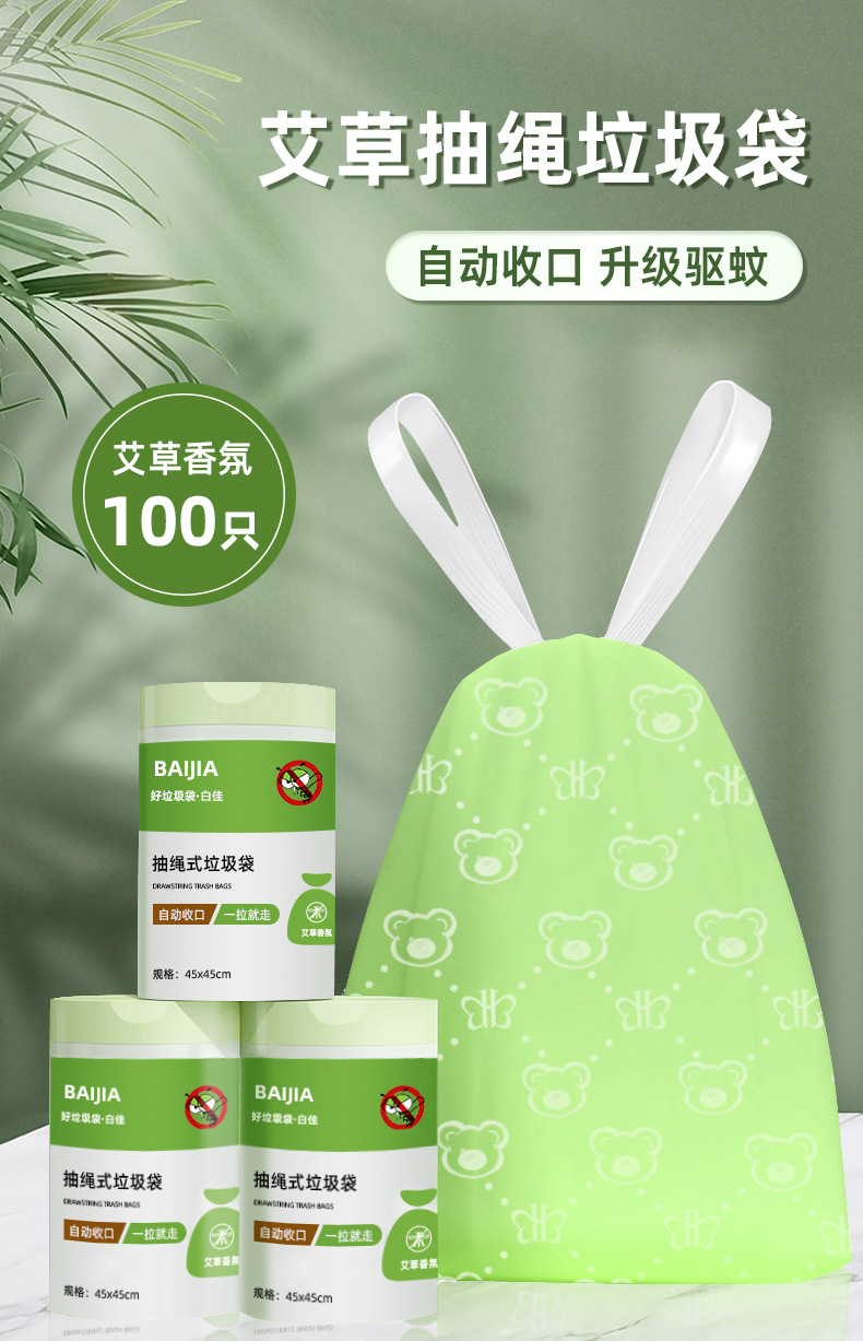 쑥 모기 퇴치 쓰레기 봉투 두껍게 된 가정용 주방 비닐 봉지 자동 폐쇄 탈취제 끈적 쓰레기 봉투