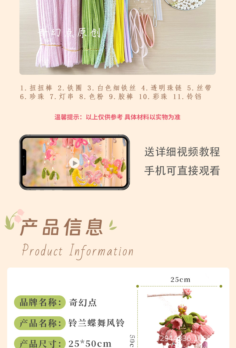 BFF 종족의 백합 조명 윈드 벨 교수형 장식품 생일 선물 트위스트 바 수제 DIY 소재 가방 랜턴 조명스토어 가기