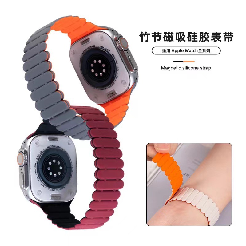 Apple s9ultra 1-9 세대 시계 스트랩에 적합 대나무 자기 실리콘 스트랩 iwatch apple 시계 스트랩스토어 가기