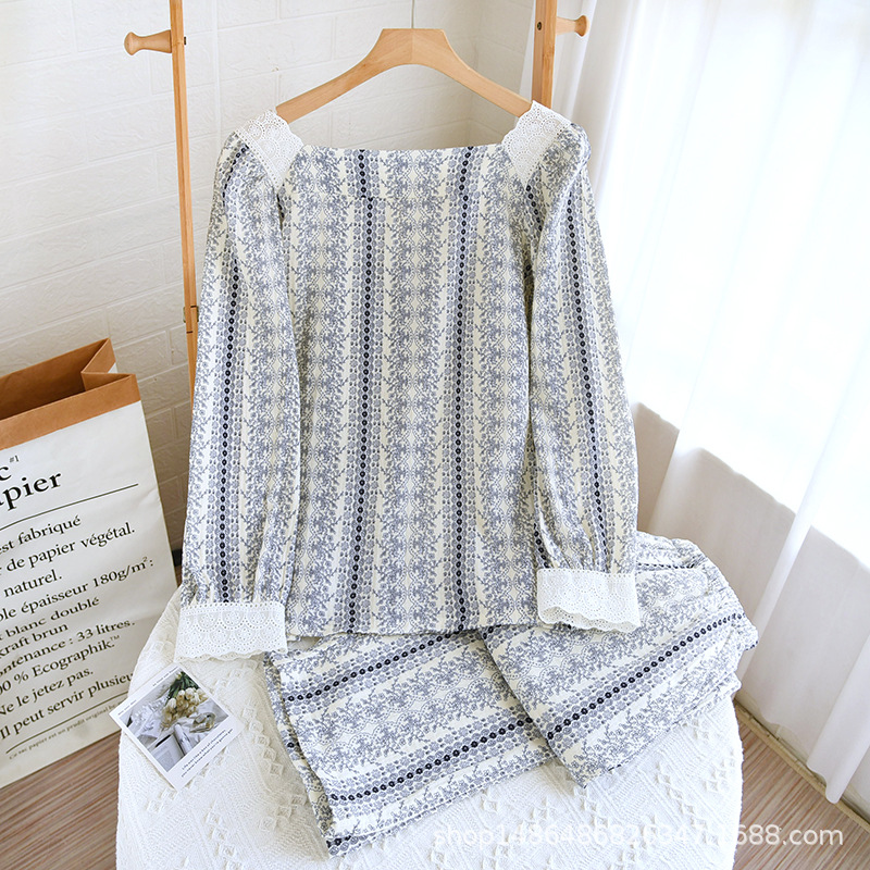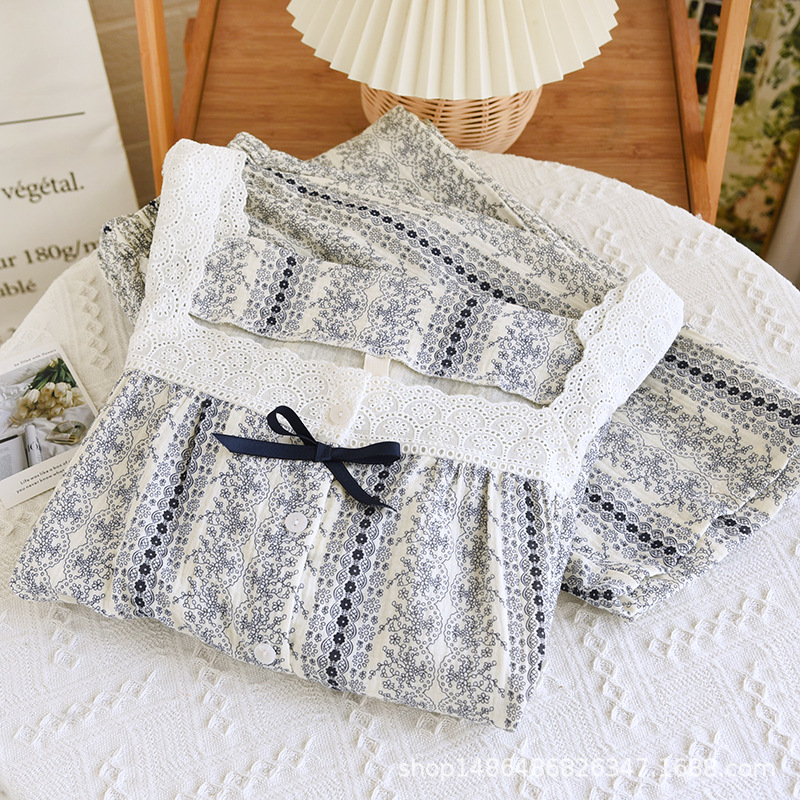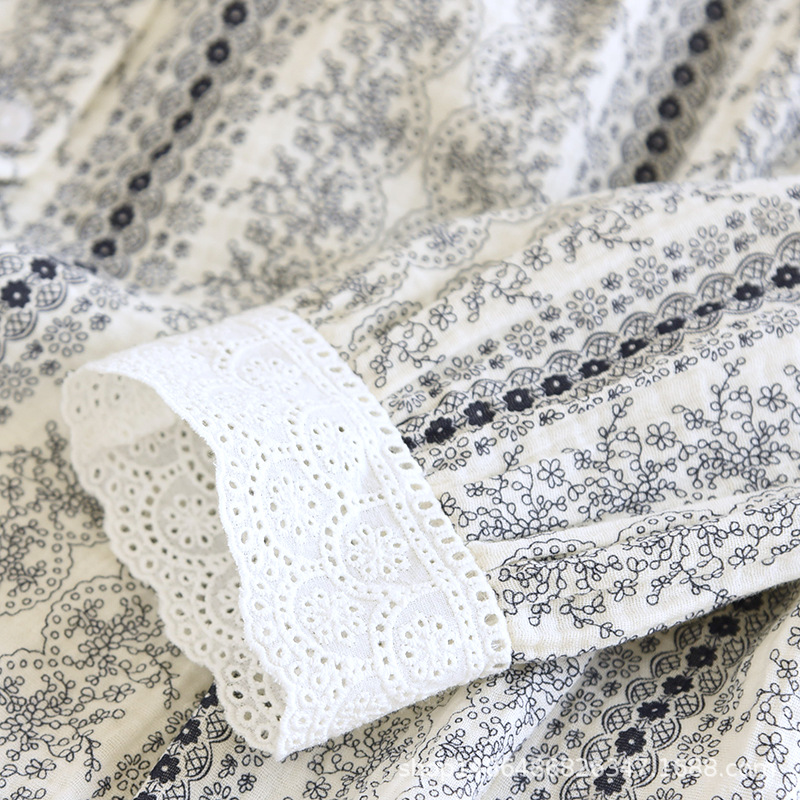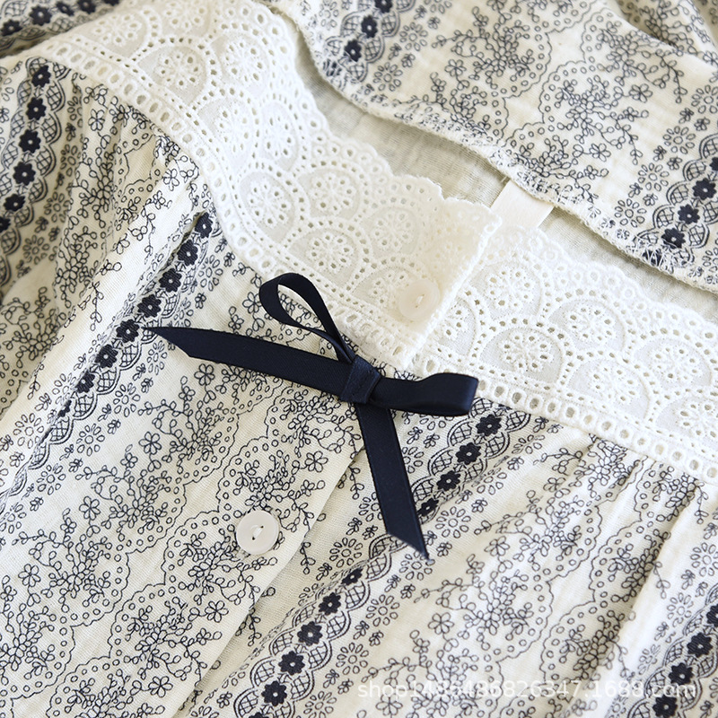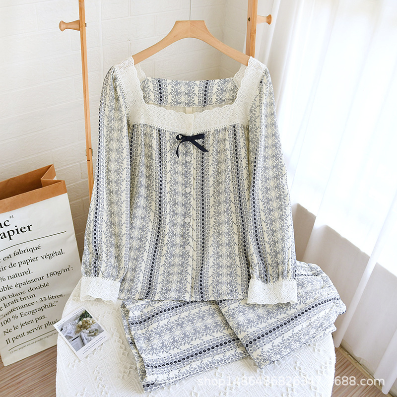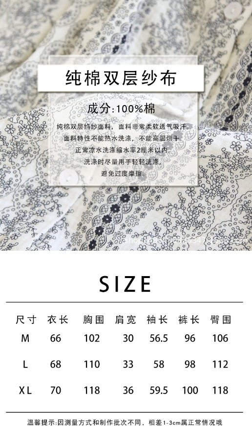 봄, 가을, 여름 신상 순면 거즈 긴팔 바지 여성 잠옷, 얇고 야외에서 착용 가능, 가정복, 헐렁하고 통기성 좋음스토어 가기