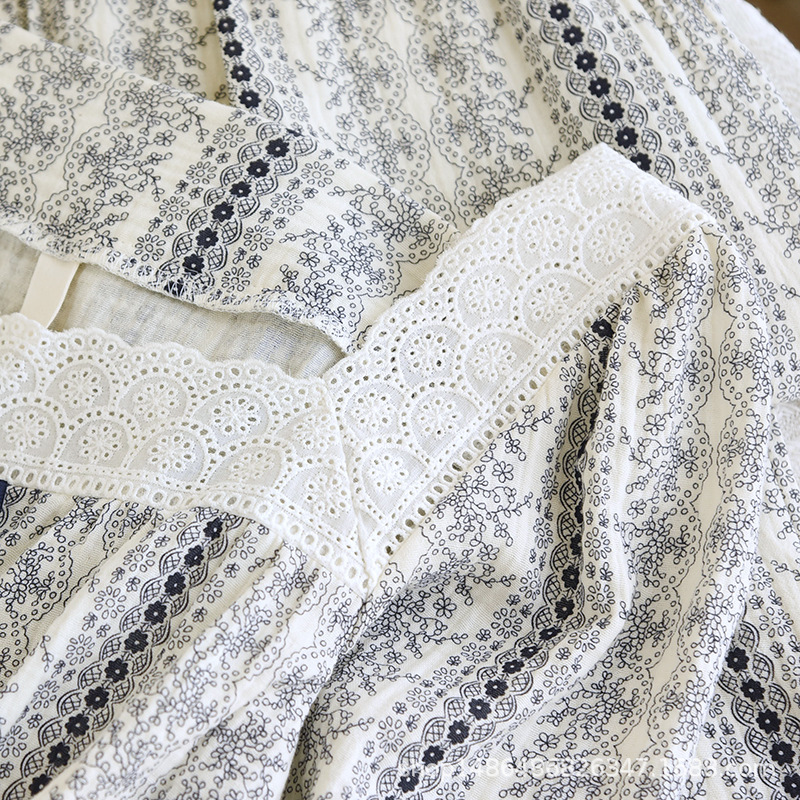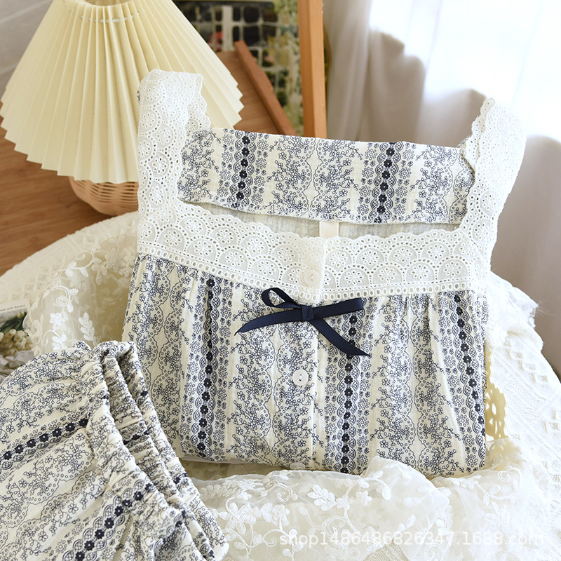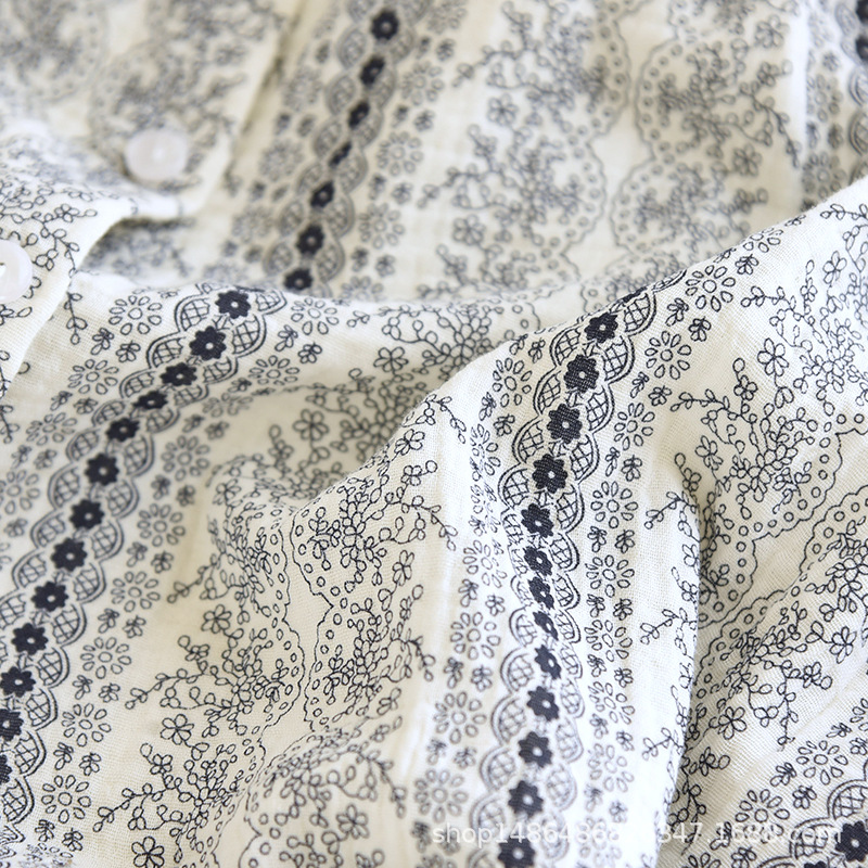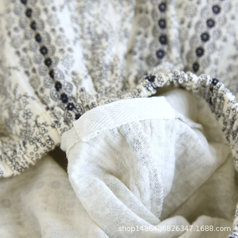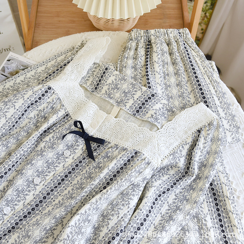 봄, 가을, 여름 신상 순면 거즈 긴팔 바지 여성 잠옷, 얇고 야외에서 착용 가능, 가정복, 헐렁하고 통기성 좋음스토어 가기