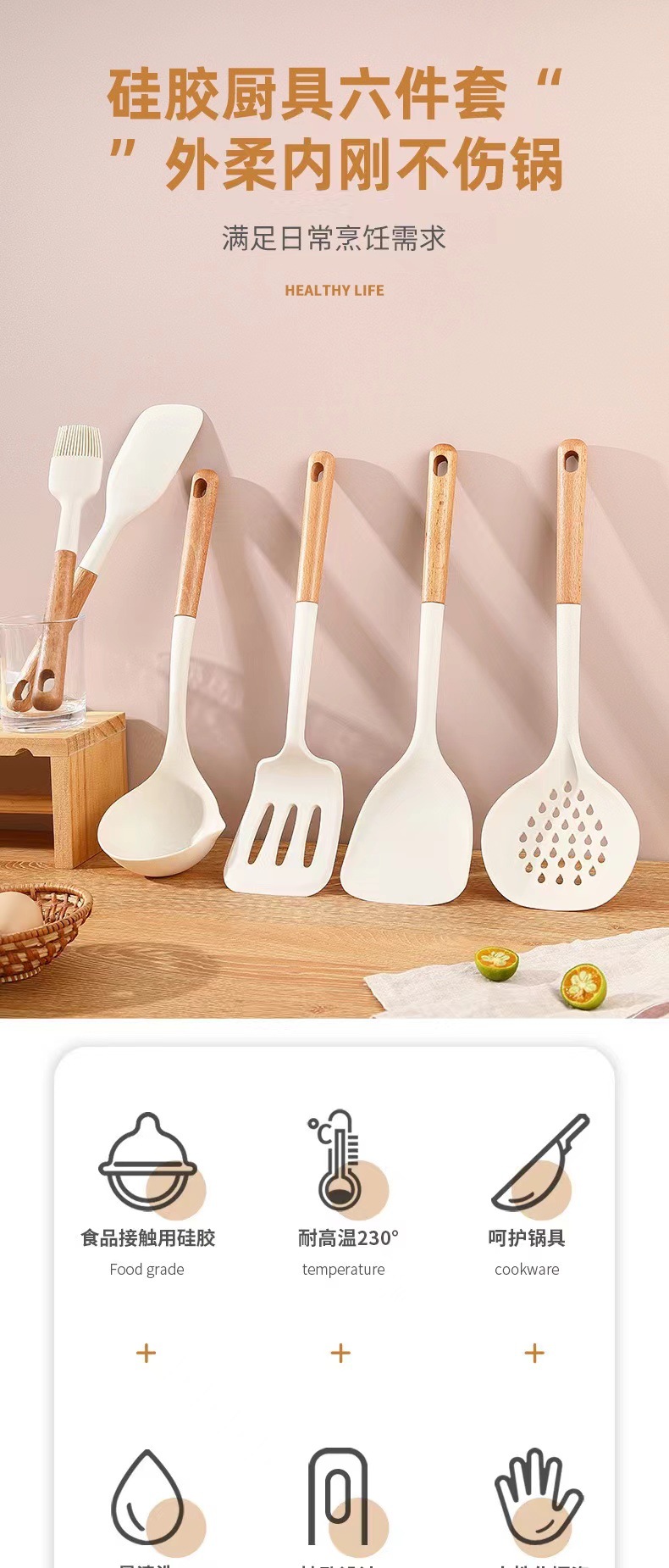 원목 실리콘 주걱 6종 세트(보관함 포함) 식품 등급 실리콘 고온 내성 논스틱 특수 실리콘 주걱 및 국자스토어 가기