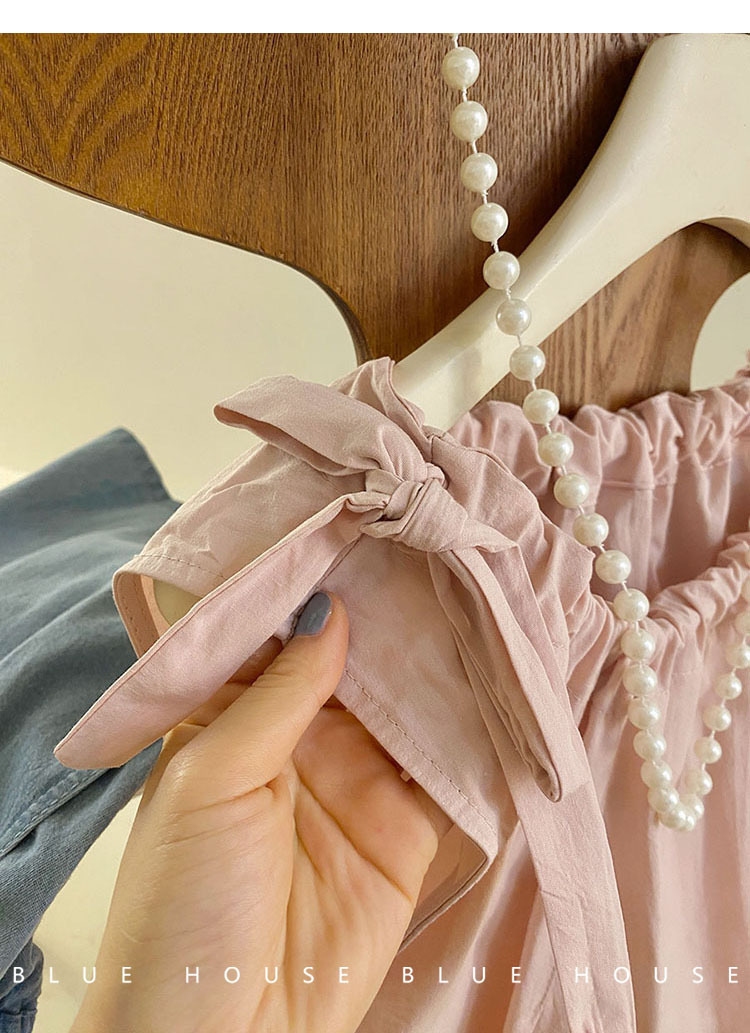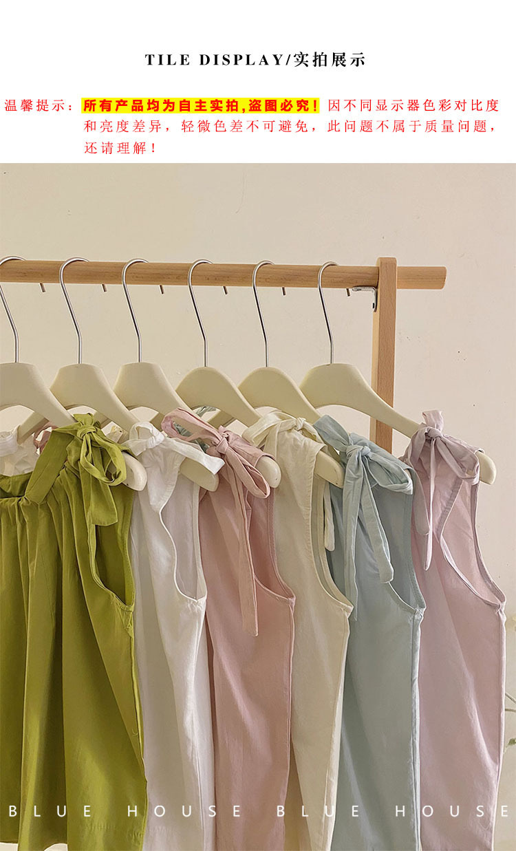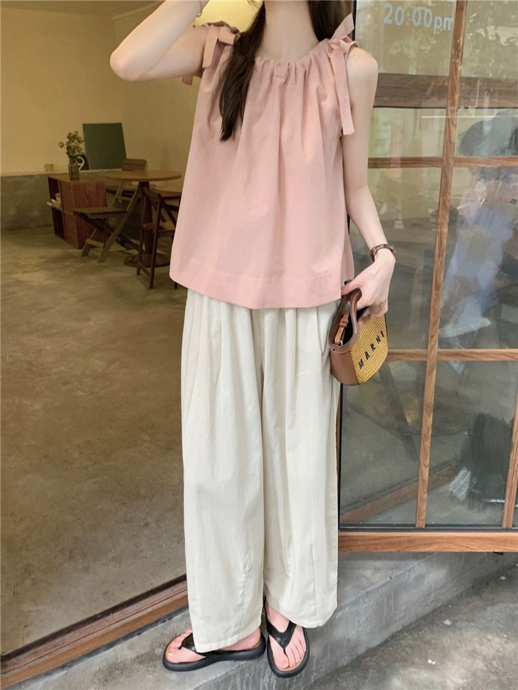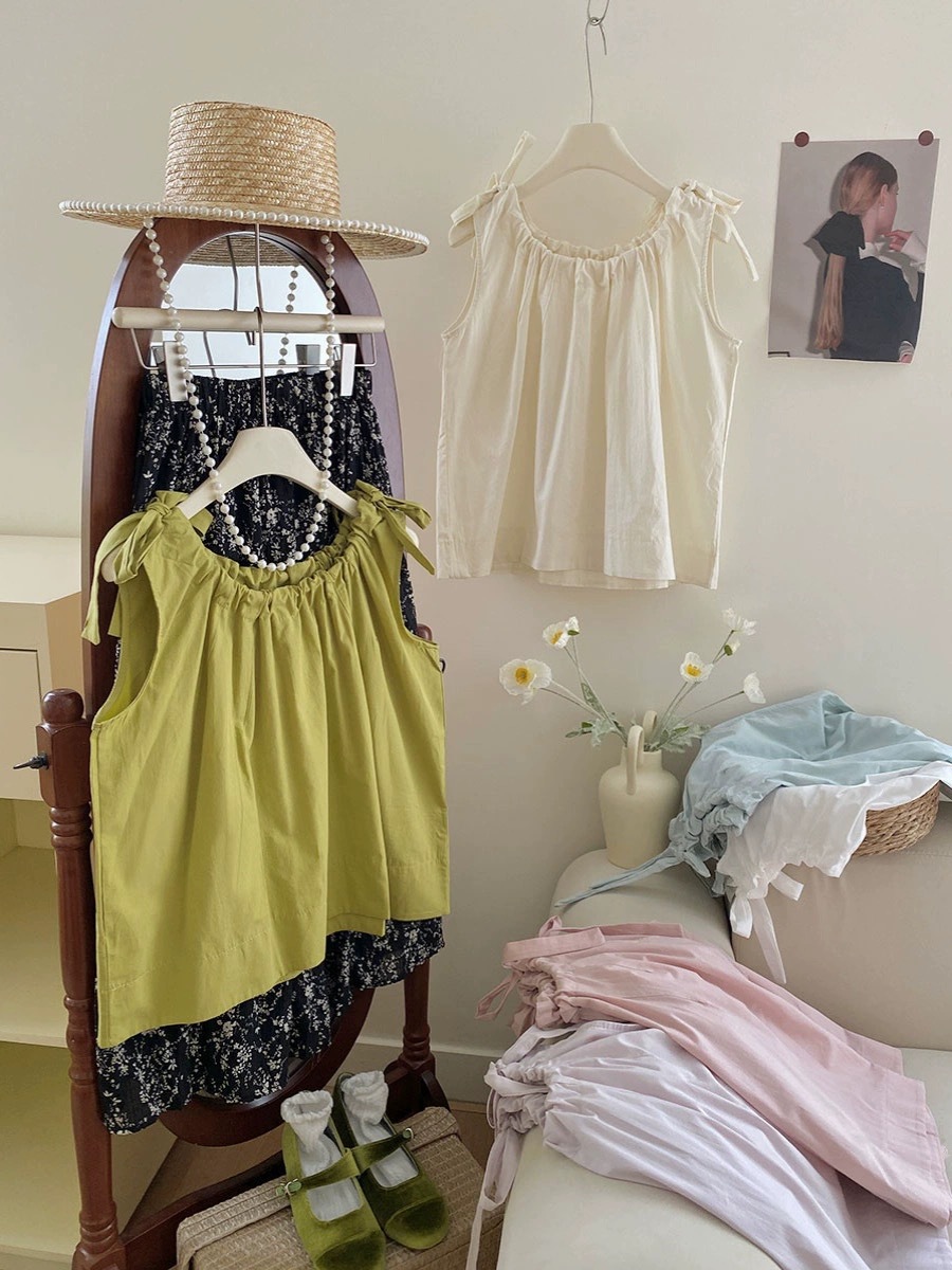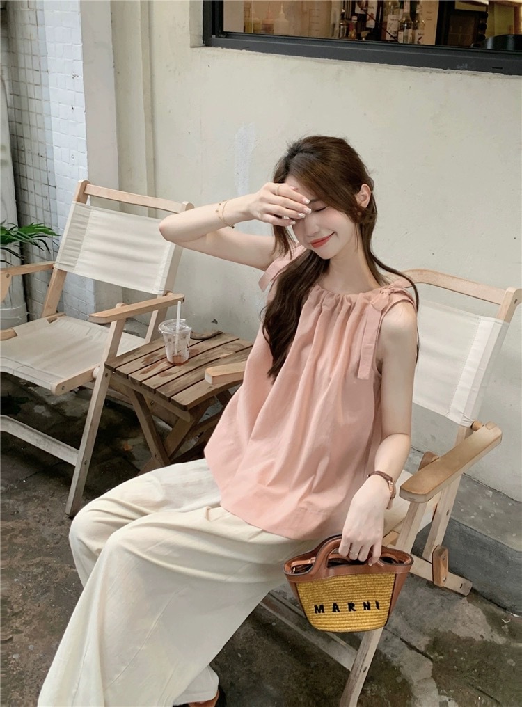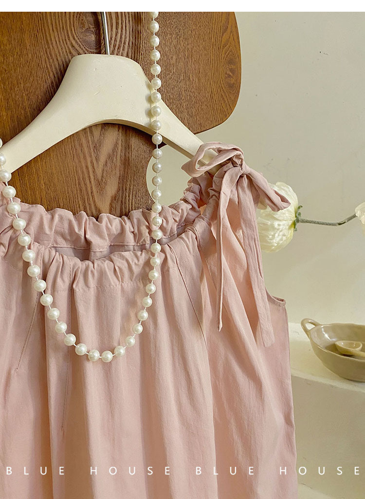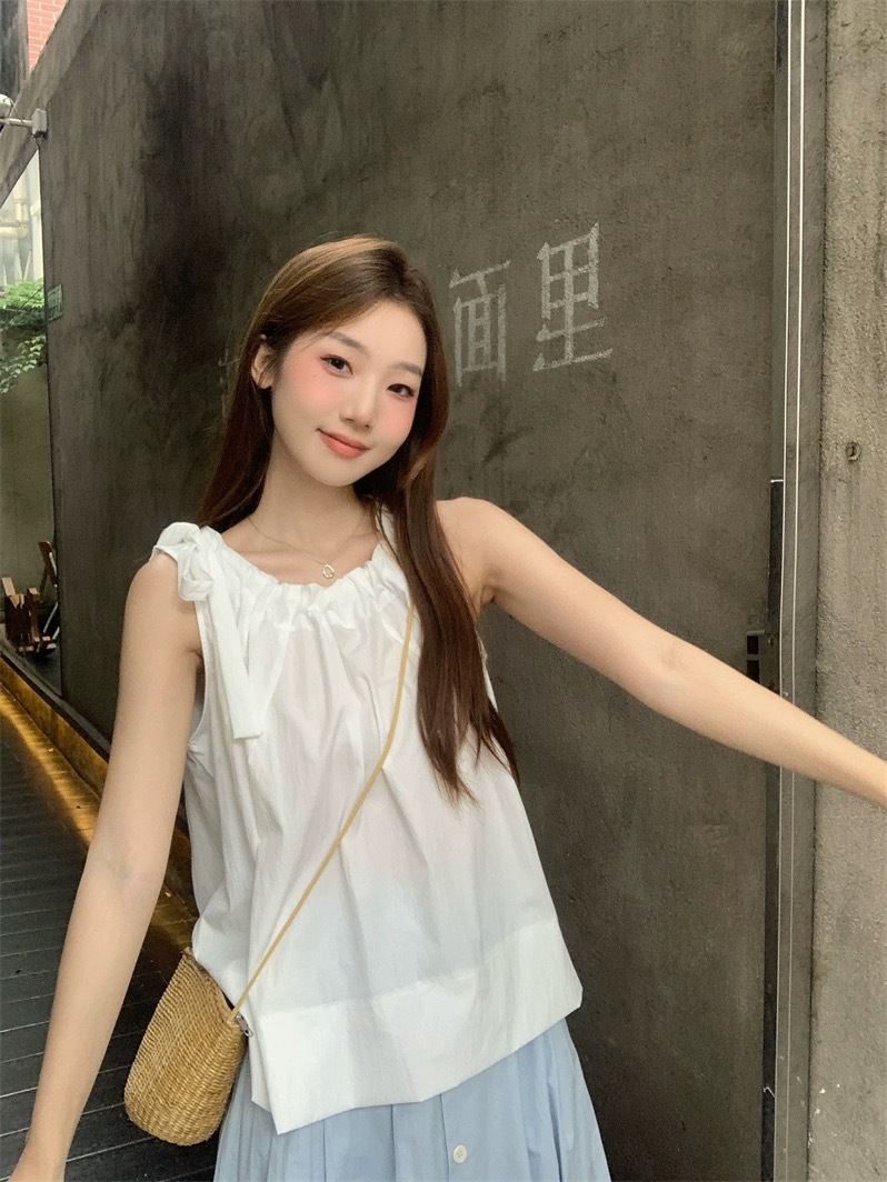 달콤한 스타일 리넨 느슨한 민소매 셔츠 여성용 여름 얇은 캐주얼 살포 인형 셔츠 끈 조끼 여성 셔츠