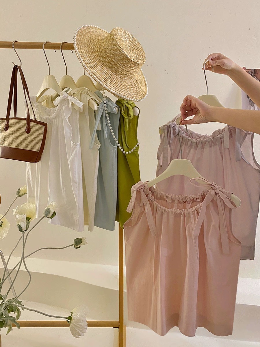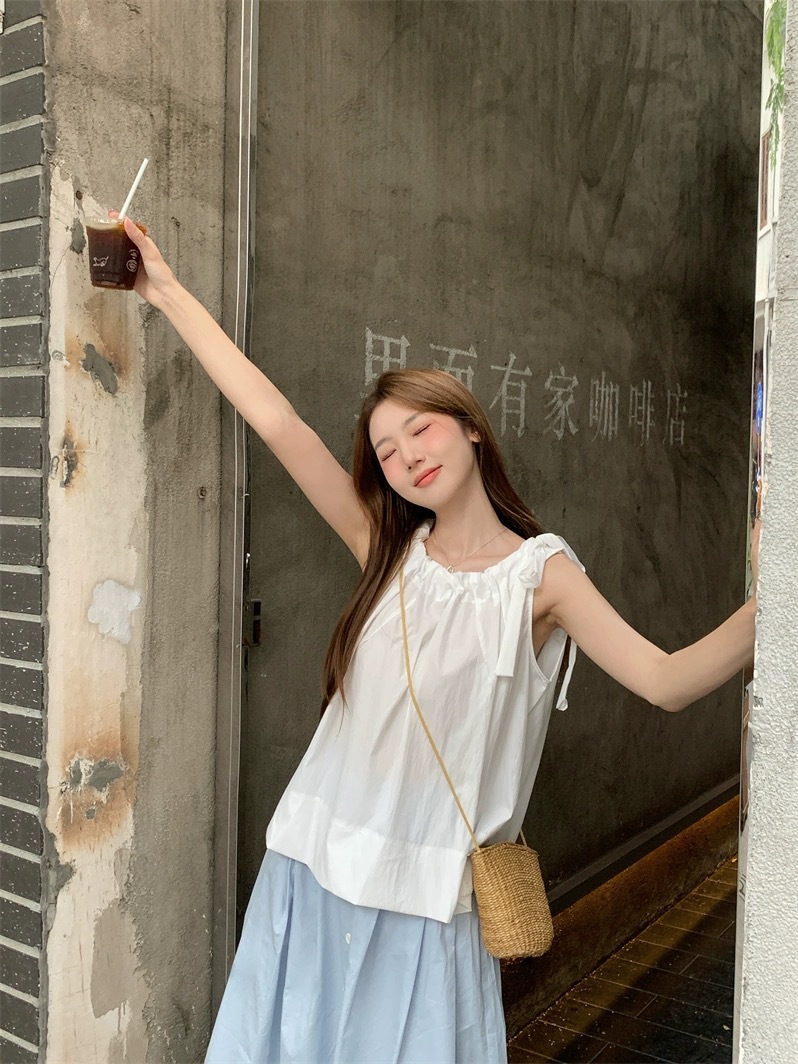 달콤한 스타일 리넨 느슨한 민소매 셔츠 여성용 여름 얇은 캐주얼 살포 인형 셔츠 끈 조끼 여성 셔츠스토어 가기