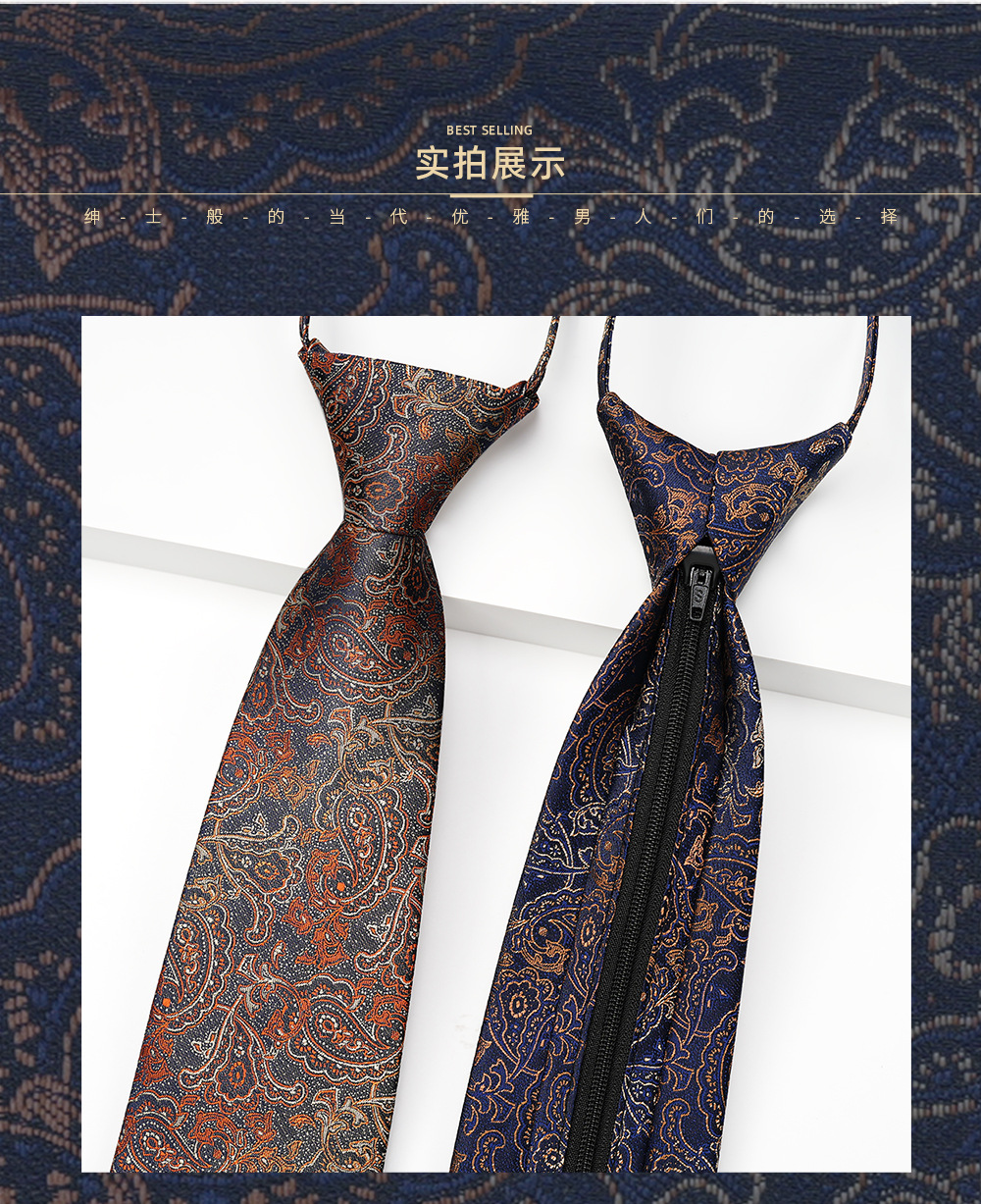 새로운 색상 넥타이 남성 레트로 캐슈 패턴 영국 8CM Forsuit 전문 비즈니스 지퍼 다크 브라운 Maillard스토어 가기