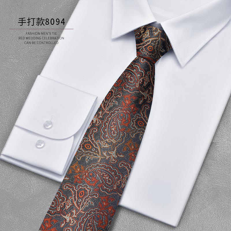 새로운 색상 넥타이 남성 레트로 캐슈 패턴 영국 8CM Forsuit 전문 비즈니스 지퍼 다크 브라운 Maillard