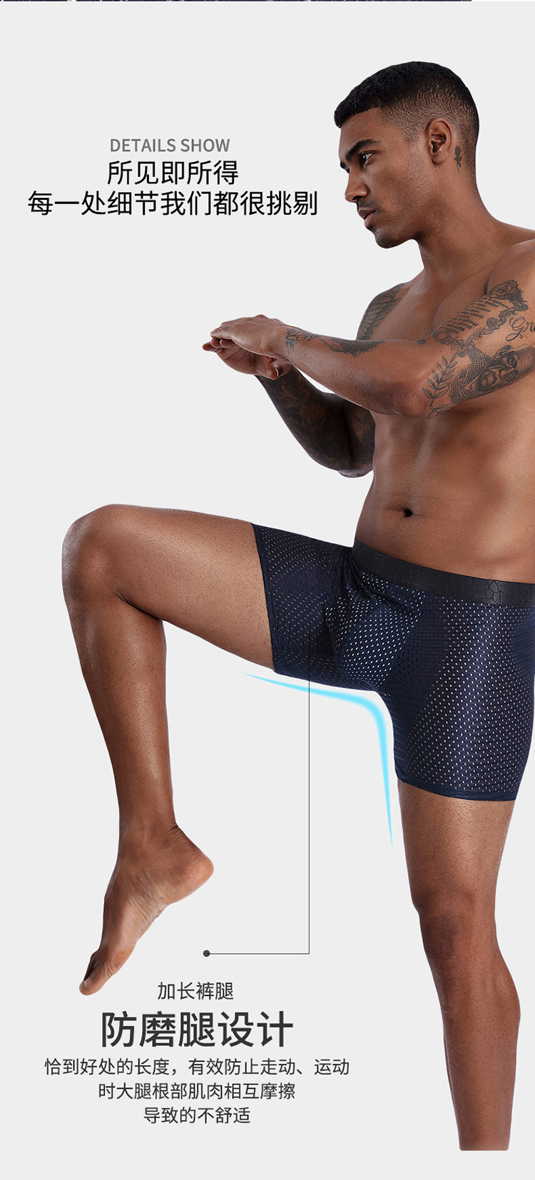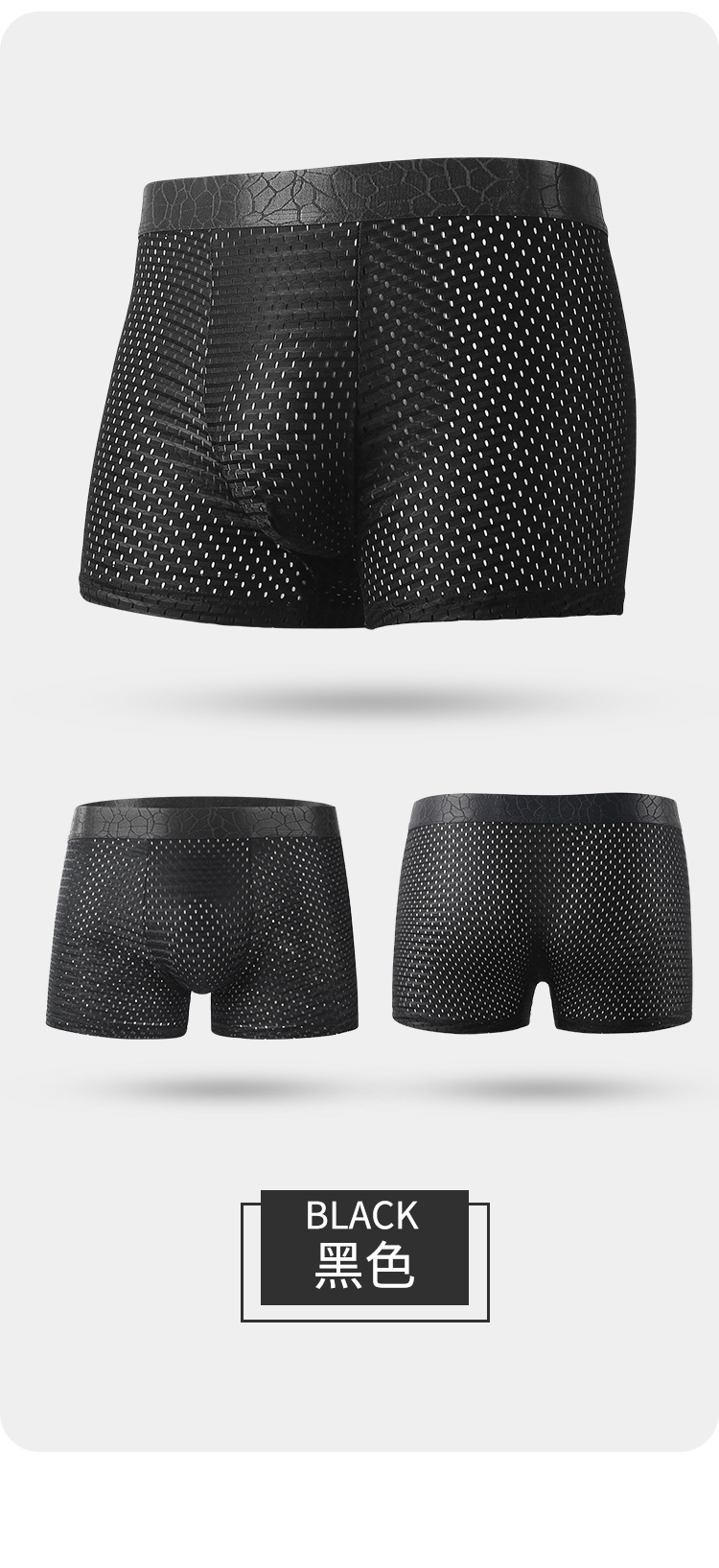 아이스 실크 메쉬 남성 속옷 긴 복서 바지 그래 핀 항균 가랑이 통기성 메쉬 복서 남성 속옷 공장스토어 가기